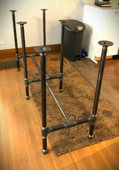 The table legs in the Pipe Design in raw iron gives a raw and industrial look.***Please note: all table base measurements (width and length) that are stated in this listing are measured from the outside edges of the round flanges on top of the base. Please reference the Q & A section in my Etsy shop for instructions on cleaning and more details regarding the black pipe products sold in my store.Assembly instructions for the "DIY" kits will be emailed to your Etsy account email once you have placed your order.