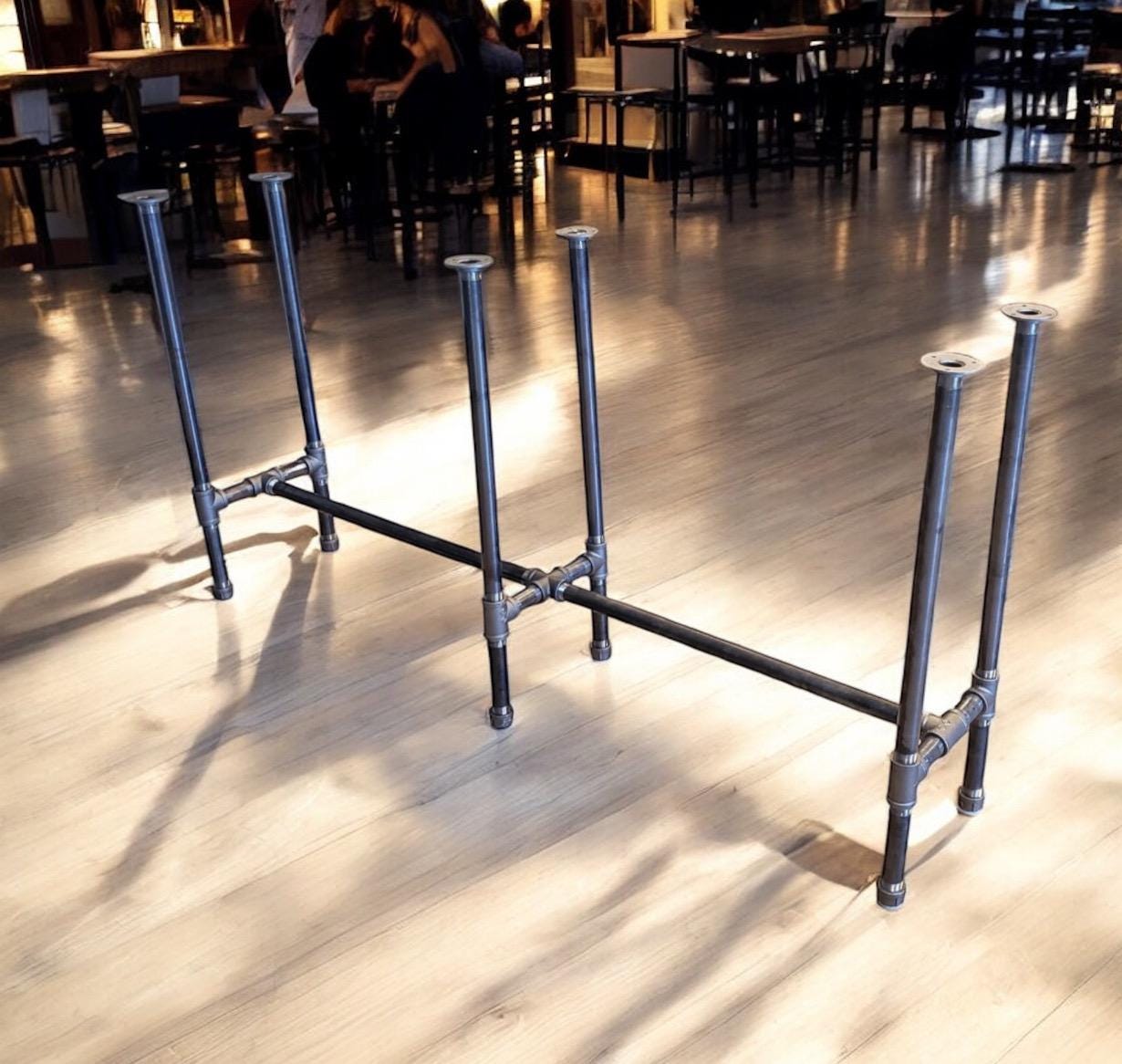 The table legs in the Pipe Design in raw iron gives a raw and industrial look.***Please note: all table base measurements (width and length) that are stated in this listing are measured from the outside edges of the round flanges on top of the base. Please reference the Q & A section in my Etsy shop for instructions on cleaning and more details regarding the black pipe products sold in my store.Assembly instructions for the "DIY" kits will be emailed to your Etsy account email once you have placed your order.