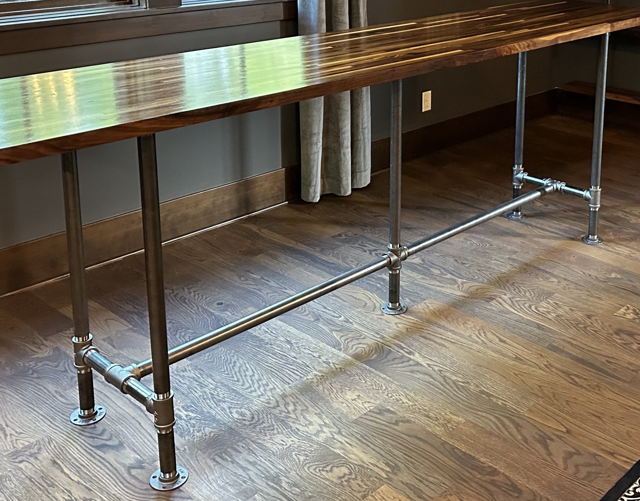 Original Authentic Industrial Pipe Table Base Kit - 1” pipe x 92” long x 24” deep x 40” tall <> Commercial Grade Bar Height