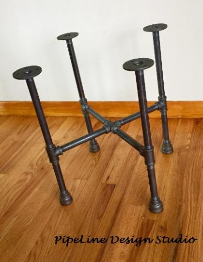 The table legs in the Pipe Design in raw iron gives a raw and industrial look.***Please note: all table base measurements (width and length) that are stated in this listing are measured from the outside edges of the round flanges on top of the base. Please reference the Q & A section in my Etsy shop for instructions on cleaning and more details regarding the black pipe products sold in my store.Assembly instructions for the "DIY" kits will be emailed to your Etsy account email once you have placed your order.