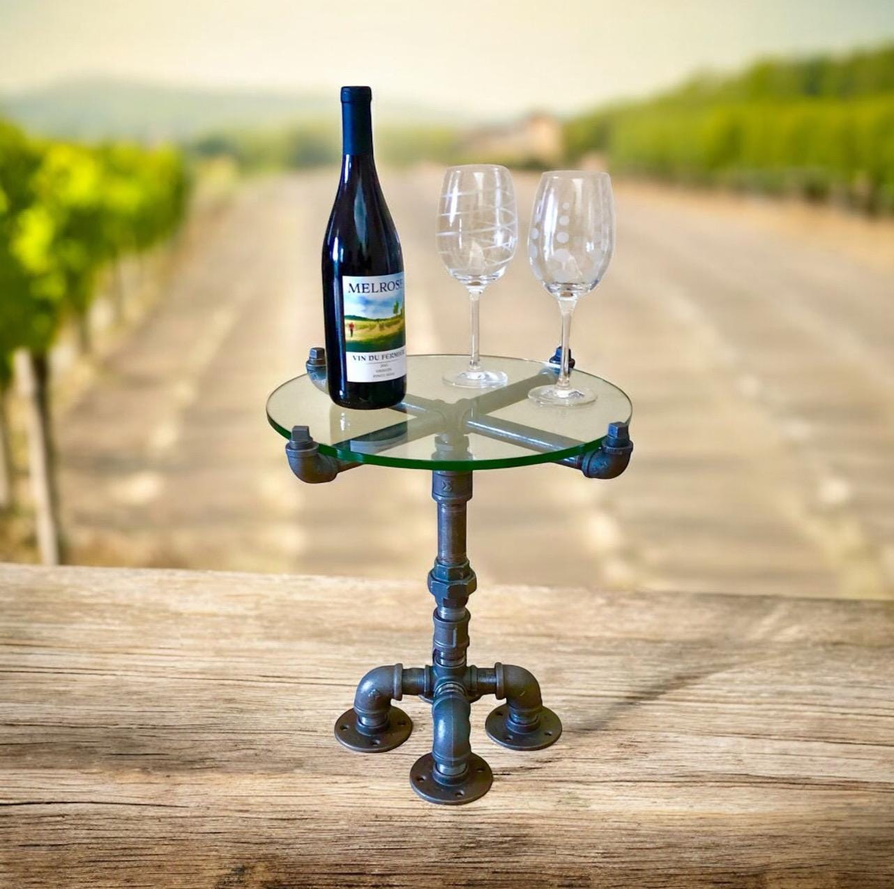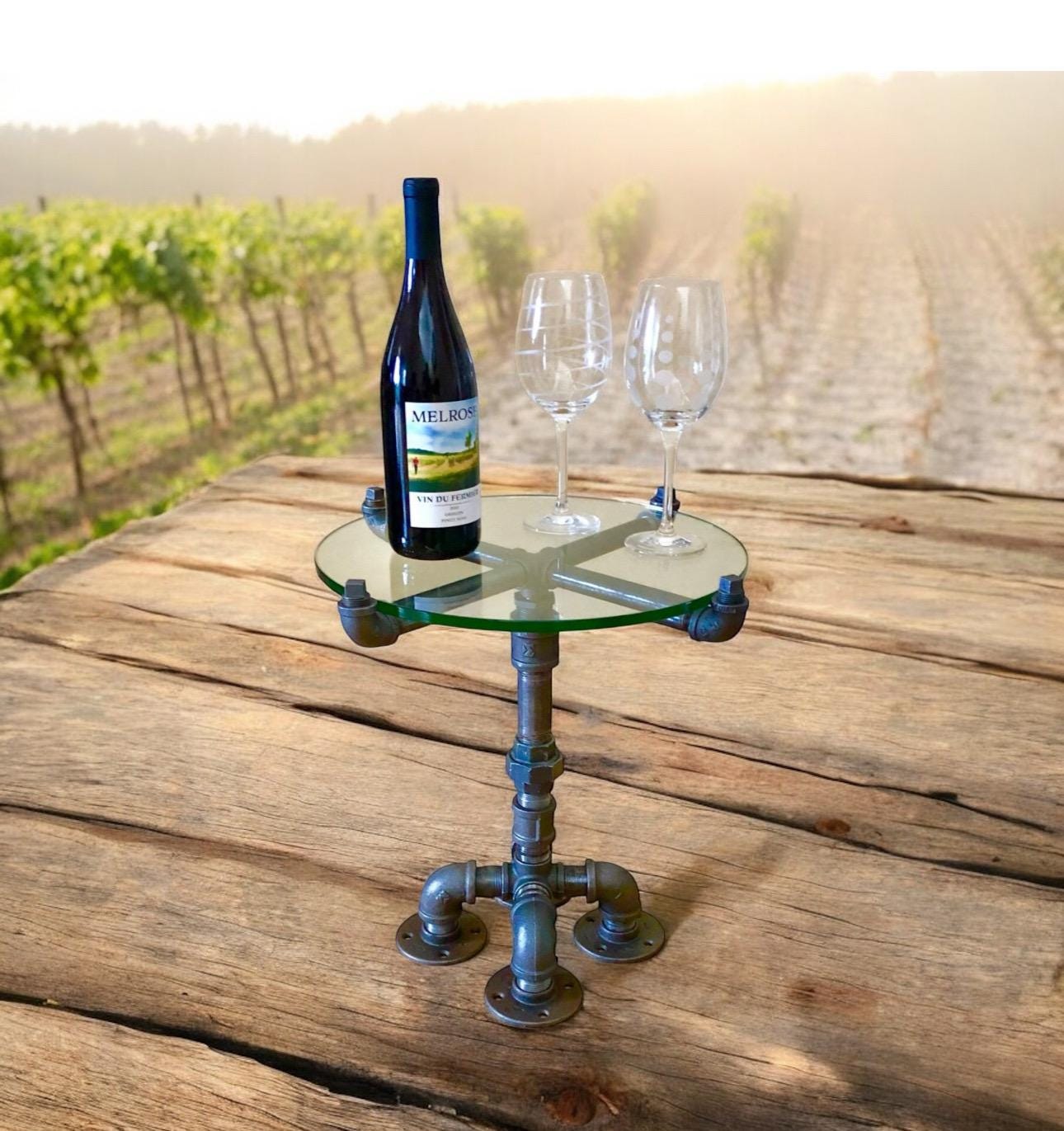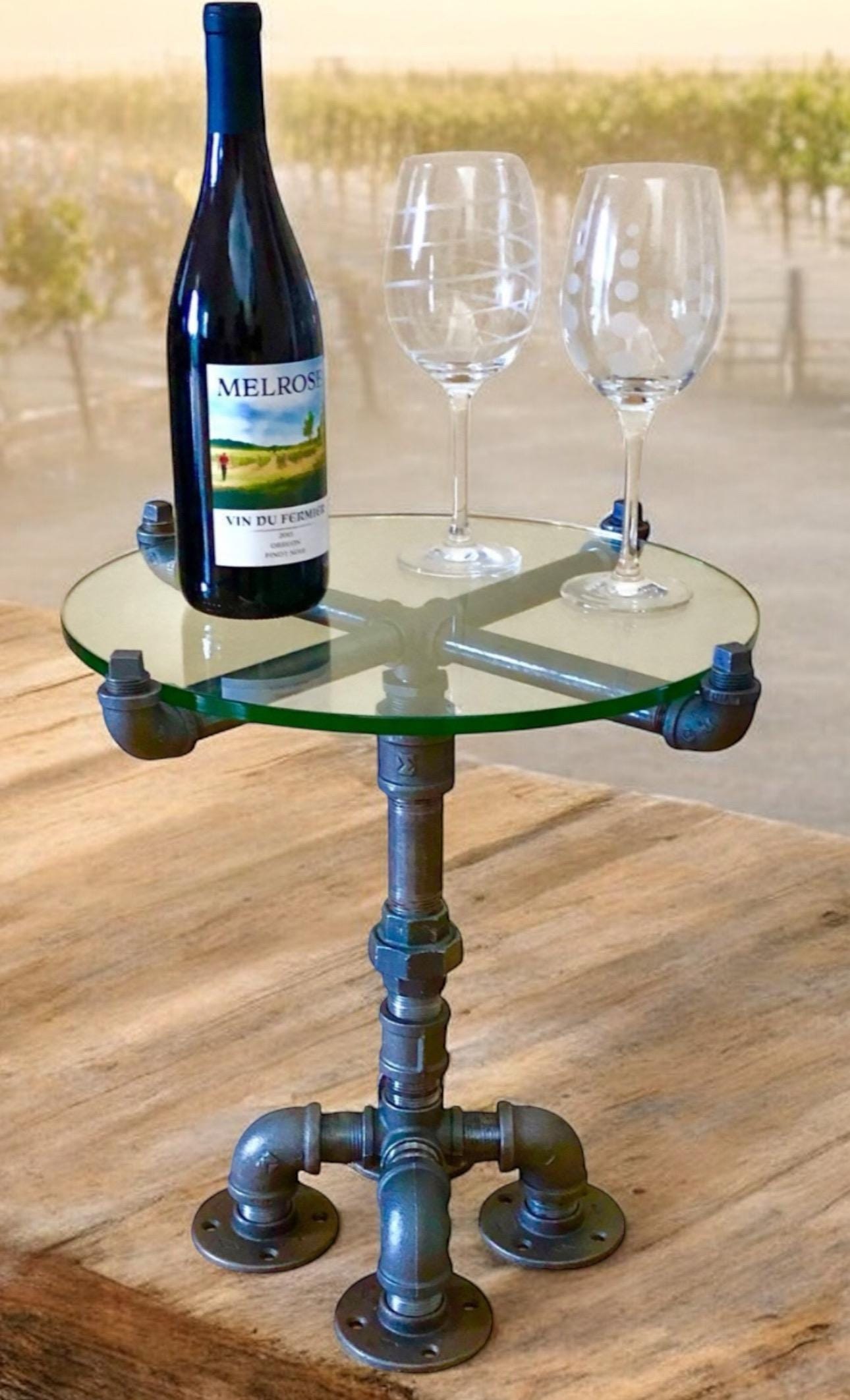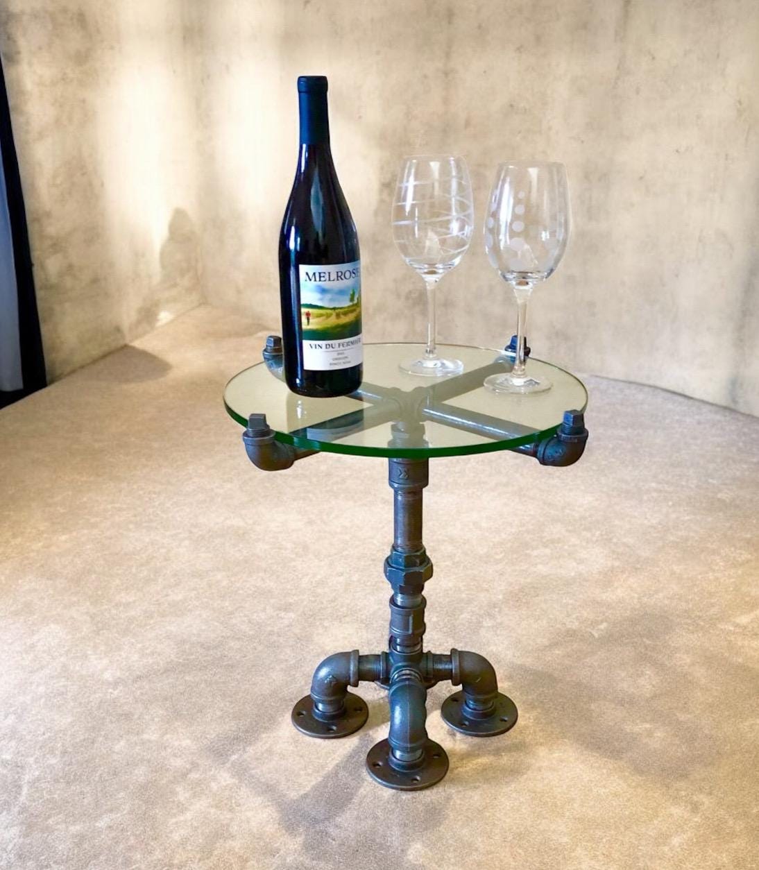 This unique small table kit comes with all of the pipes, fittings and glass top.