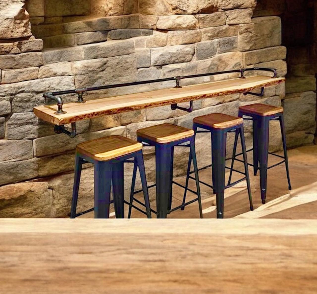 Order now to receive your authentic pipe bar rail kit with fast shipping and responsive customer support. Custom sizing and care instructions available—enhance your bar area with quality you can trust today.Industrial Pipe Drink Rail With 3 Shelf Support Brackets "DIY" pipe hardware parts kit
