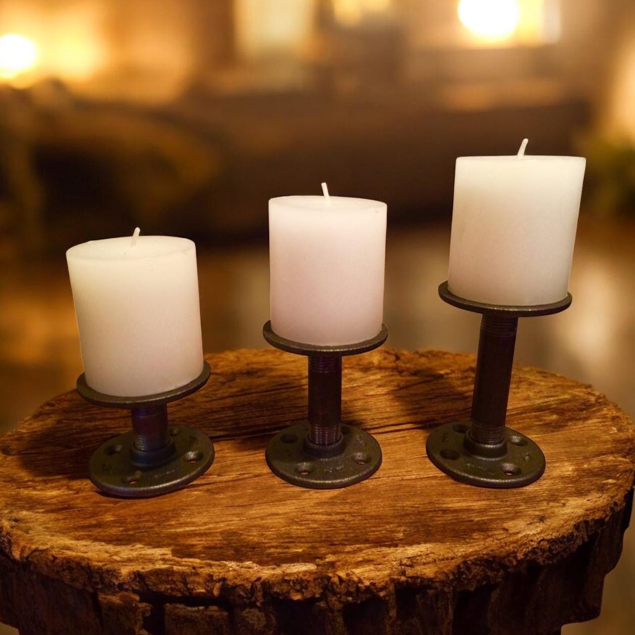 Ready to build your own rustic centerpiece? Add this Industrial Iron Pipe Candle Holders Kit to your cart today and start crafting unique warmth for your home. We’re committed to providing clear instructions and responsive customer support to make your project smooth and enjoyable. Please note: candles are not included, and slight assembly is required. Ships promptly with care to ensure all parts arrive in perfect condition.Pipe Candle Holders - Industrial Iron Pipe, "DIY" Parts Kits for 3 Candle Holders