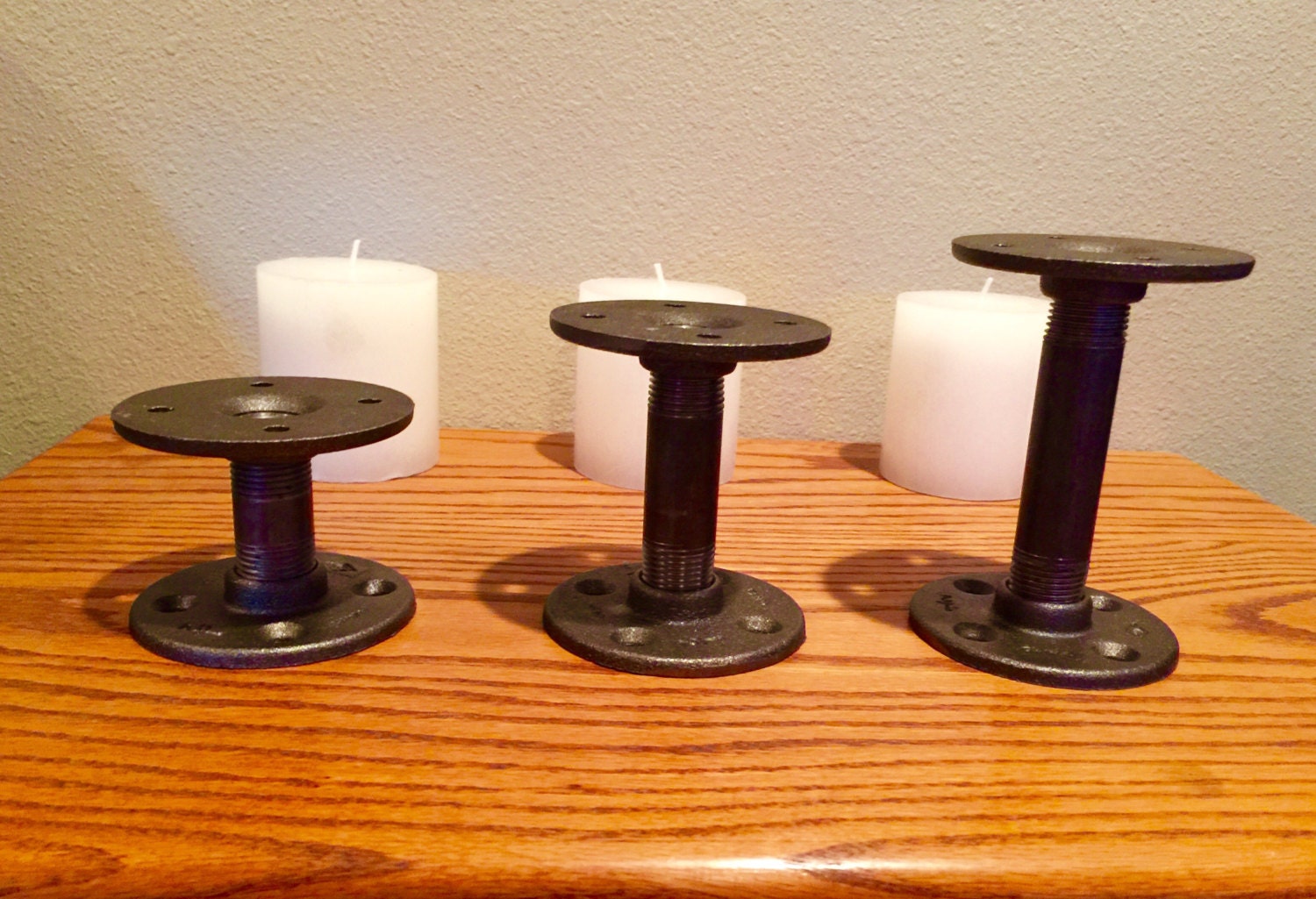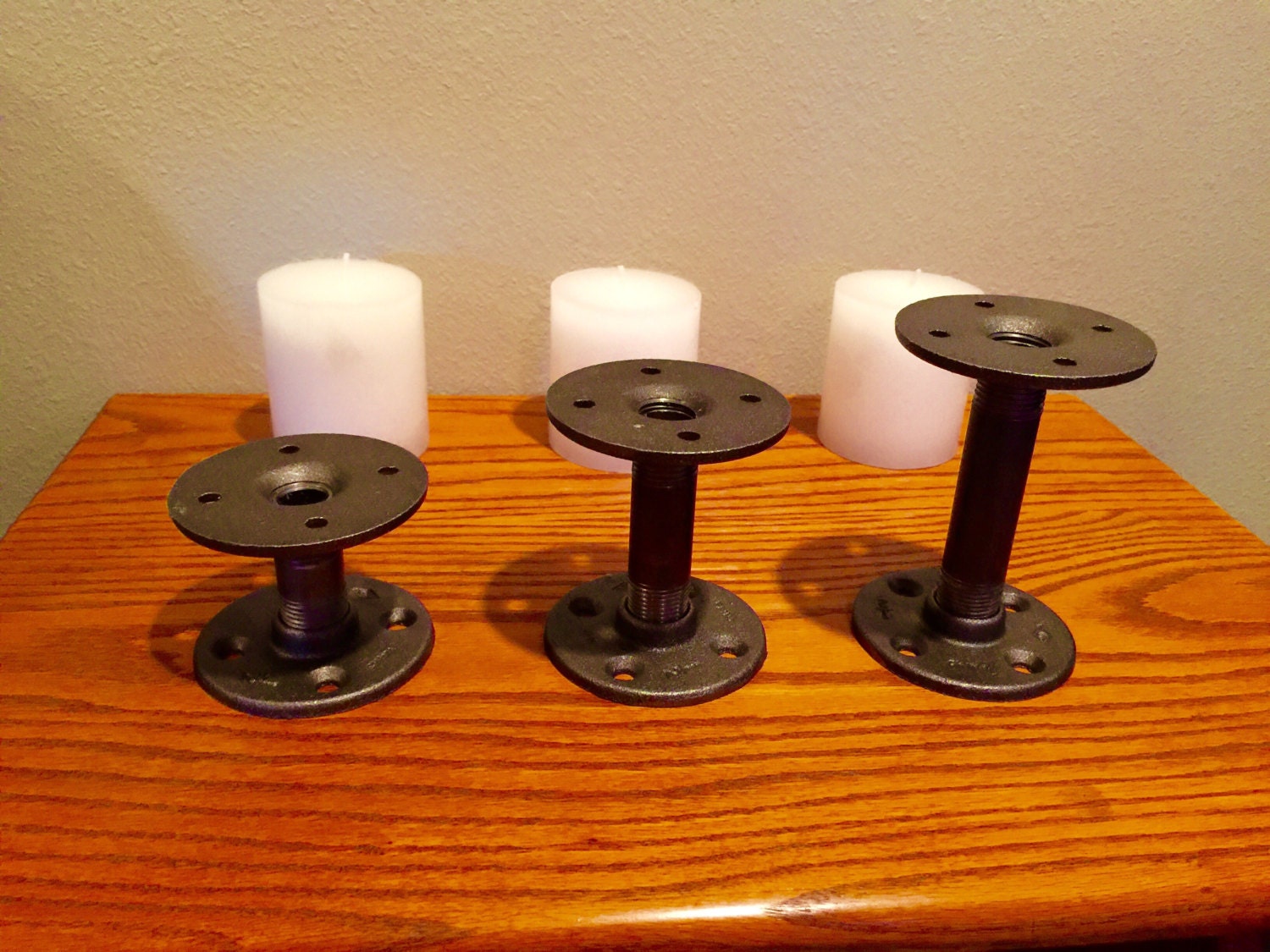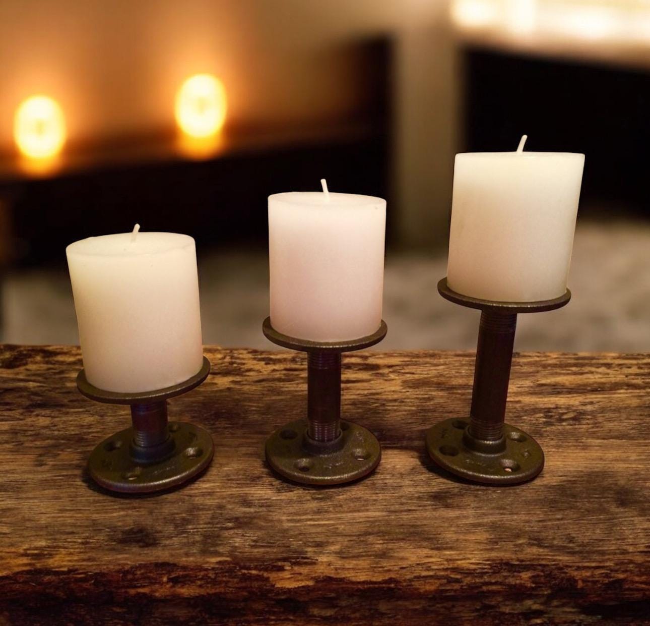 - Kit contains DIY iron pipe parts for 3 candle holders
