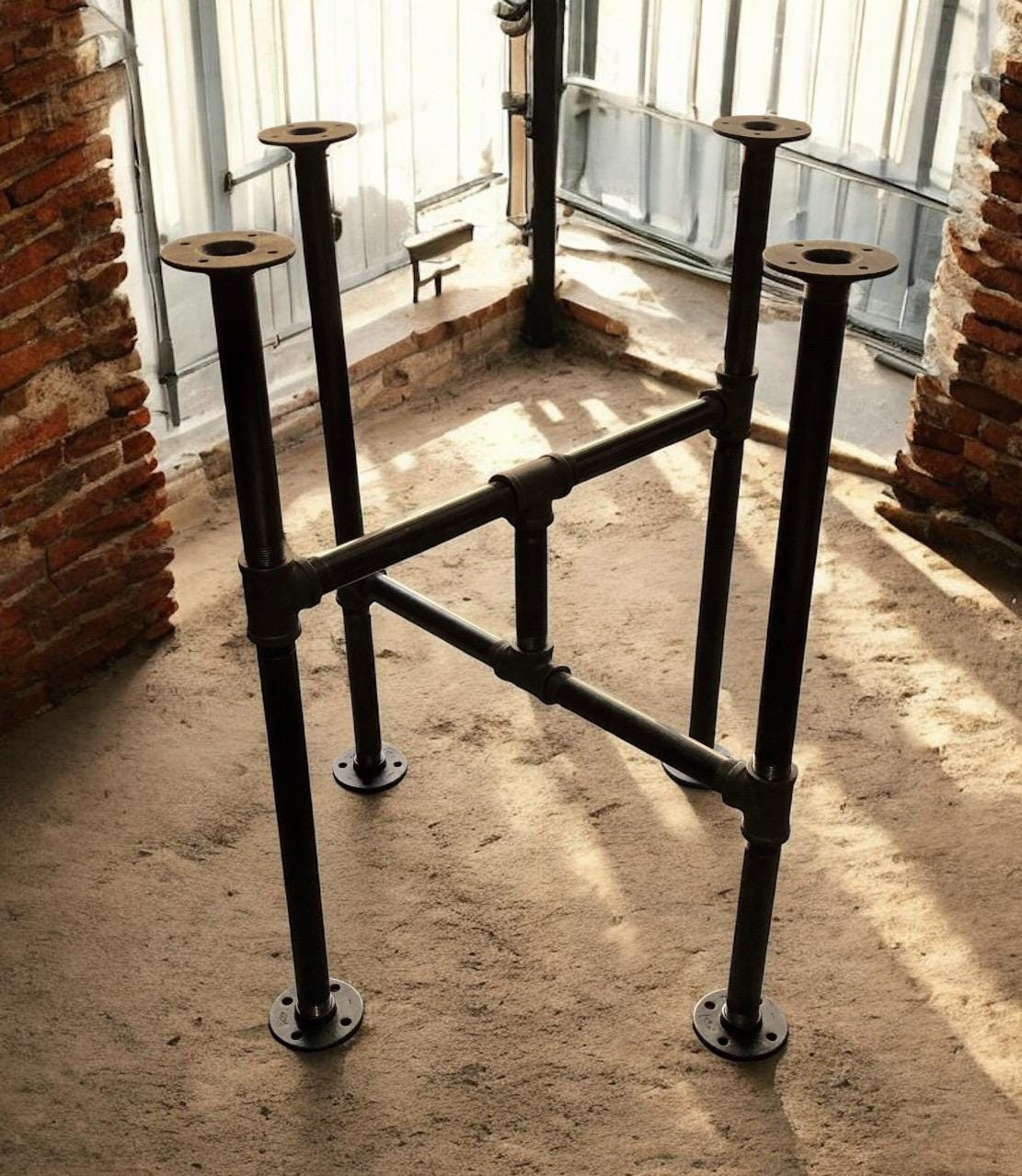 Ready to build your unique industrial table? Order now to start your project with confidence, backed by our friendly customer support and straightforward shipping policy. Custom sizing inquiries are welcome to fit your perfect dimensions.Industrial Pipe Cross Table Base, "DIY" Parts Kit, Unique Table Base Design