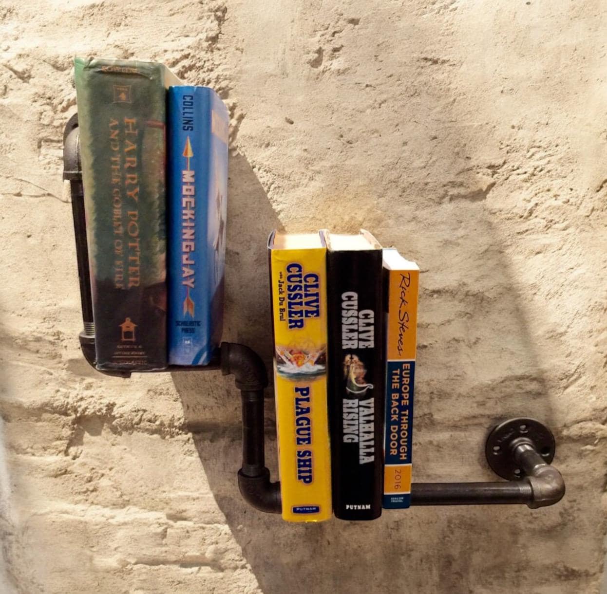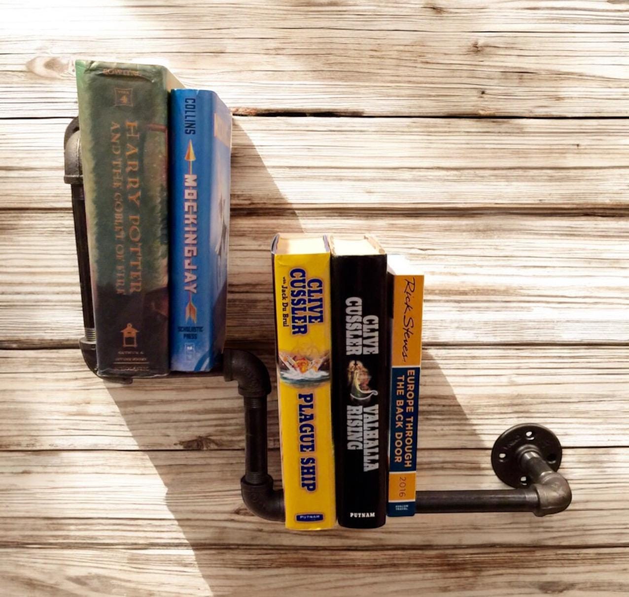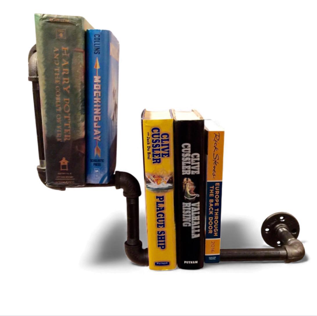 Industrial Pipe Book Shelf Organizer - Rustic 8-Book Storage Rack for Home & Office Decor