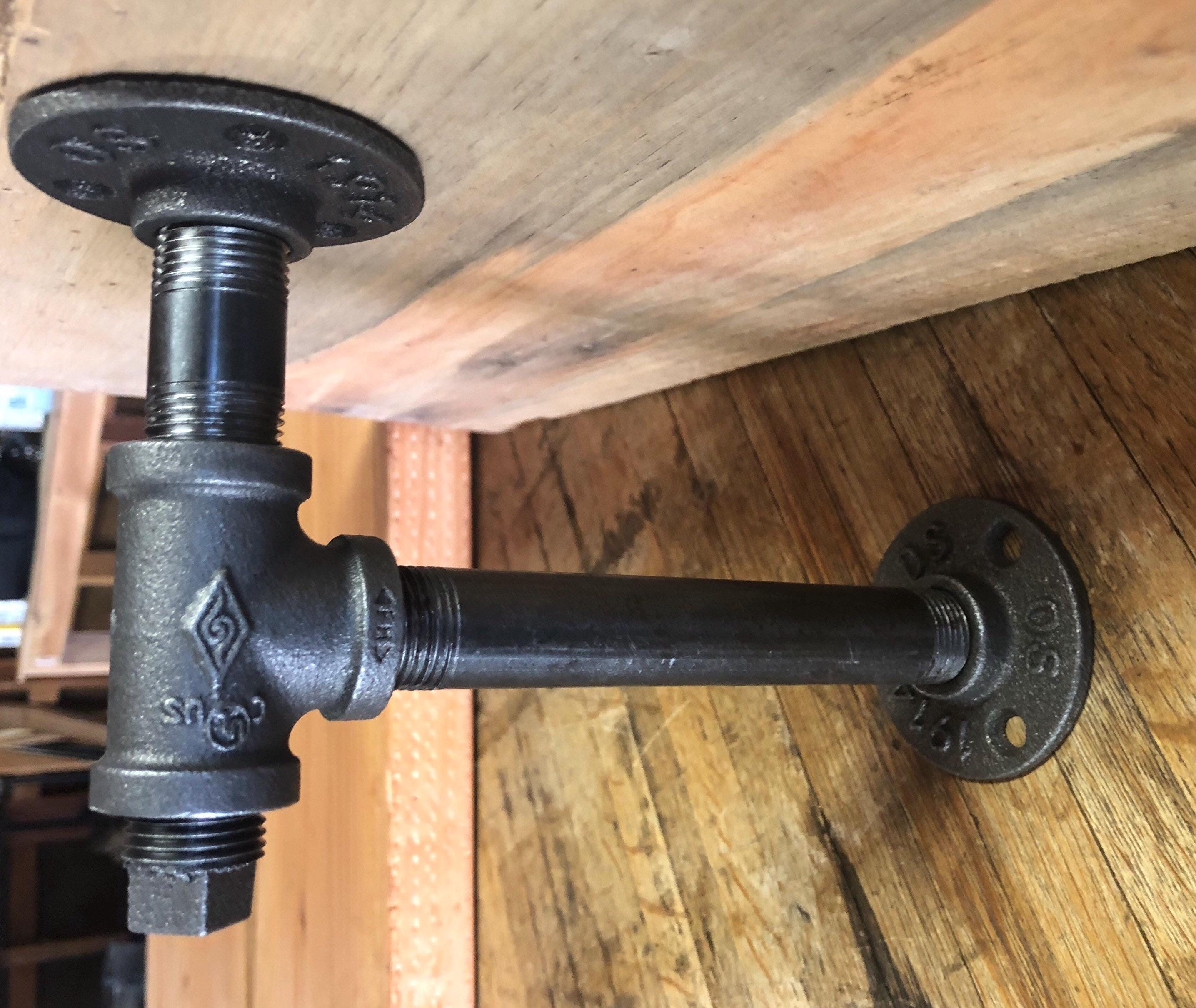 Each shelf bracket is made with 1/2" Construction Grade Industrial Black Pipe.