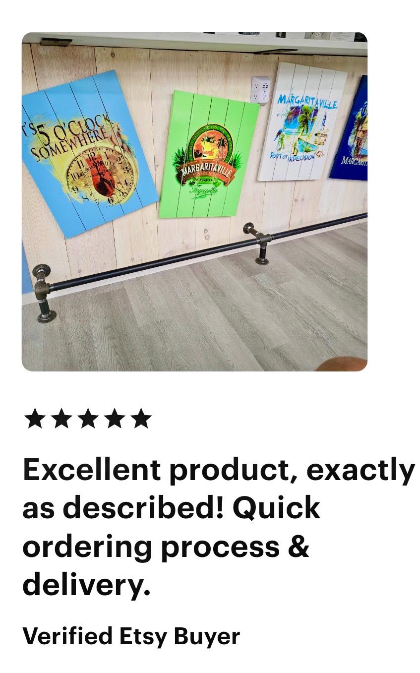 When ordering our straight shelf brackets, please be aware that the listed length refers to the pipe itself. Once the pipe, mounting flange, and end cap are fully assembled, the usable space for your shelf will be 3/4" to 1" shorter.