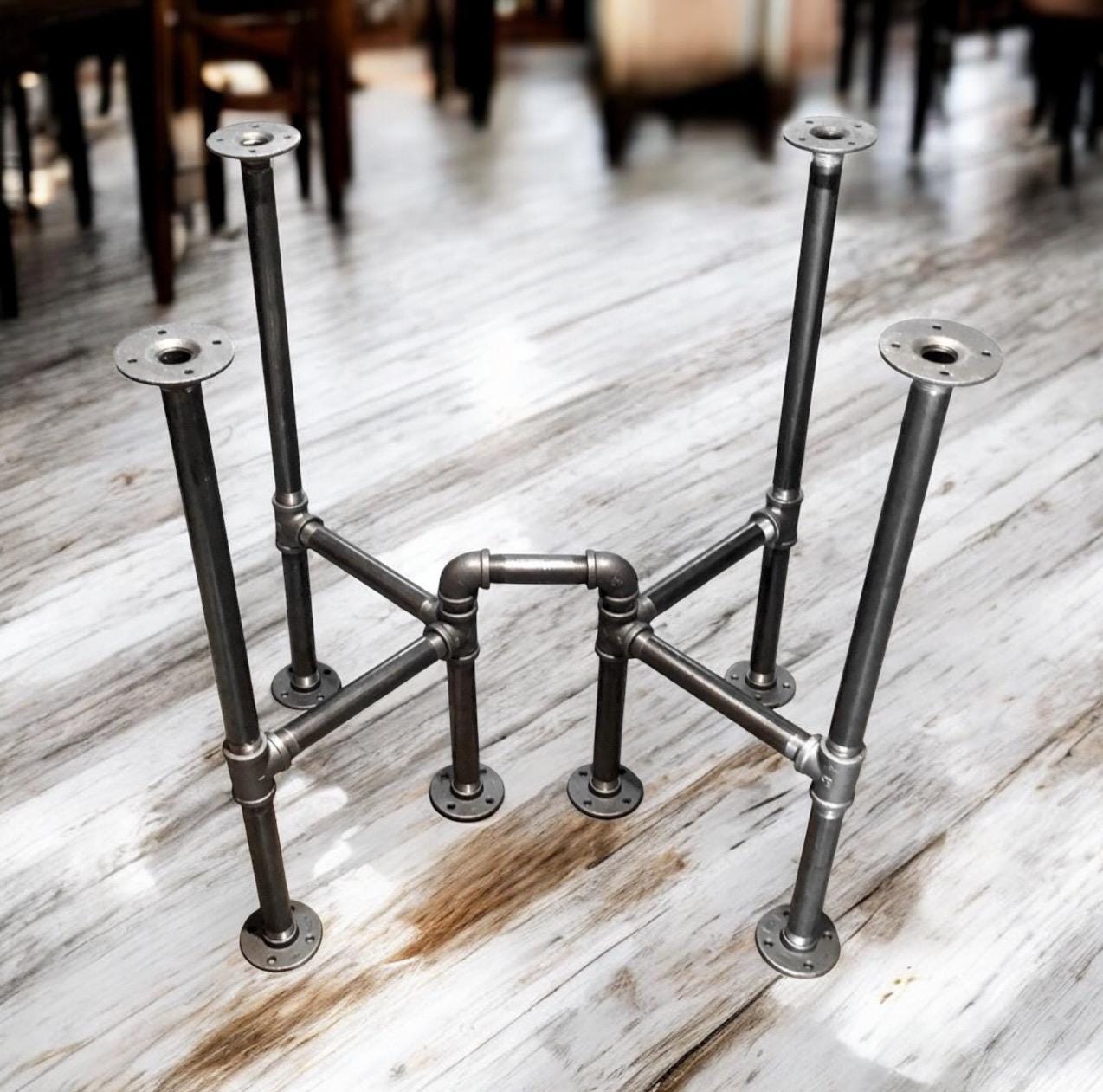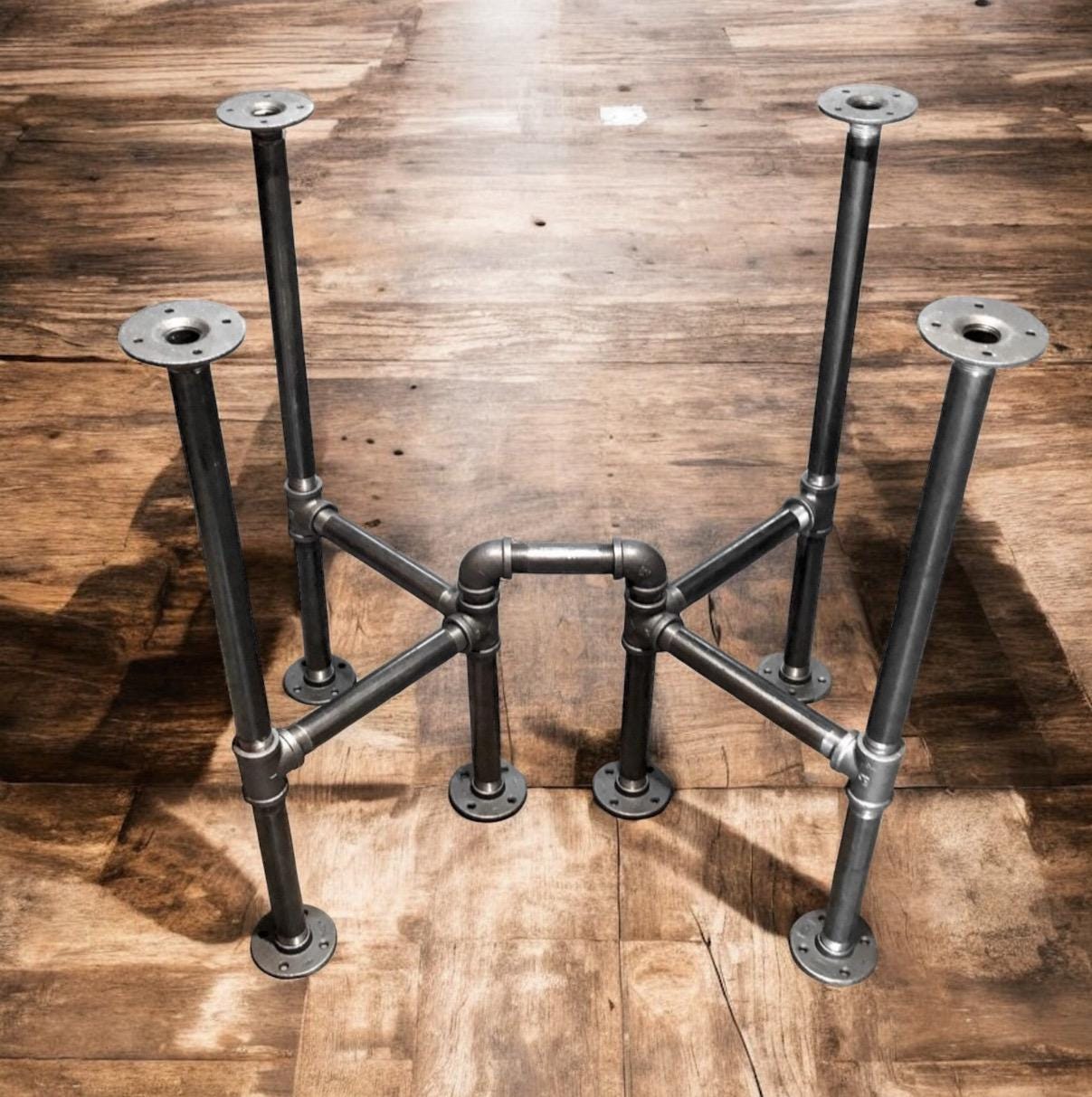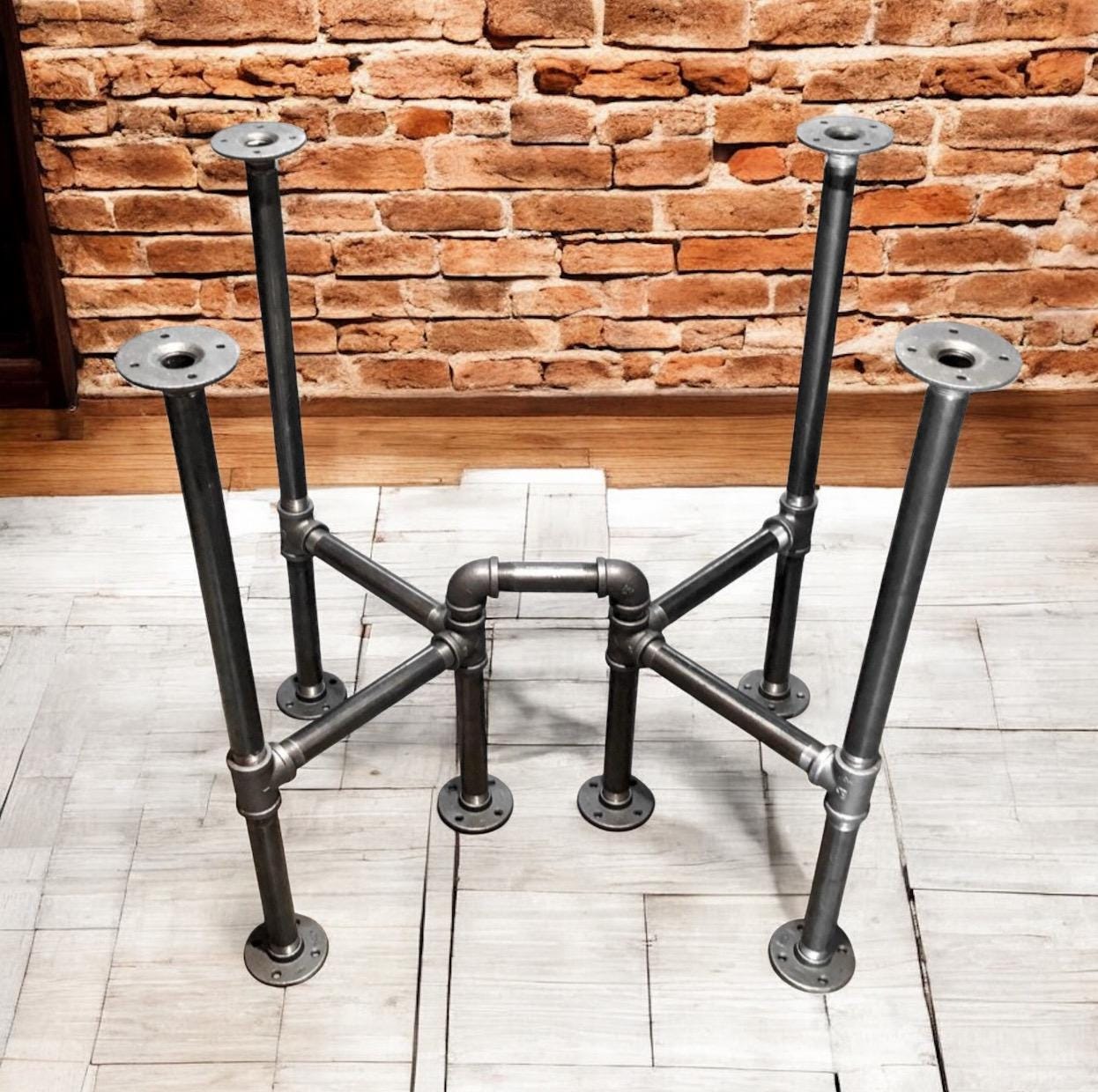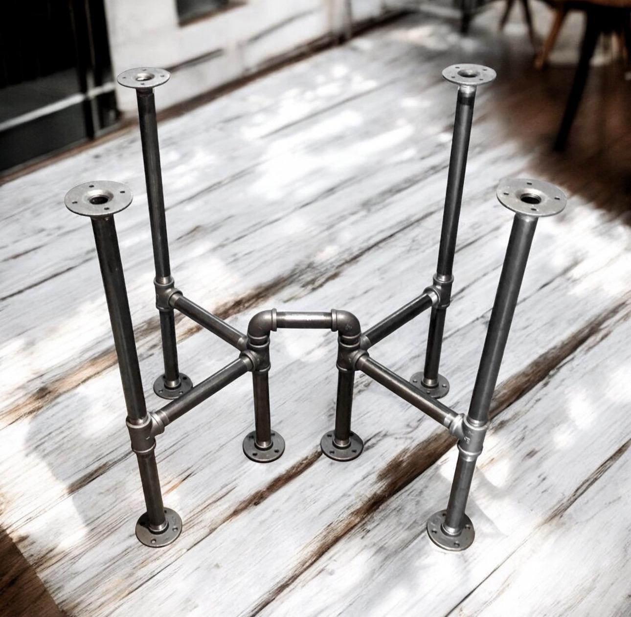 The table legs in the Pipe Design in raw iron gives a raw and industrial look.***Please note: all table base measurements (width and length) that are stated in this listing are measured from the outside edges of the round flanges on top of the base. Please reference the Q & A section in my Etsy shop for instructions on cleaning and more details regarding the black pipe products sold in my store.Assembly instructions for the "DIY" kits will be emailed to your Etsy account email once you have placed your order.