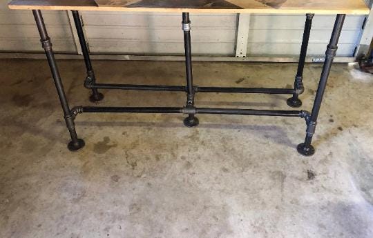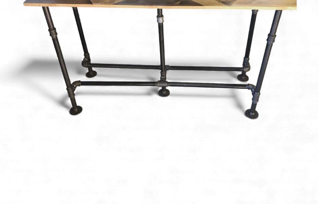 The table legs in the Pipe Design in raw iron gives a raw and industrial look.***Please note: all table base measurements (width and length) that are stated in this listing are measured from the outside edges of the round flanges on top of the base. Please reference the Q & A section in my Etsy shop for instructions on cleaning and more details regarding the black pipe products sold in my store.Assembly instructions for the "DIY" kits will be emailed to your Etsy account email once you have placed your order.