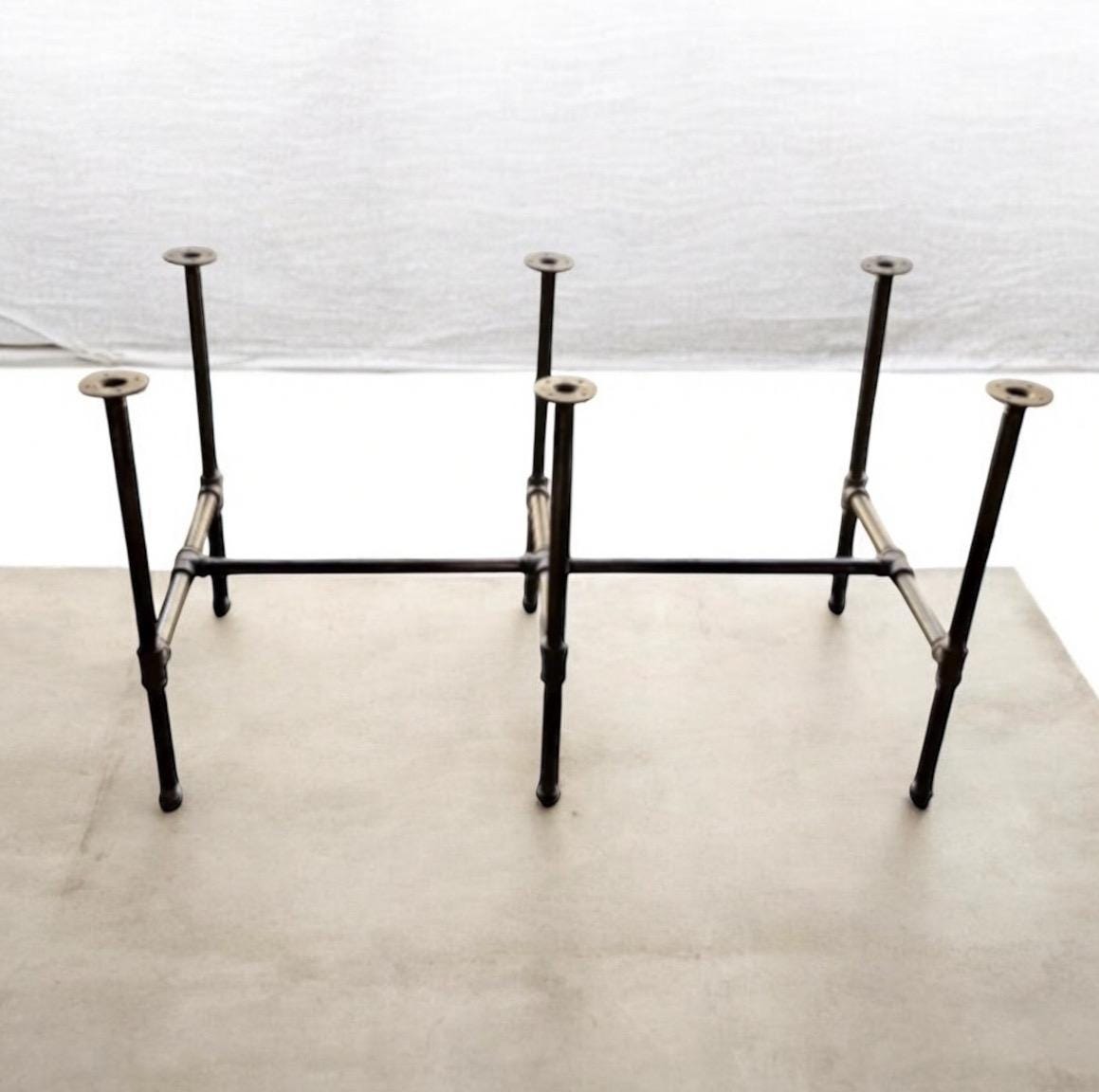 The table legs in the Pipe Design in raw iron gives a raw and industrial look.***Please note: all table base measurements (width and length) that are stated in this listing are measured from the outside edges of the round flanges on top of the base. Please reference the Q & A section in my Etsy shop for instructions on cleaning and more details regarding the black pipe products sold in my store.