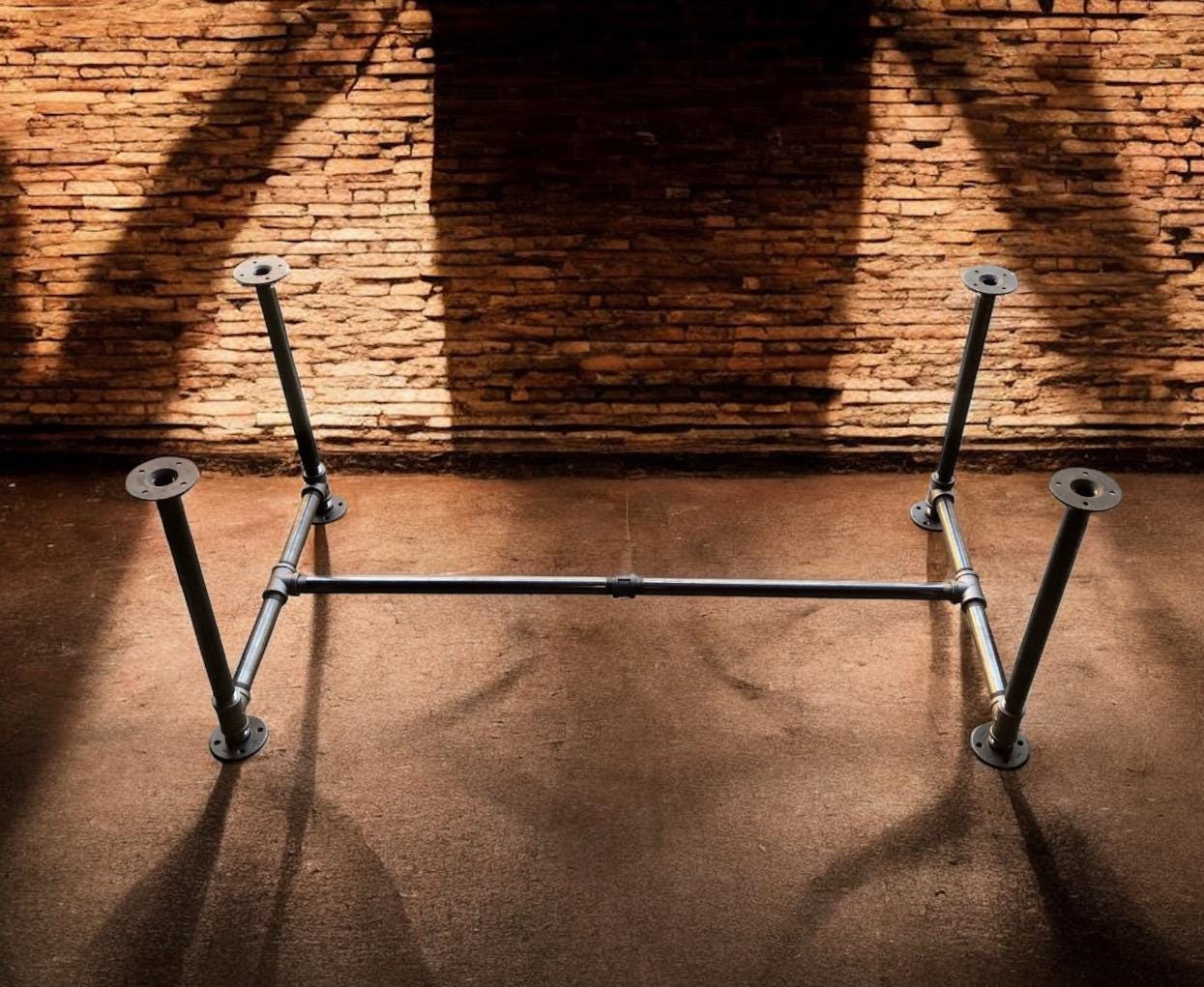 The table legs in the Pipe Design in raw iron gives a raw and industrial look.***Please note: all table base measurements (width and length) that are stated in this listing are measured from the outside edges of the round flanges on top of the base. Please reference the Q & A section in my Etsy shop for instructions on cleaning and more details regarding the black pipe products sold in my store.Assembly instructions for the "DIY" kits will be emailed to your Etsy account email once you have placed your order.