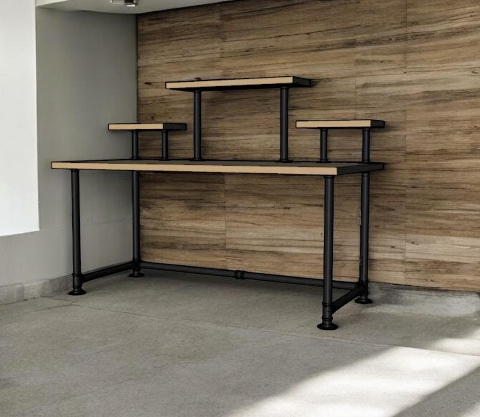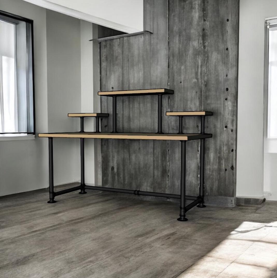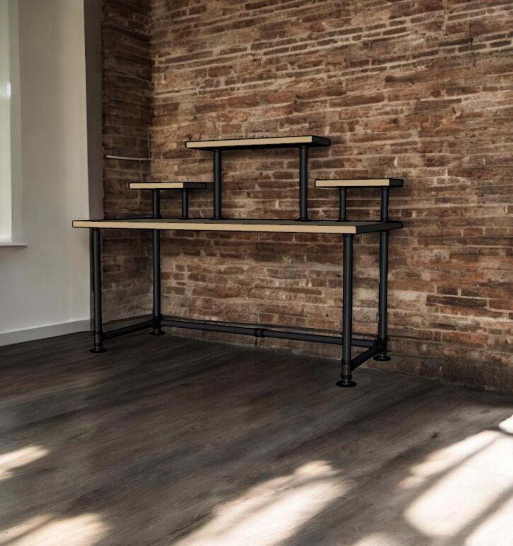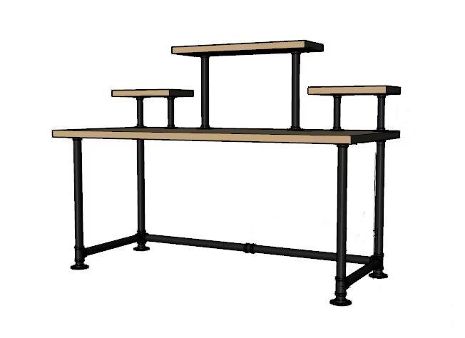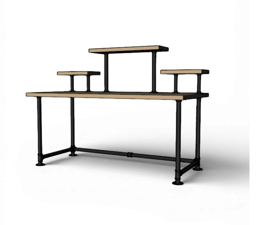 Industrial Pipe Desk Base "DIY" Parts Kit- 3/4” pipe x 68" long x 30" wide x 28" tall with raised shelving