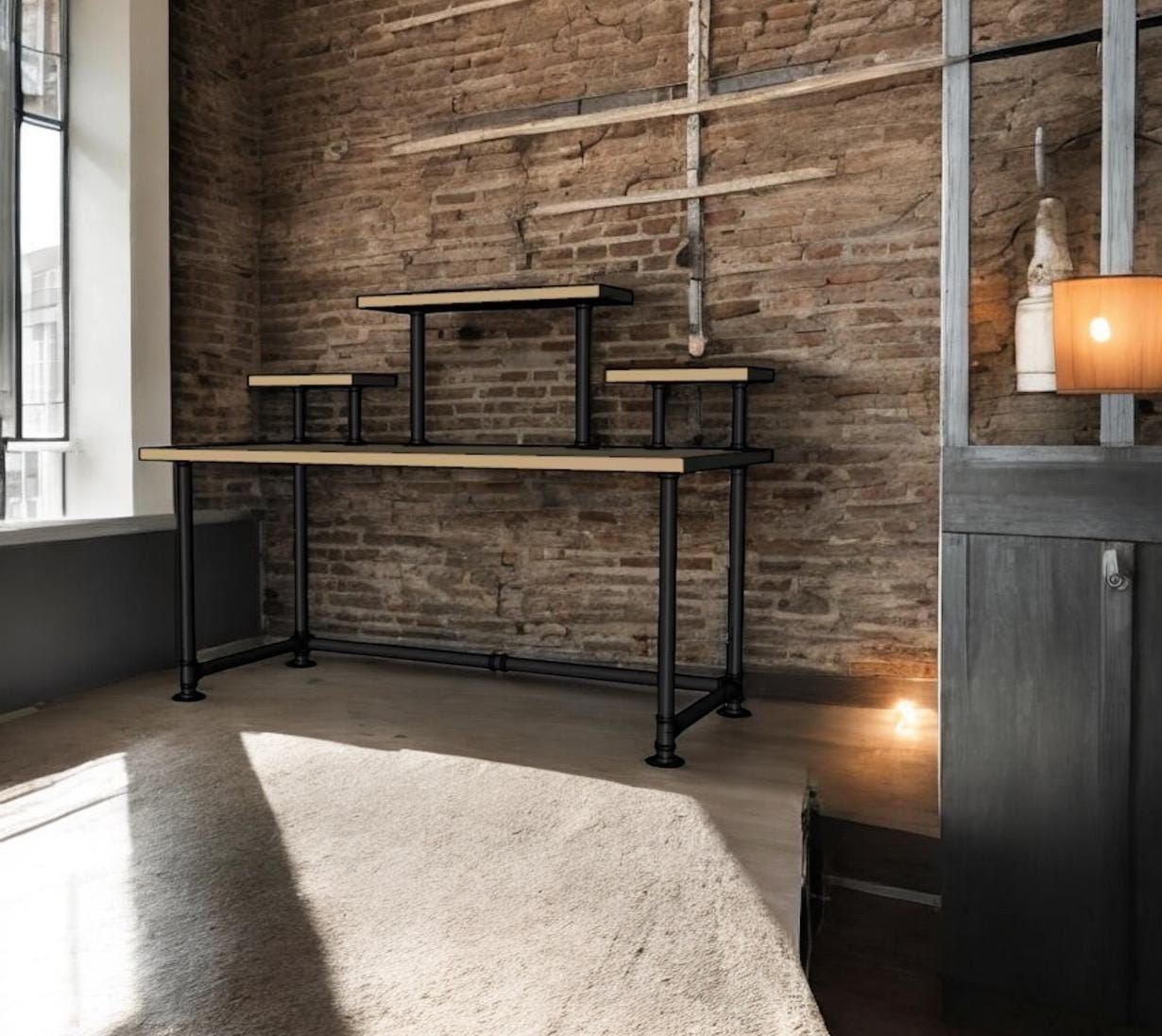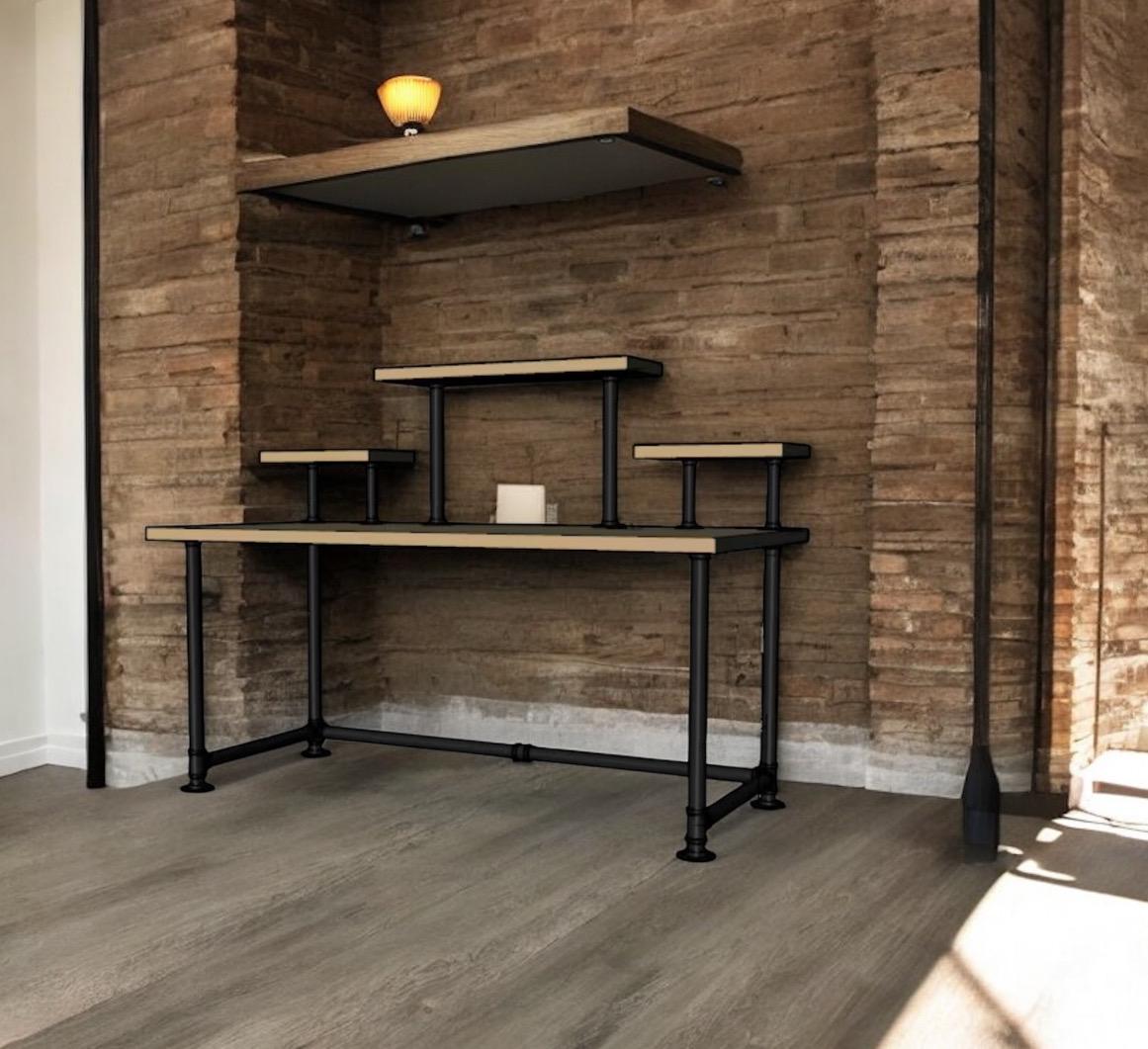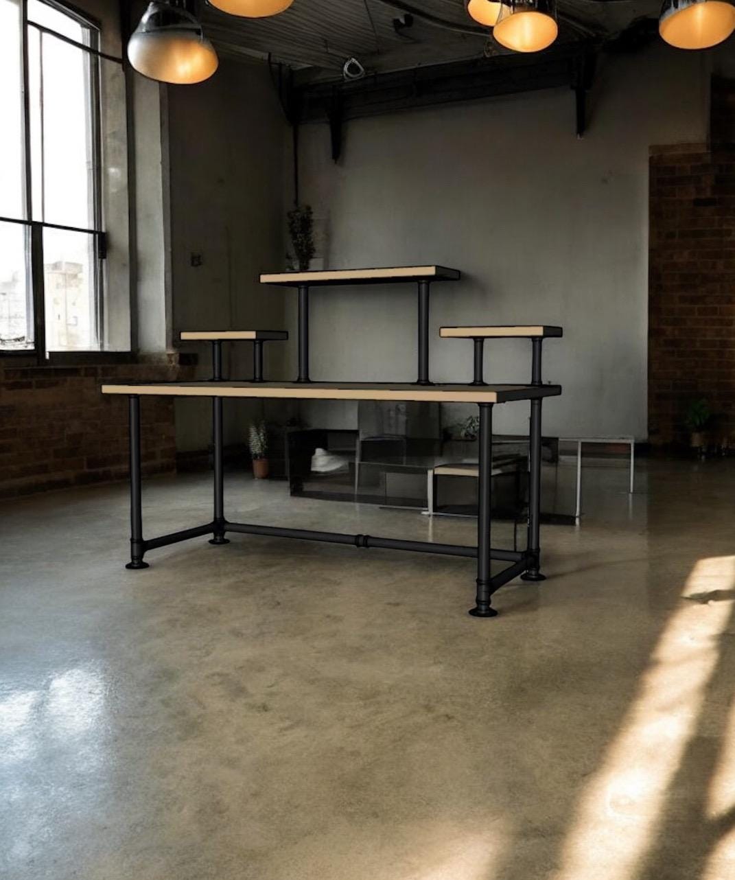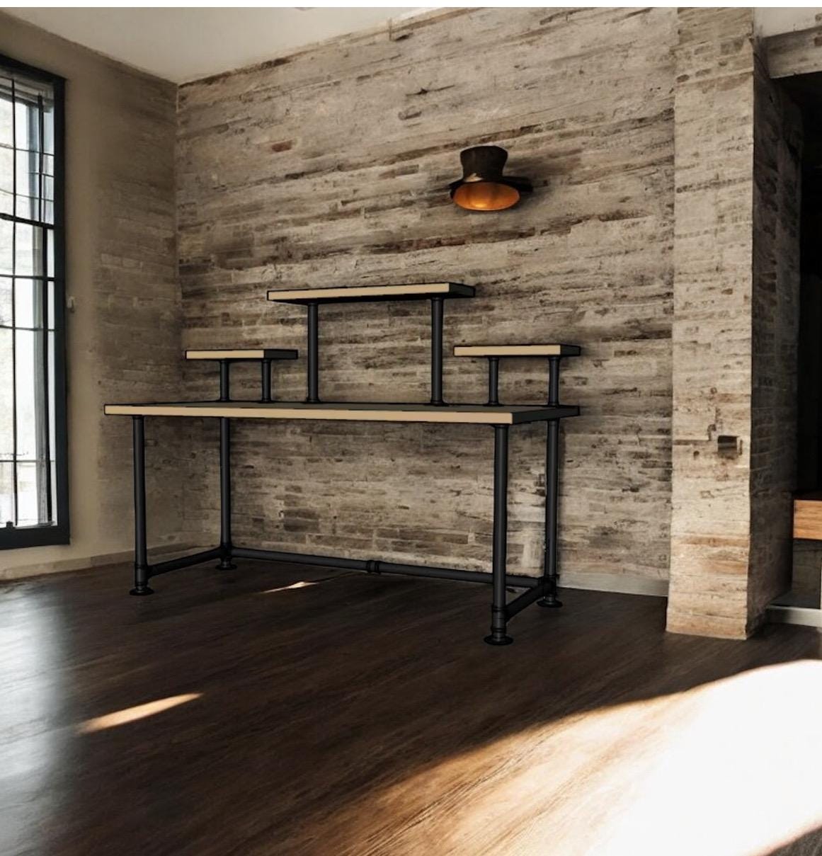 Industrial Pipe Desk Base "DIY" Parts Kit- 3/4” pipe x 68" long x 30" wide x 28" tall with raised shelving