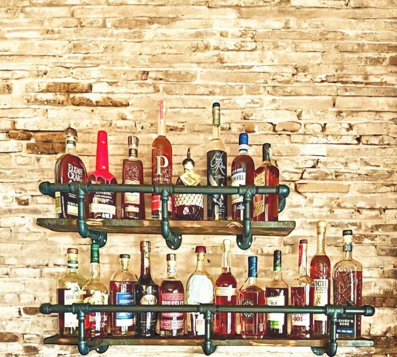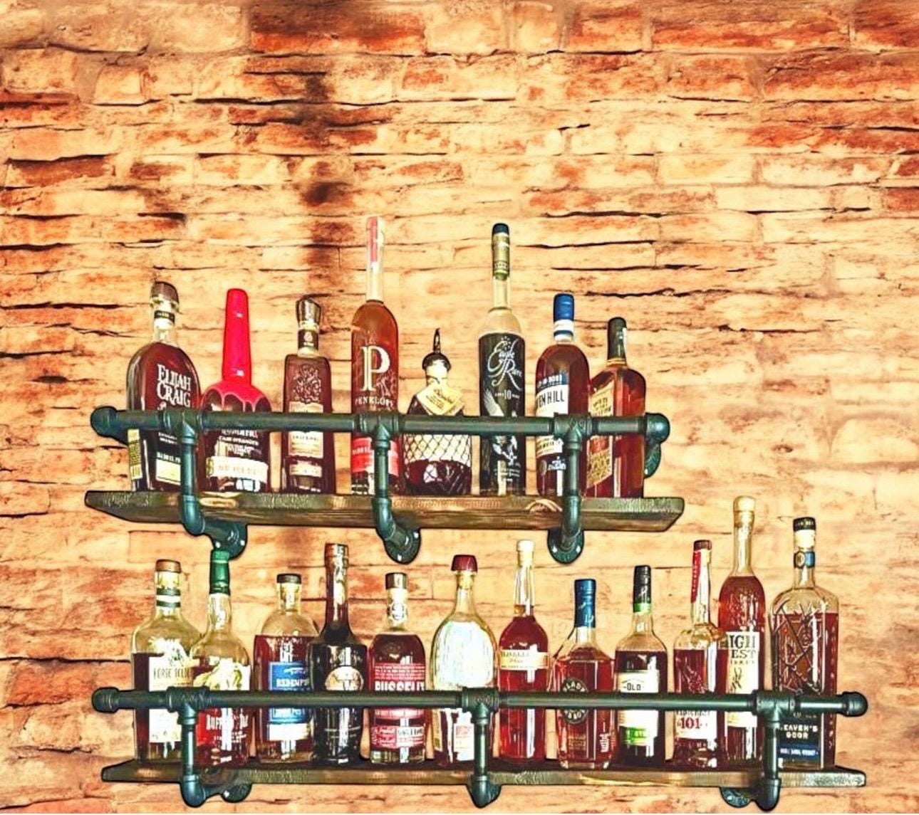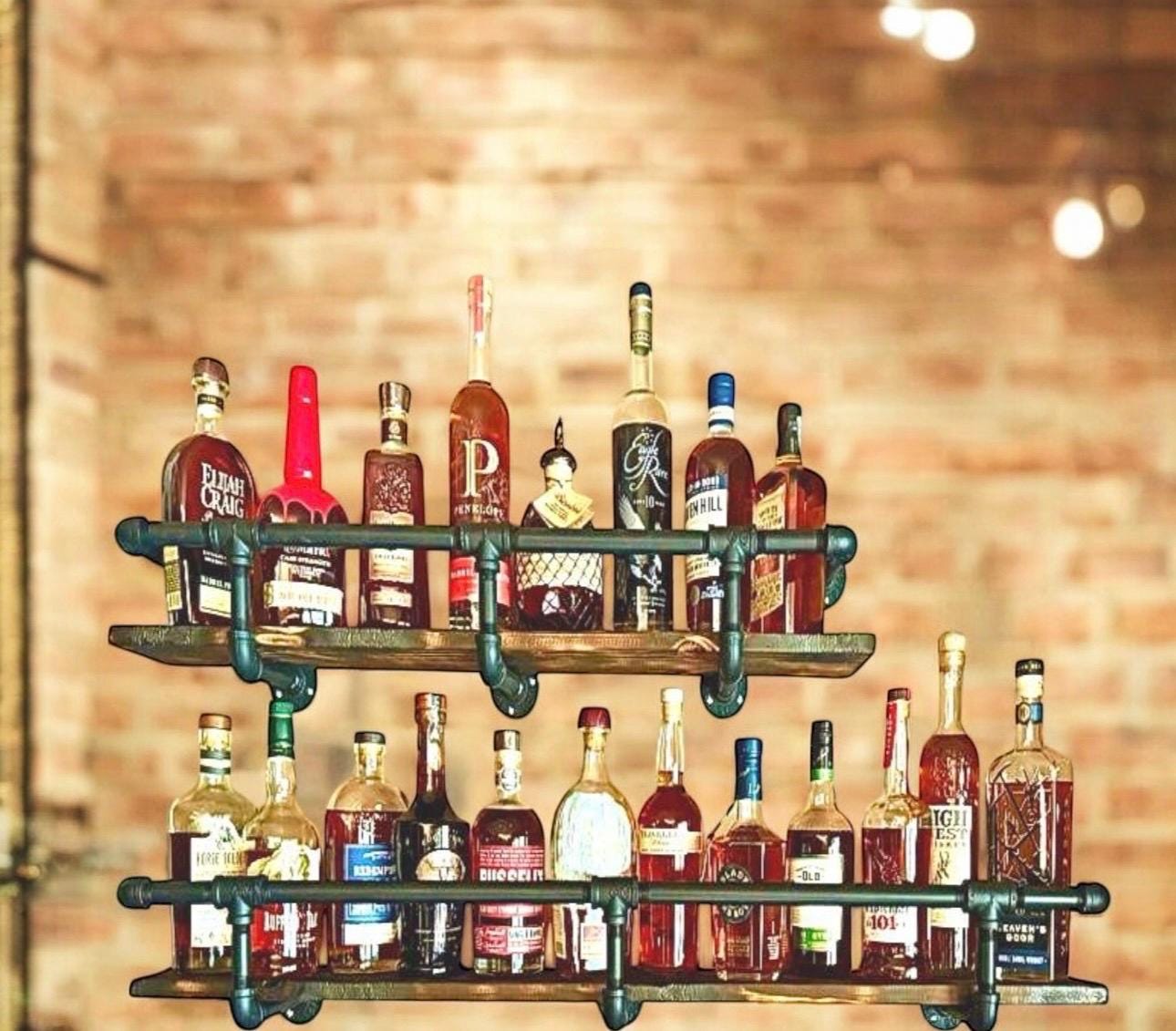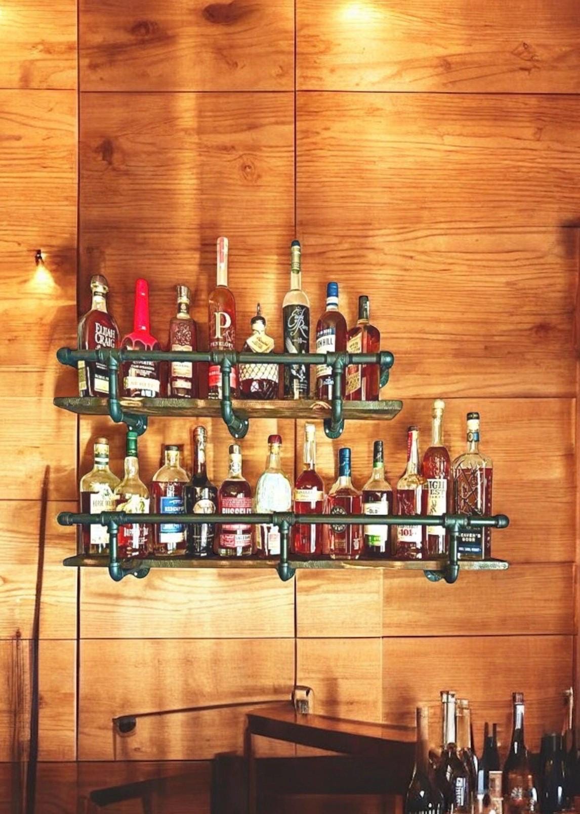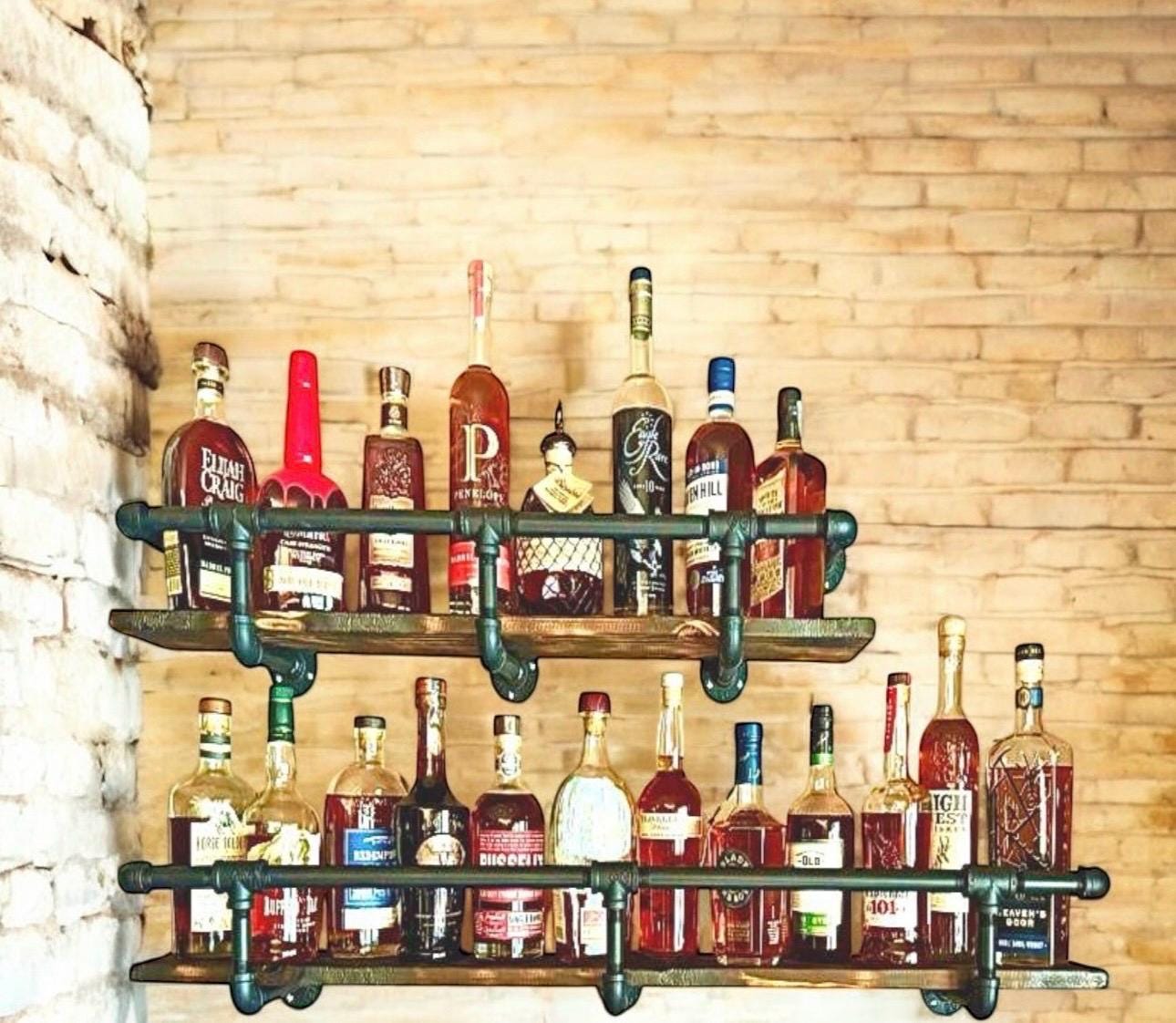 Wood shelf and mounting screws not included. Liquor bottles not included.