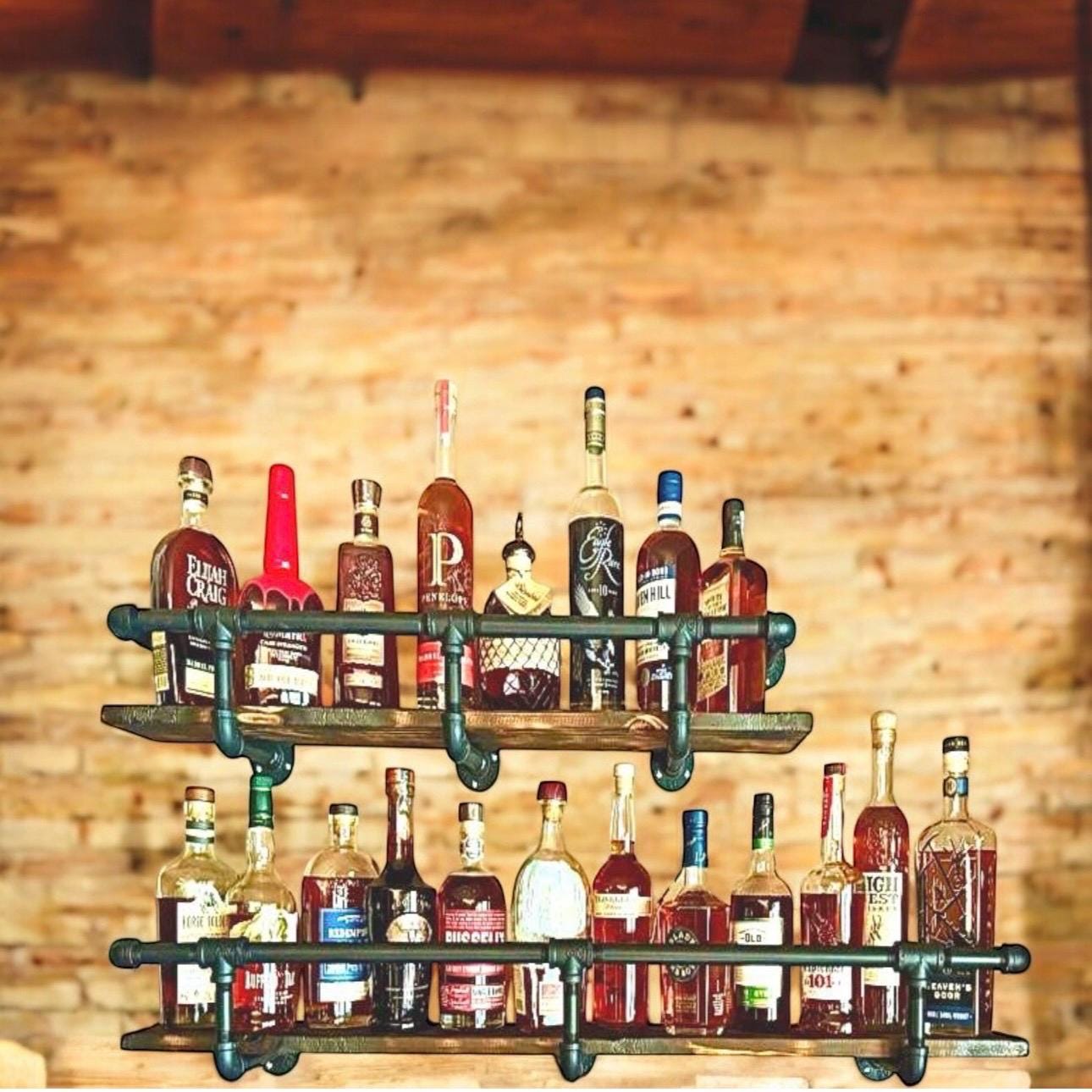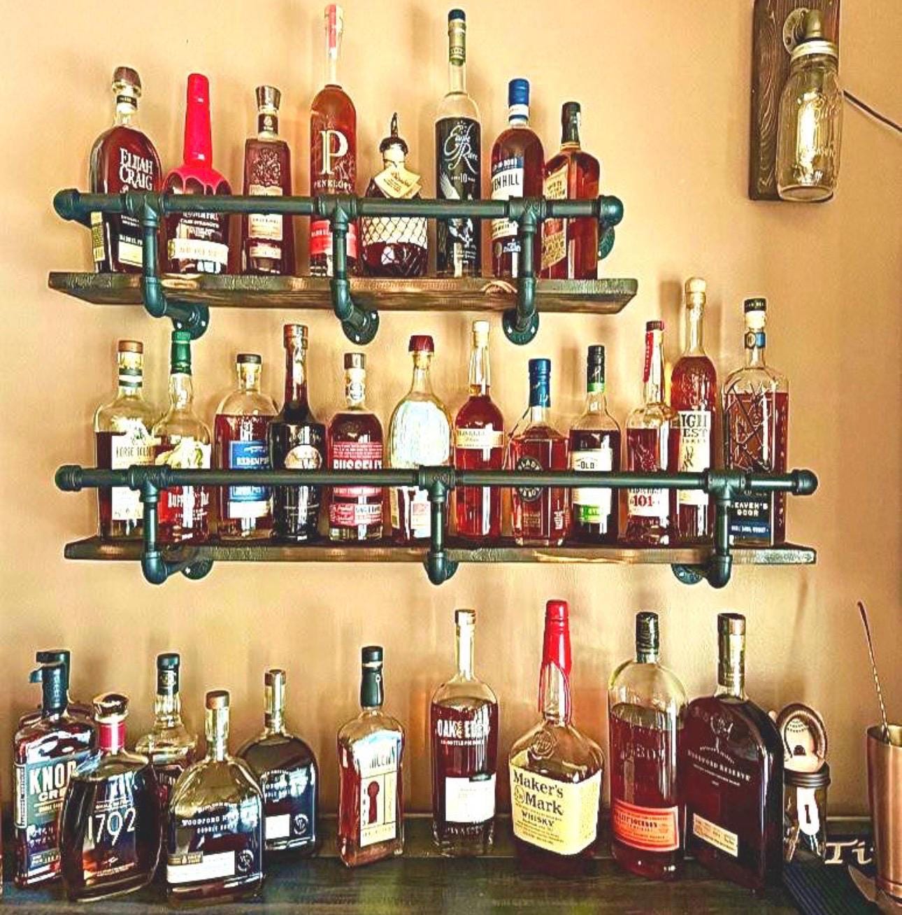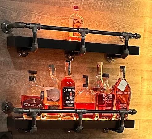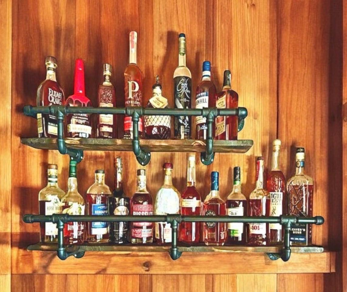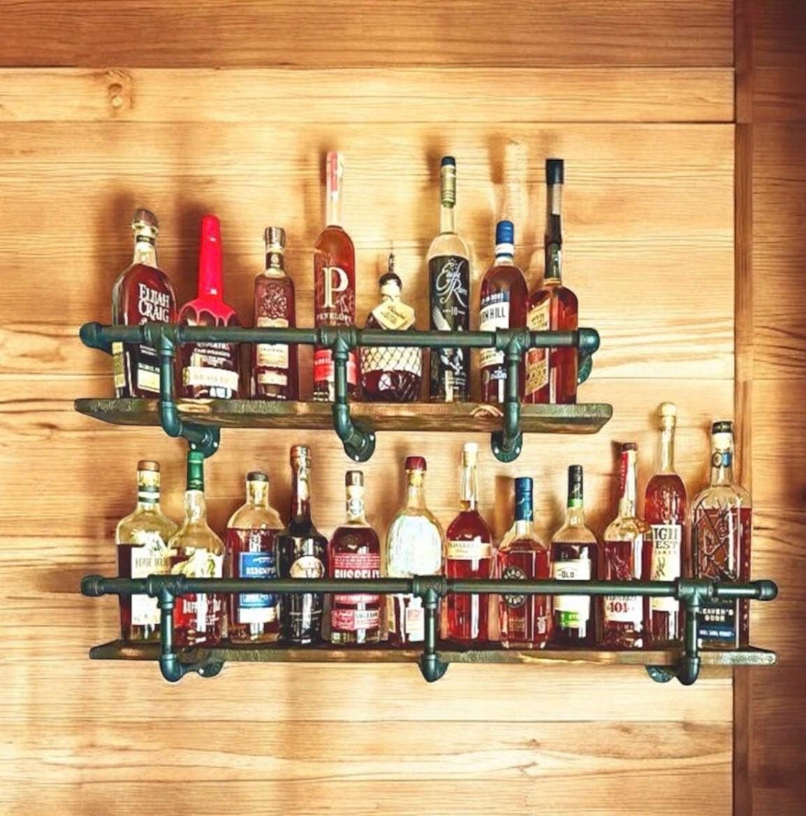 Wood shelf and mounting screws not included. Liquor bottles not included.