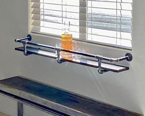 Industrial Pipe Shelf Bracket with Drink/Bar Safety Rail "DIY" Parts Kit, 30" long to 96” long - Perfect Mini Drink or Coffee Bar-HUGE SALE!