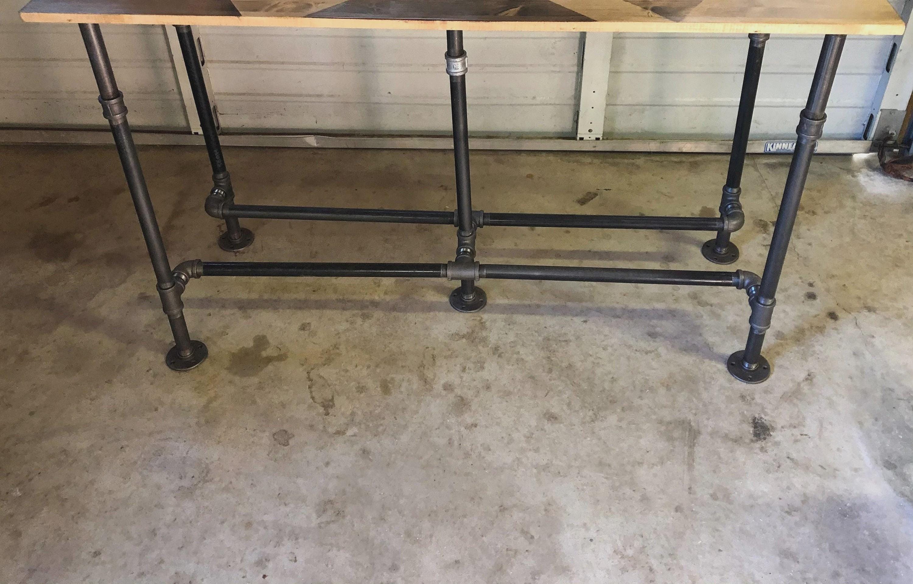 The table legs in the Pipe Design in raw iron gives a raw and industrial look.***Please note: all table base measurements (width and length) that are stated in this listing are measured from the outside edges of the round flanges on top of the base. Please reference the Q & A section in my Etsy shop for instructions on cleaning and more details regarding the black pipe products sold in my store.Assembly instructions for the "DIY" kits will be emailed to your Etsy account email once you have placed your order.