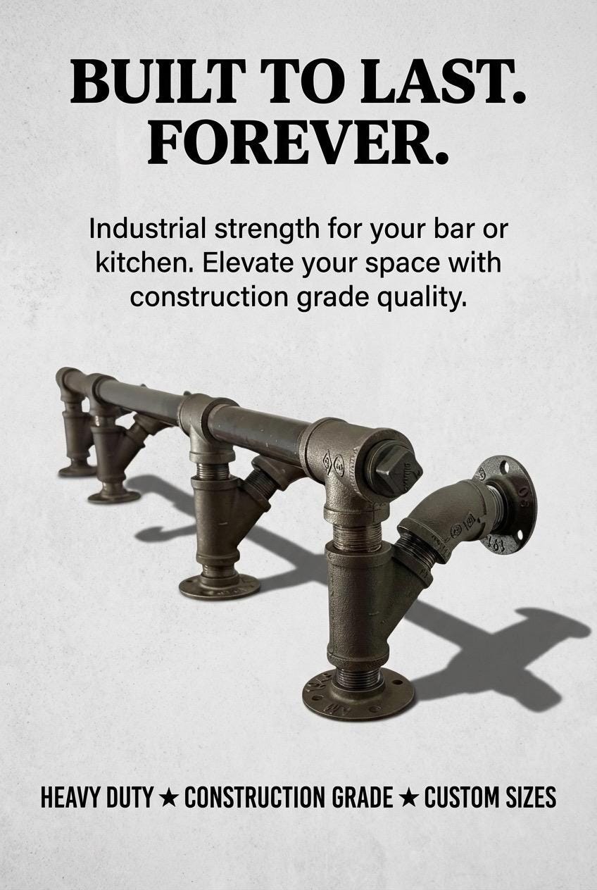 Industrial Pipe Bar Foot Rail Kit, Heavy Duty Construction Grade Quality - Kitchens, Bars, Restaurants, Custom Orders Available!