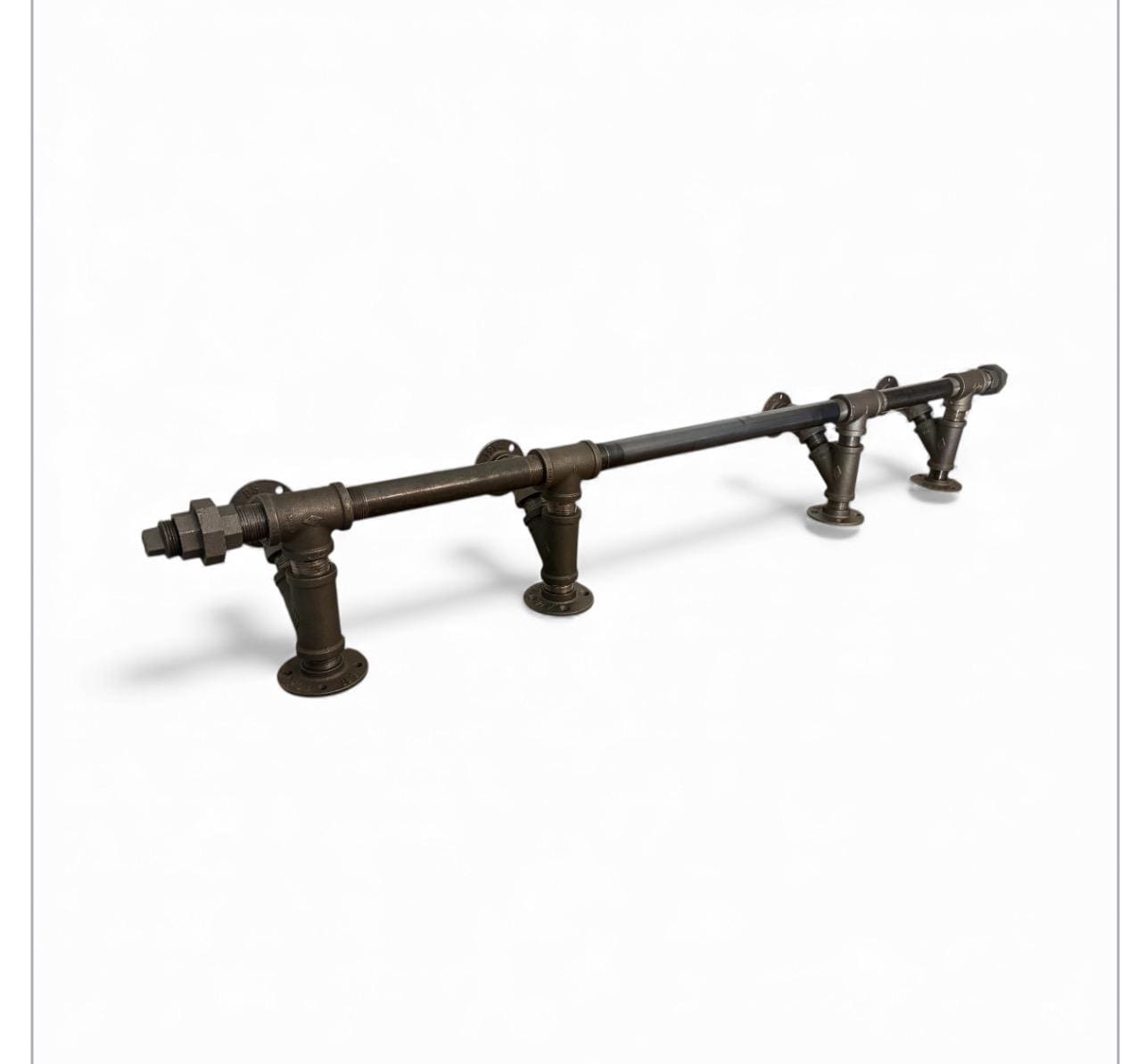 When ordering our straight shelf brackets, please be aware that the listed length refers to the pipe itself. Once the pipe, mounting flange, and end cap are fully assembled, the usable space for your shelf will be 3/4" to 1" shorter.