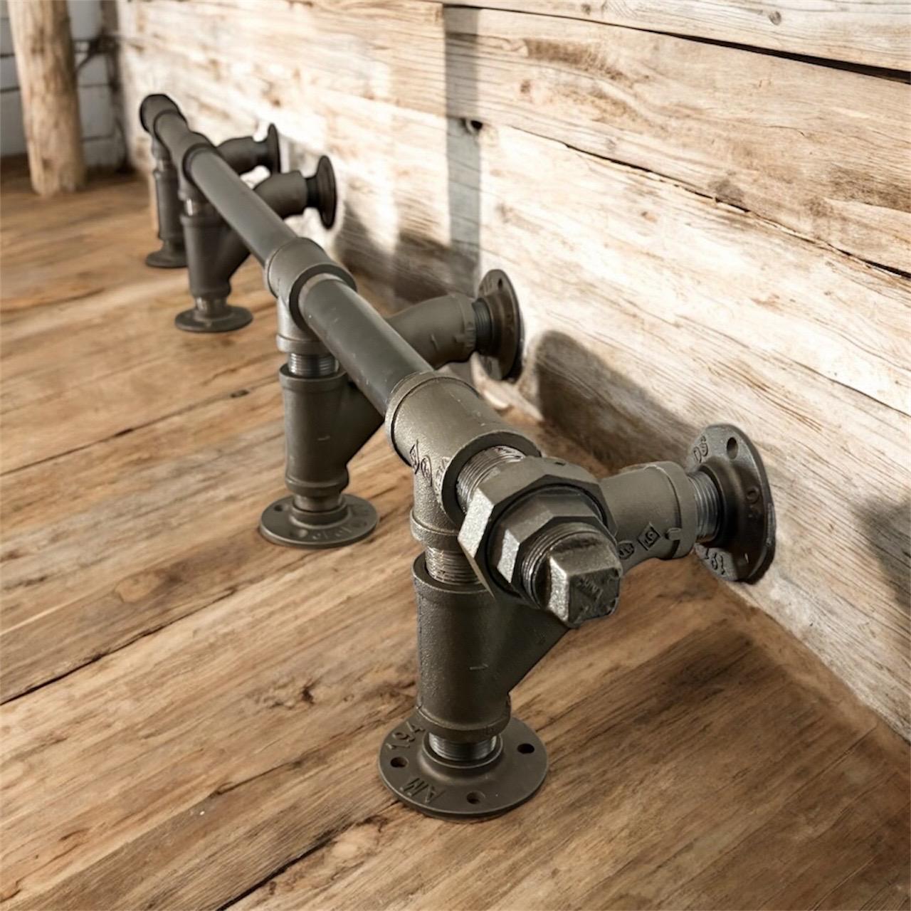 Enhance your bar or kitchen island with this Industrial Pipe Bar Foot Rail Kit, crafted from heavy-duty 1” diameter metal for lasting support and a rugged, rustic charm. Available in multiple lengths from 48" to 144", it offers a customizable fit to suit your space while providing a sturdy, comfortable footrest that sets your setup apart from standard options.
