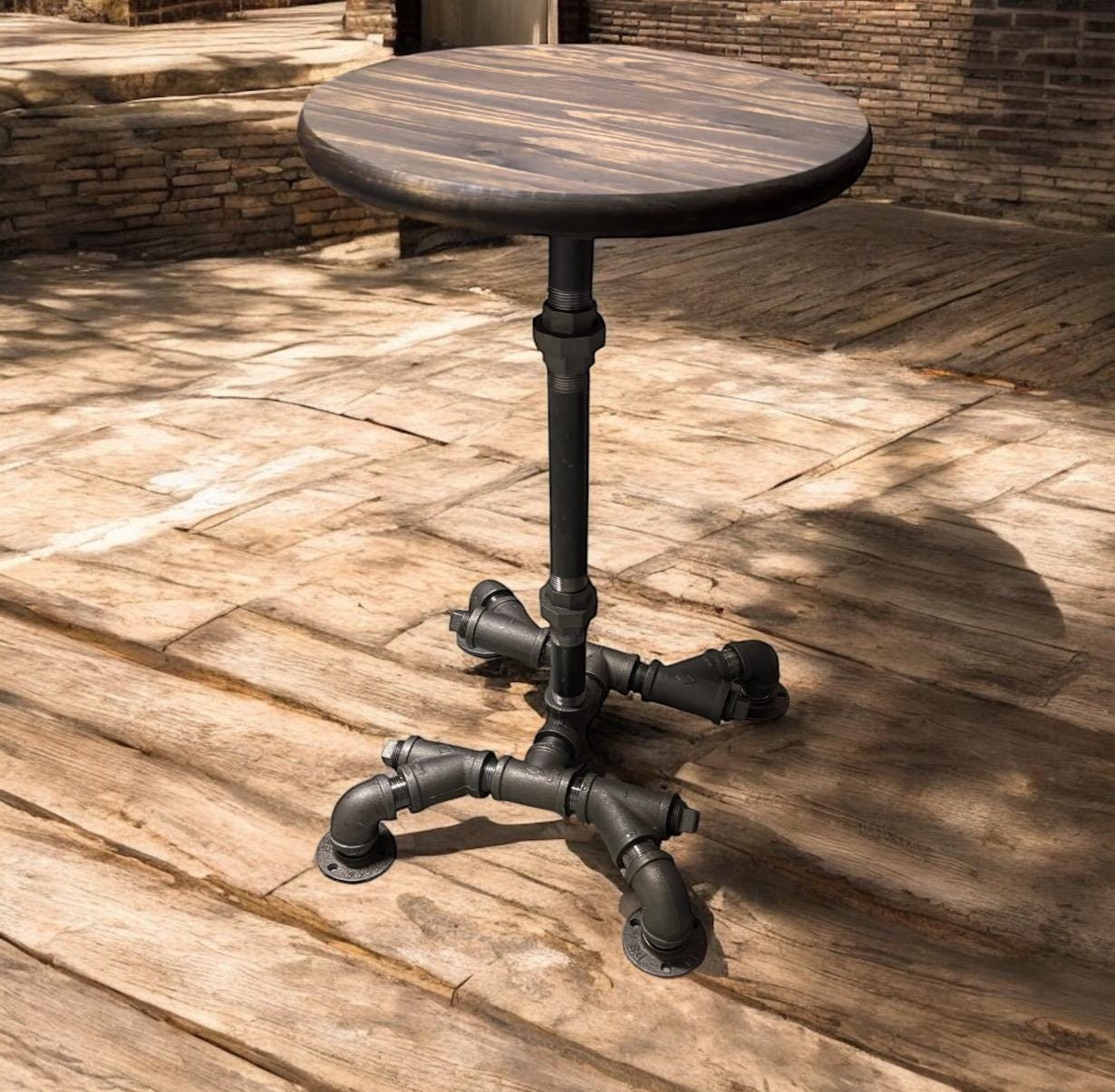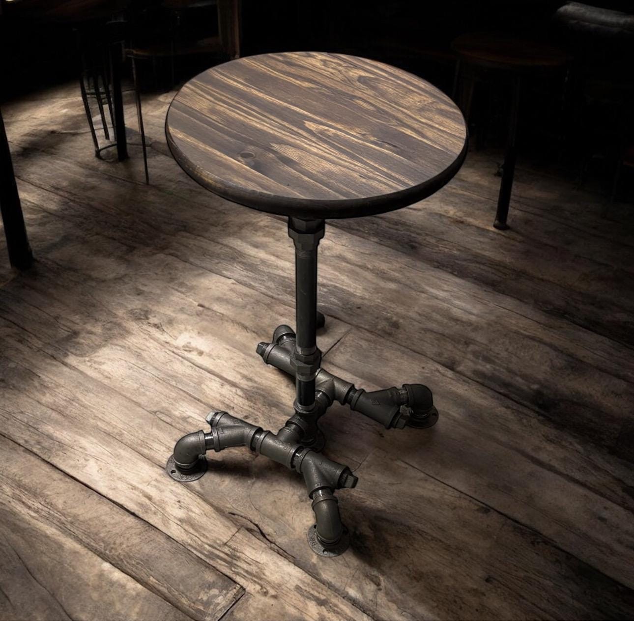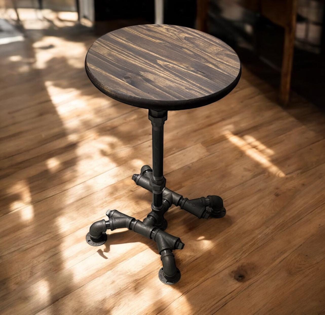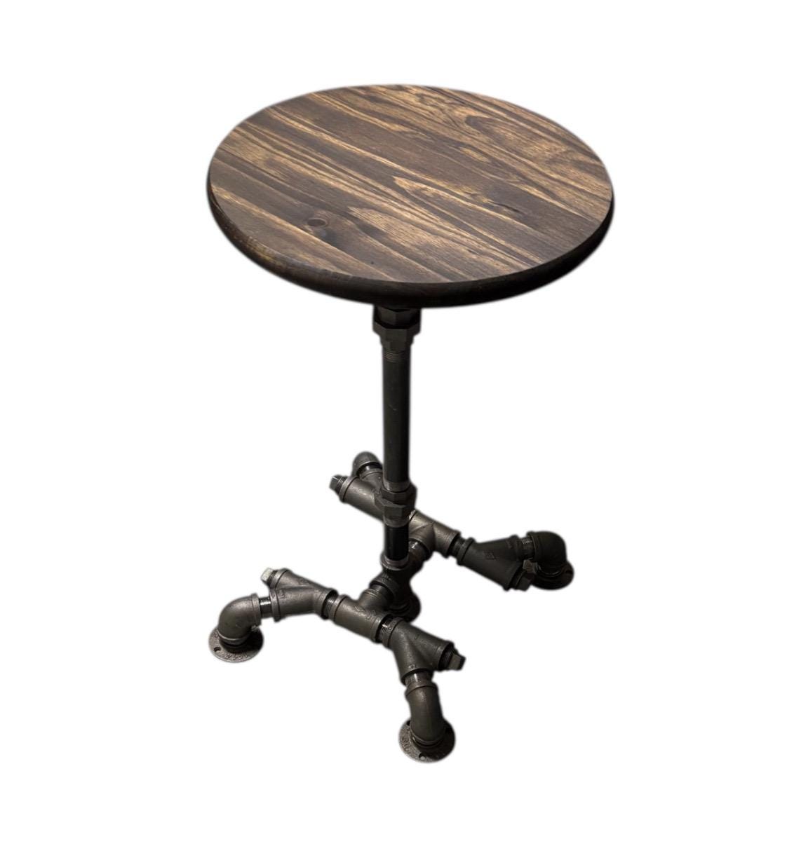 36" Tall x 15” wide base with 15” Round Bar Table, Rustic Industrial Pub Table, Dark Walnut Pine Edge Glued Top Bistro Table With Metal Pipe Base (custom orders are available for this item)