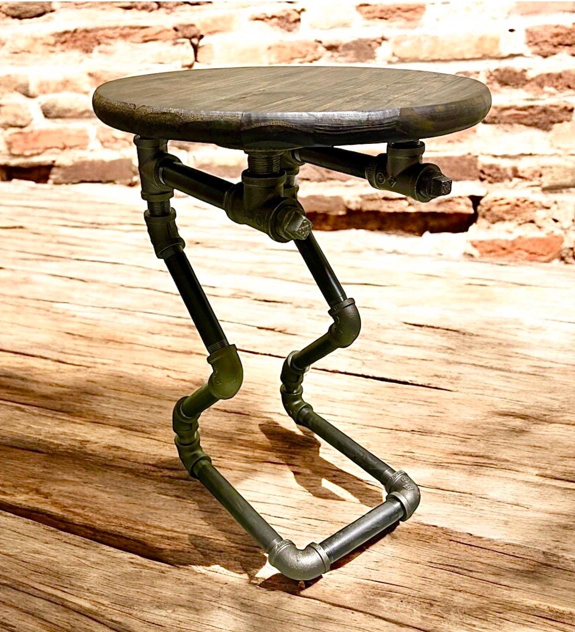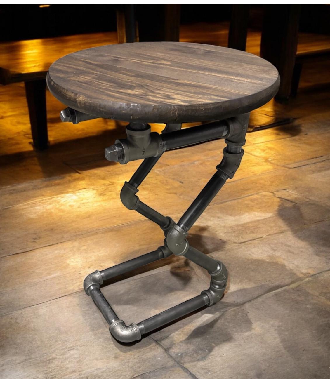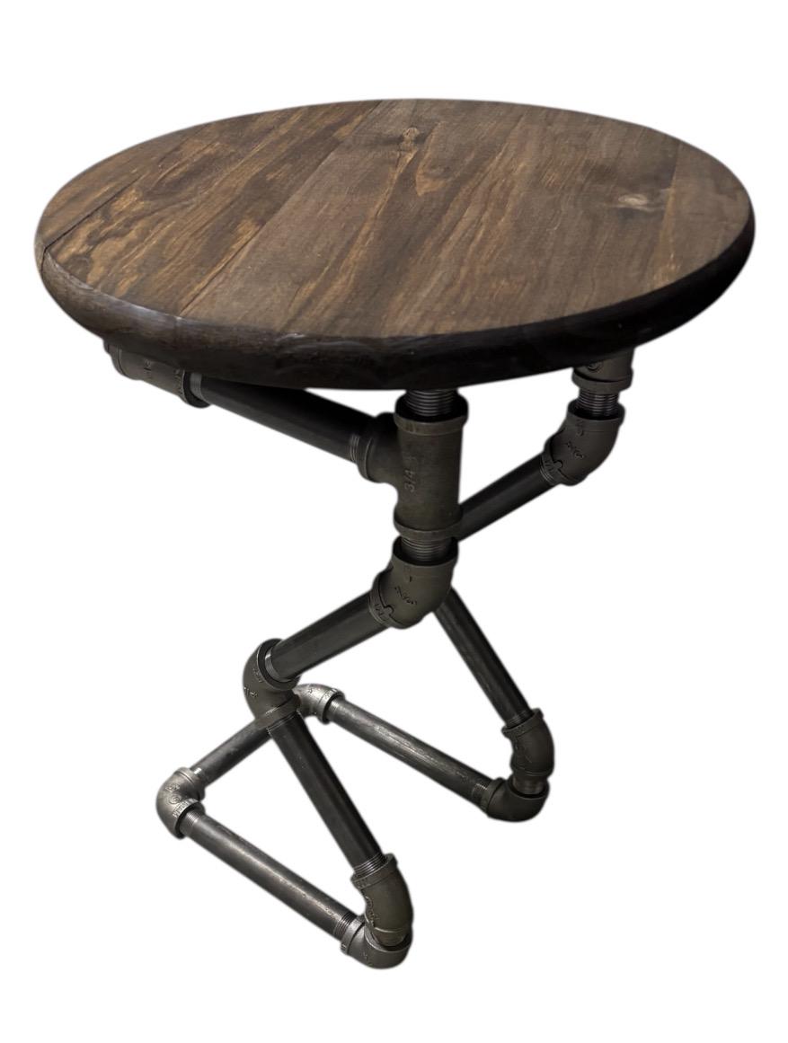 20" Tall x 15” Round Table or Bar Tool, 3/4" Industrial Pipe, Dark Walnut Pine Edge Glued Top, With Iron Pipe Base, Unique Design from PDS