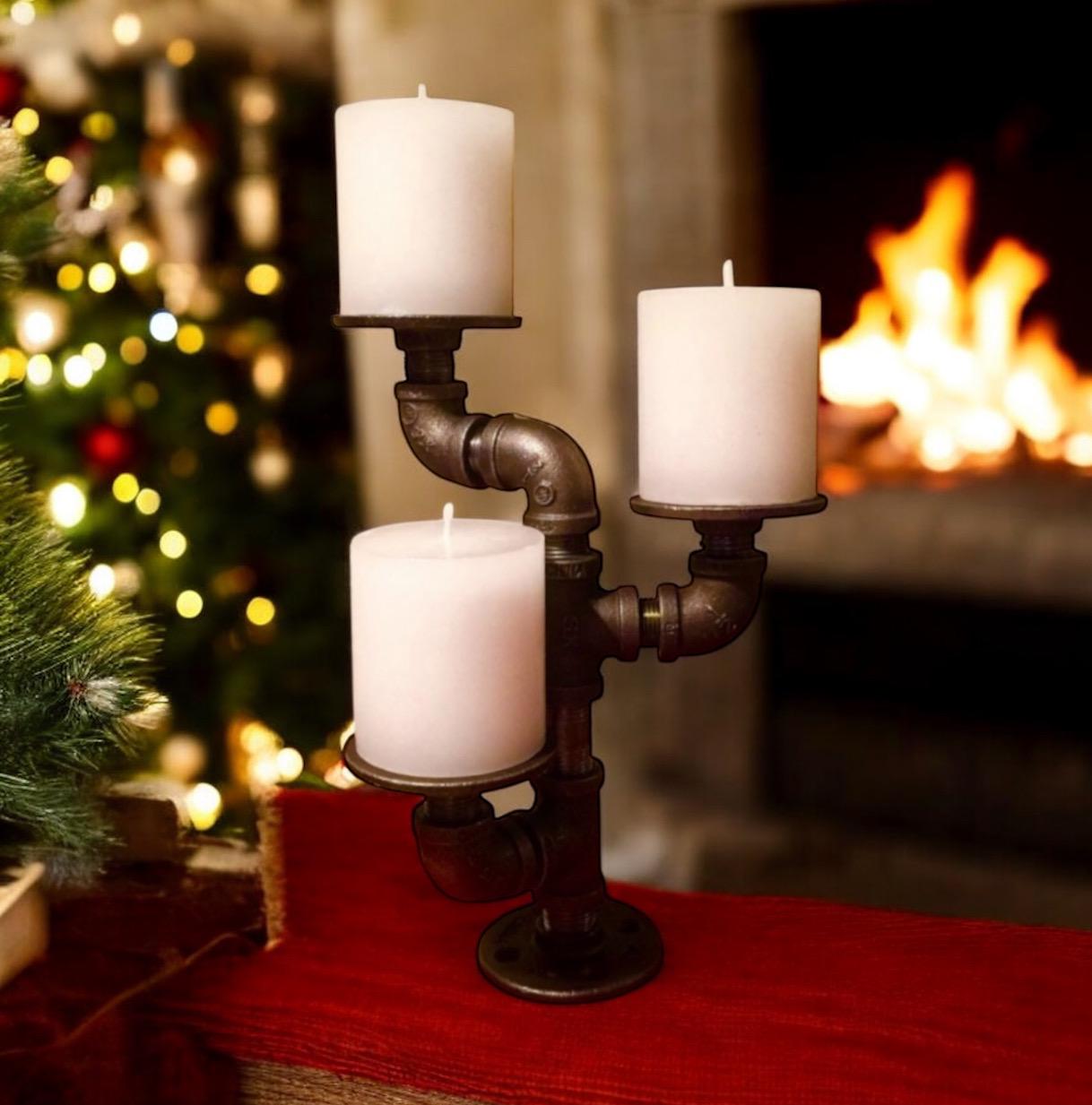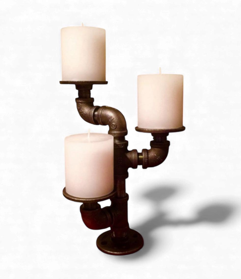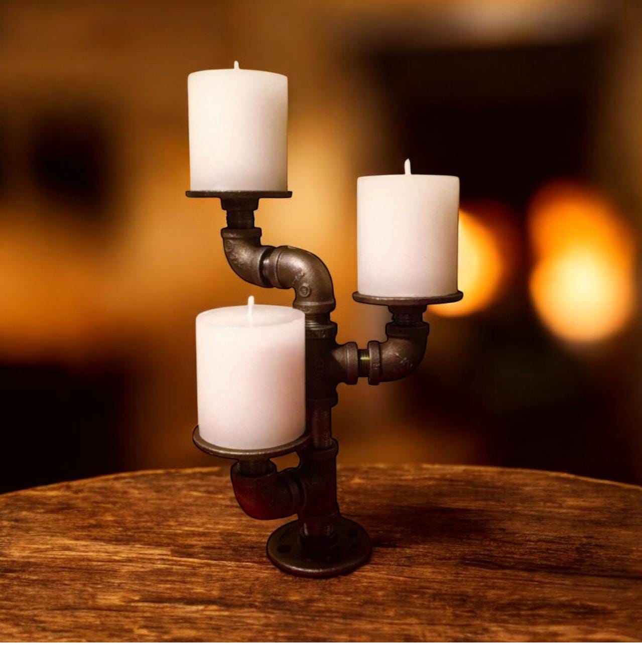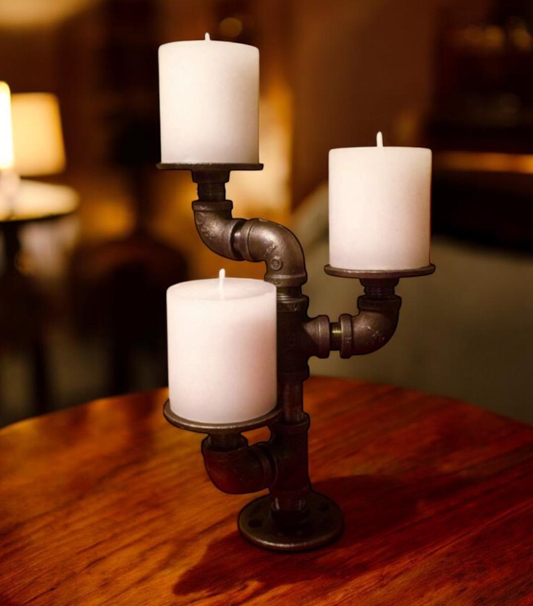 Industrial pipe candle holder. Candles shown are not included with purchase.