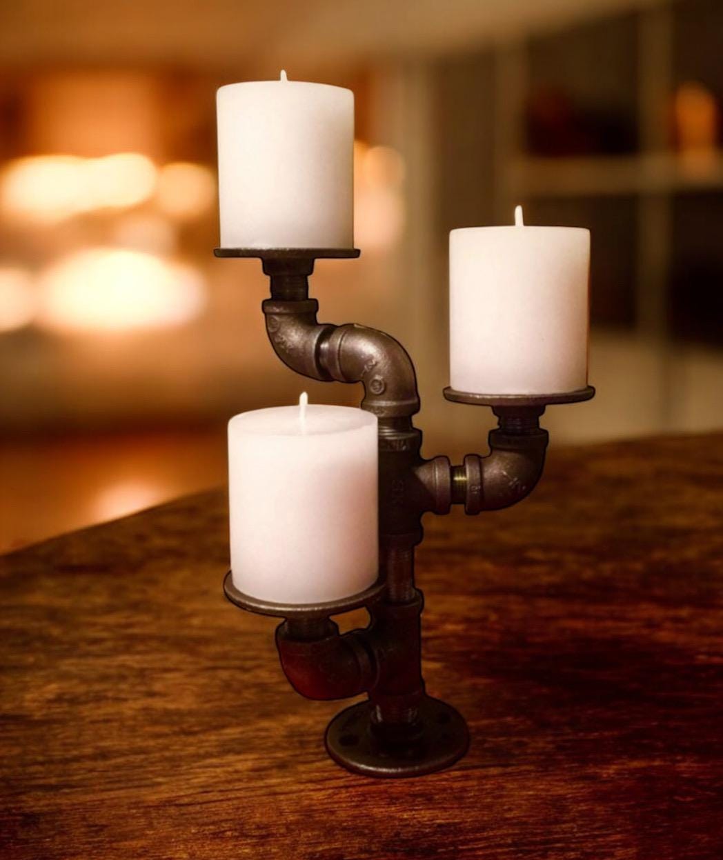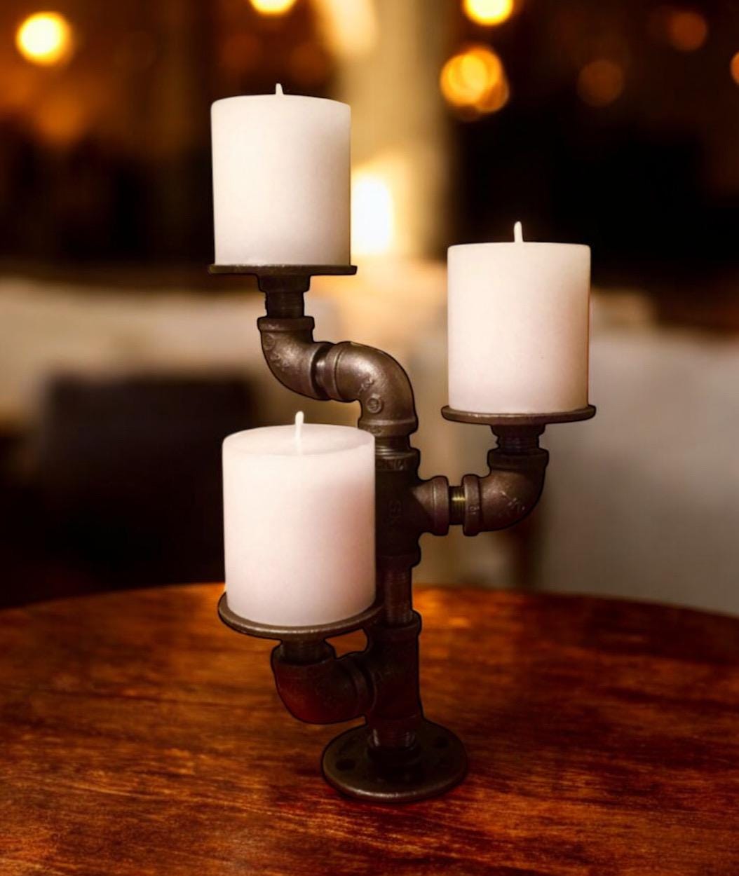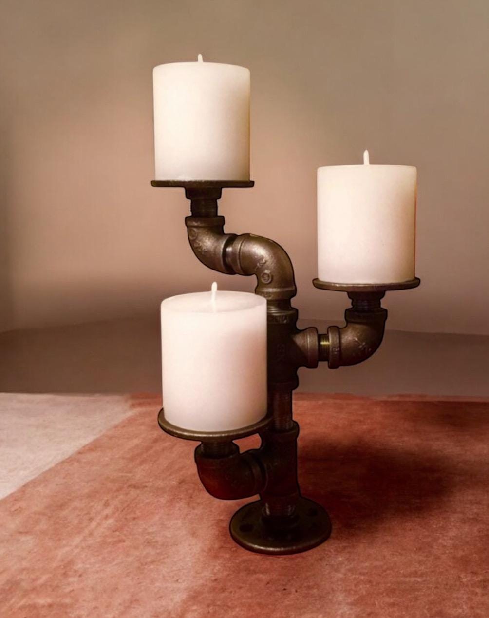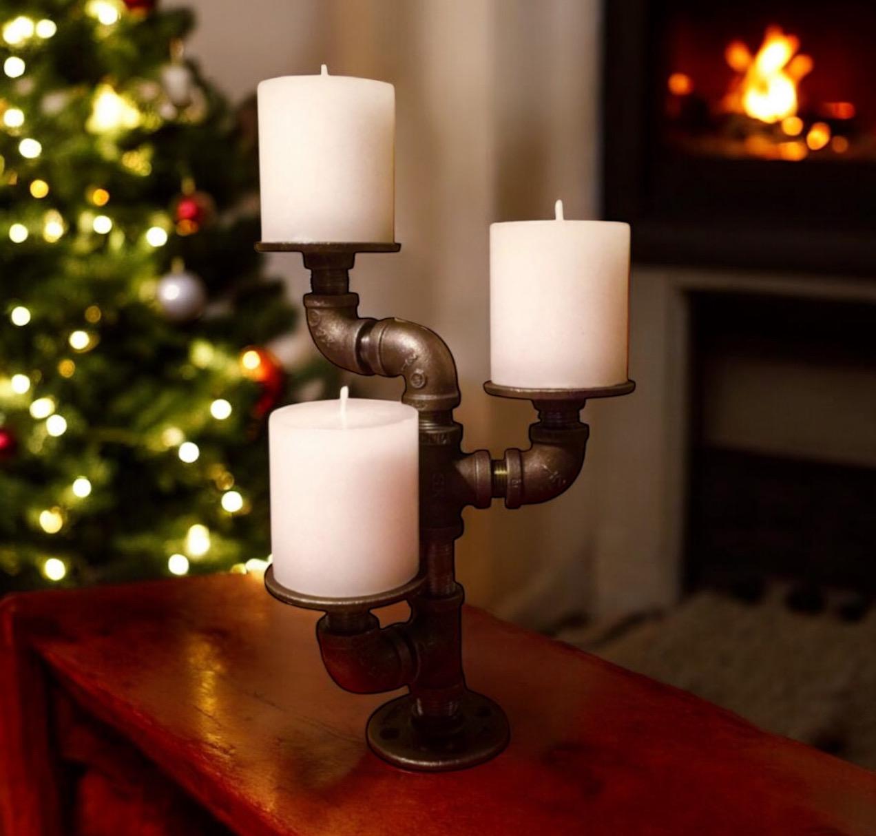 Industrial pipe candle holder. Candles shown are not included with purchase.