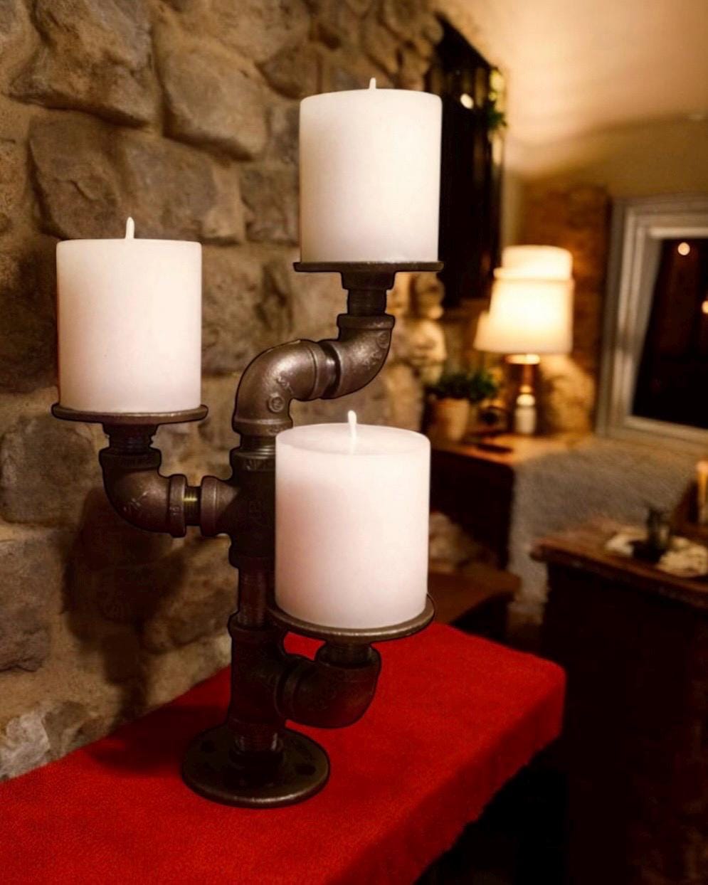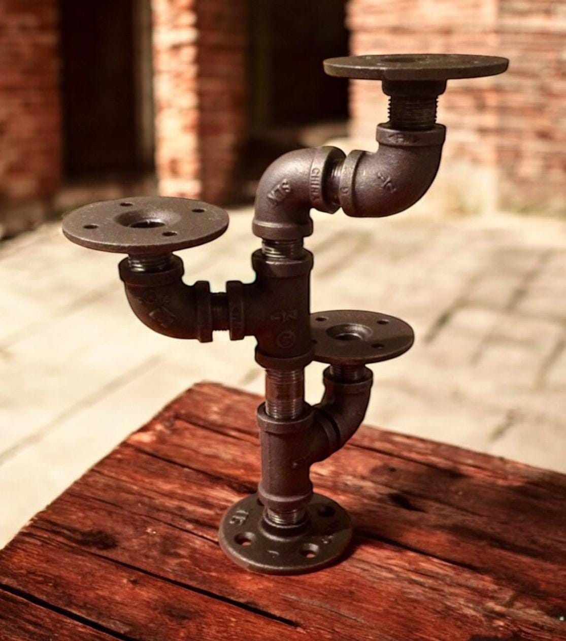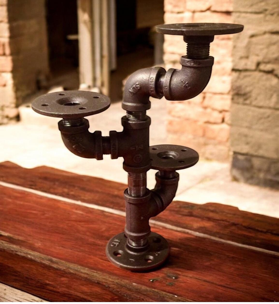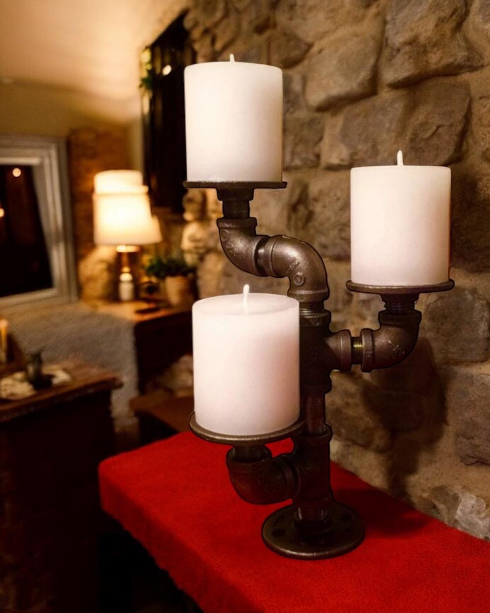 Industrial pipe candle holder. Candles shown are not included with purchase.