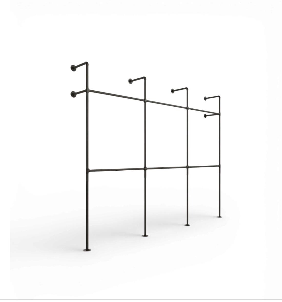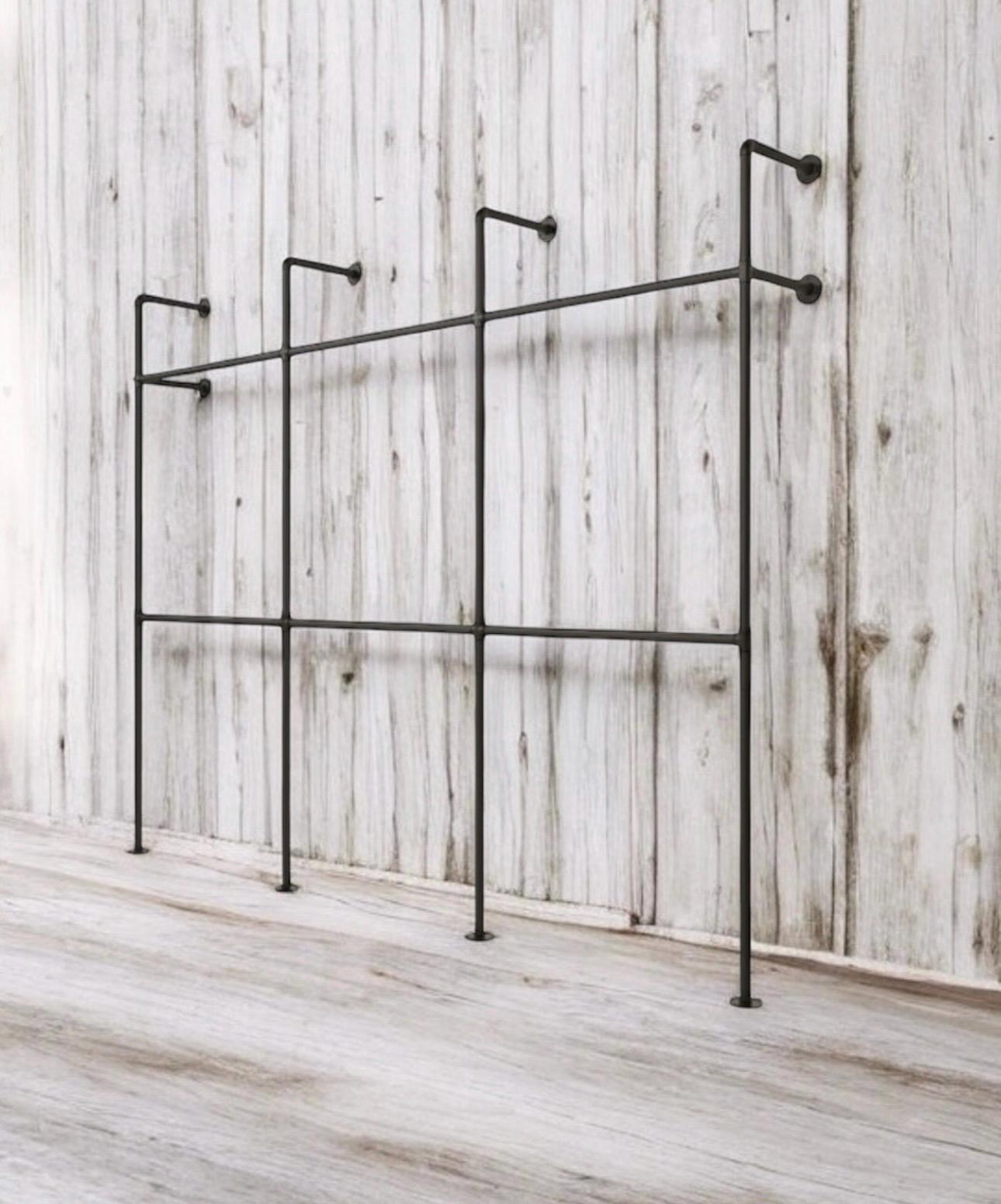 Iron Pipe Clothing Rack Kit- Industrial Design, 74” tall x 14" deep, Width options- 62", 80", 98", or 116"