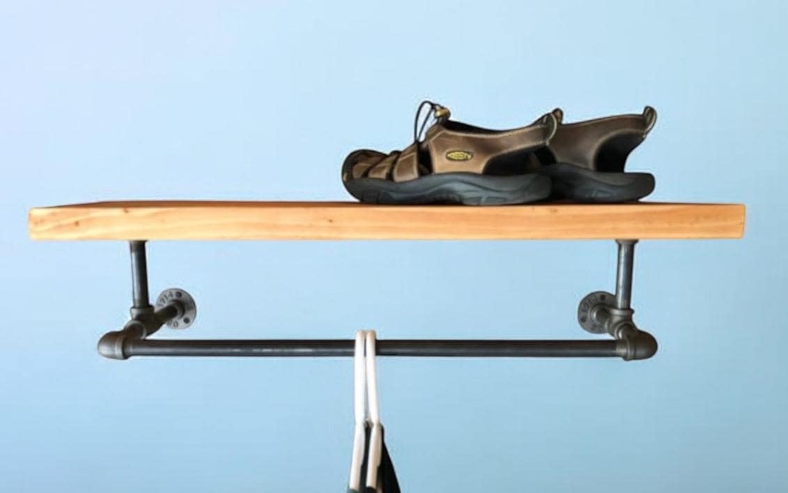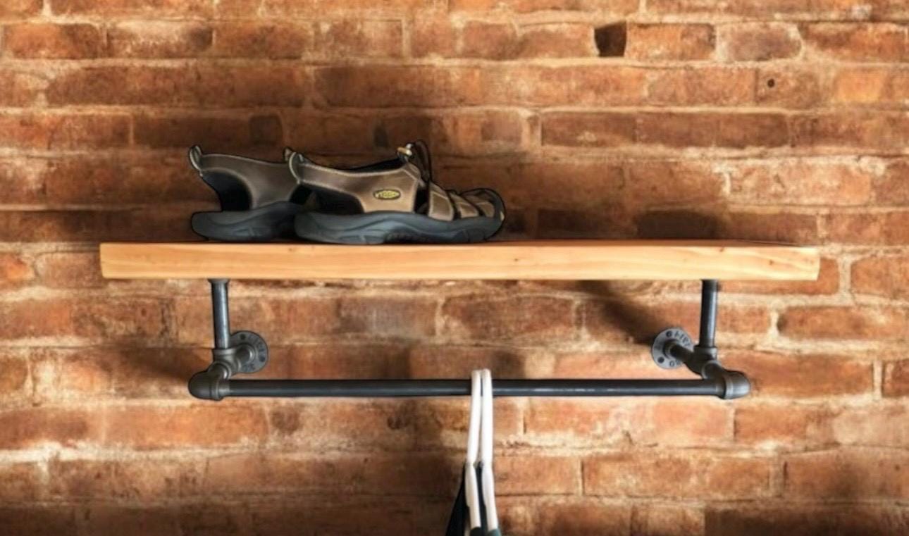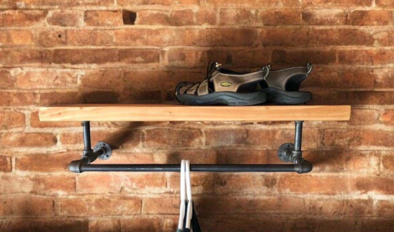 Industrial Pipe Shelf Bracket/Clothes Hanger, “DIY” Parts Kit