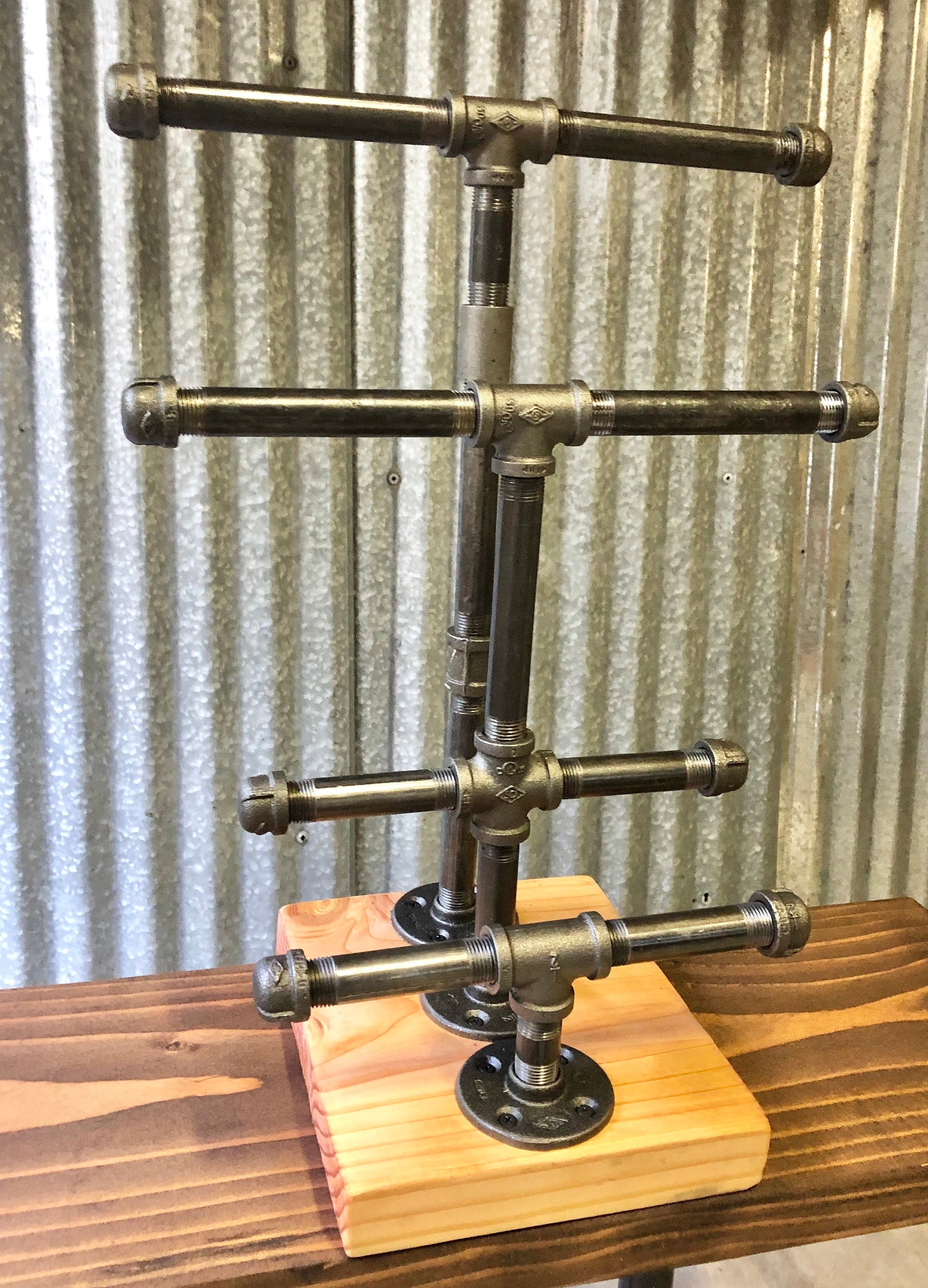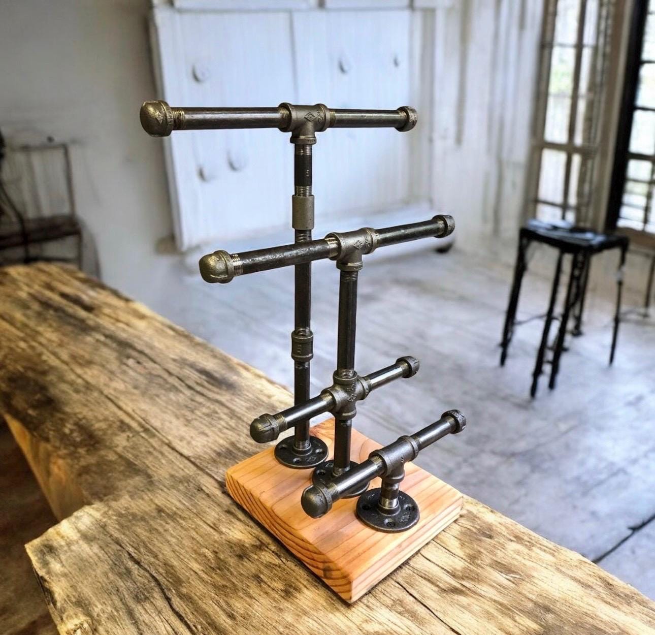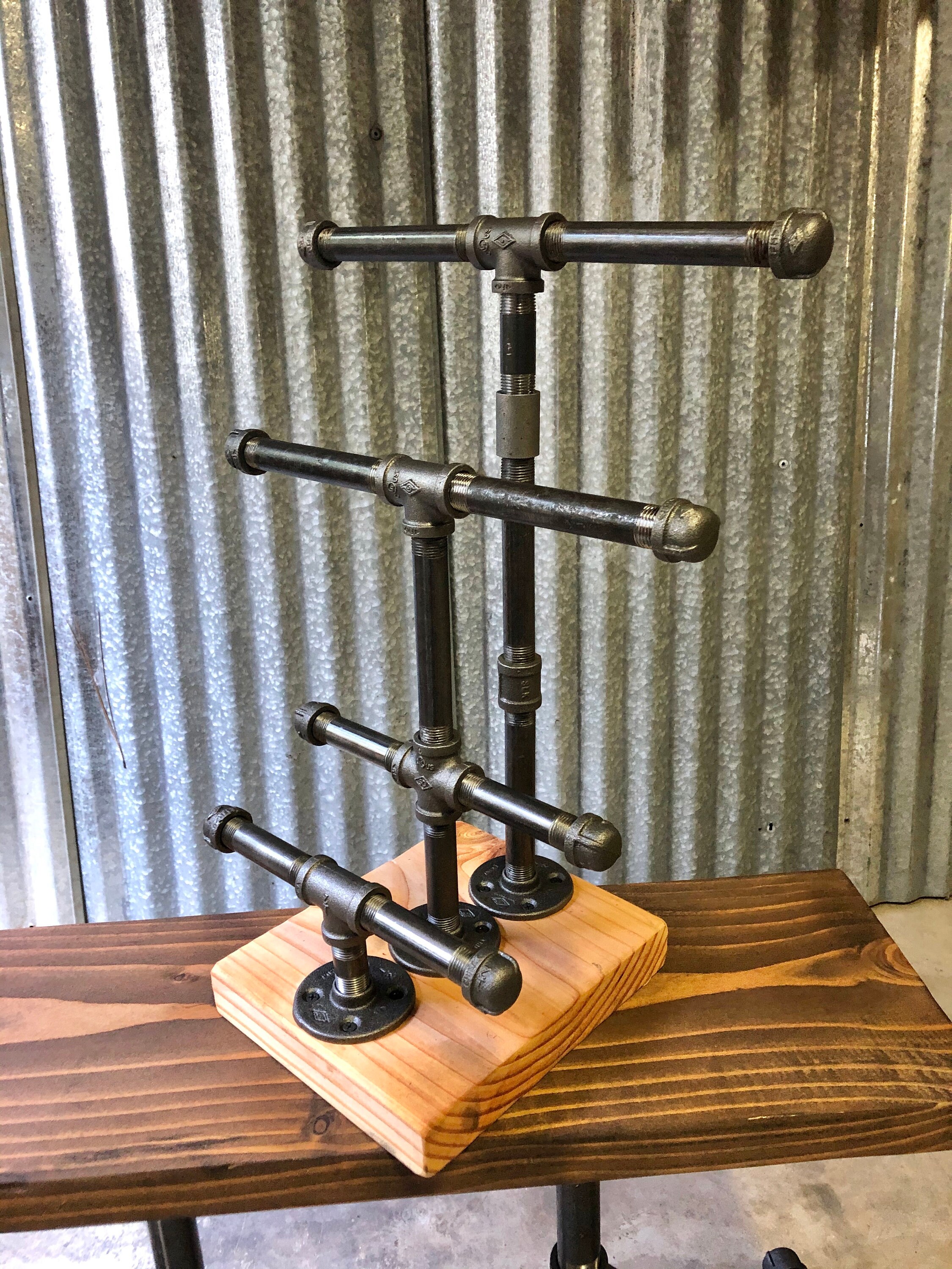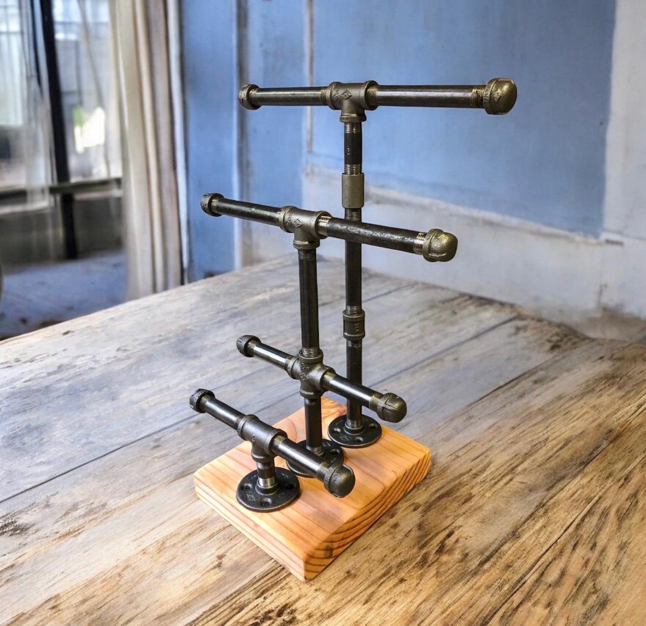 Jewelry Stand/Tree, Industrial Pipe Design with Reclaimed Wood Base -