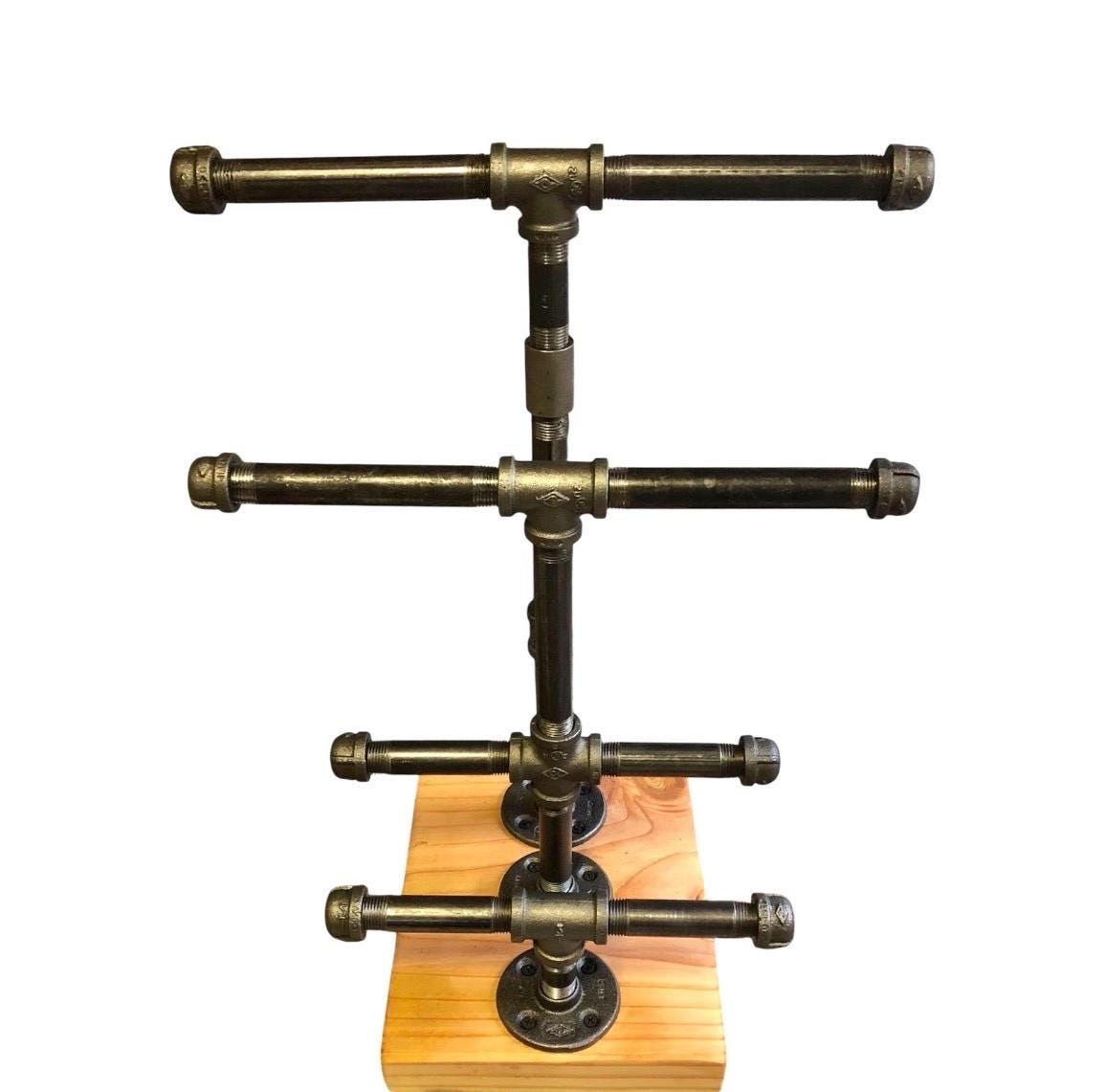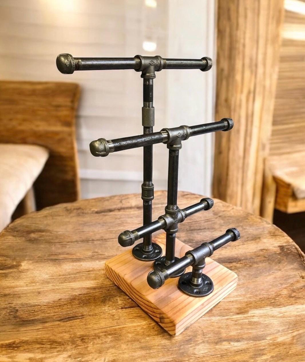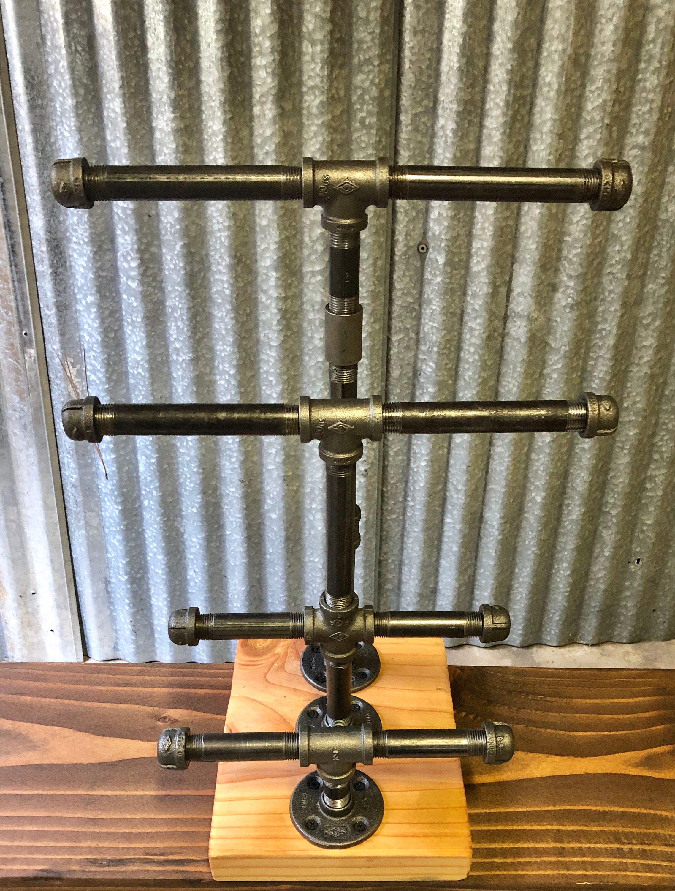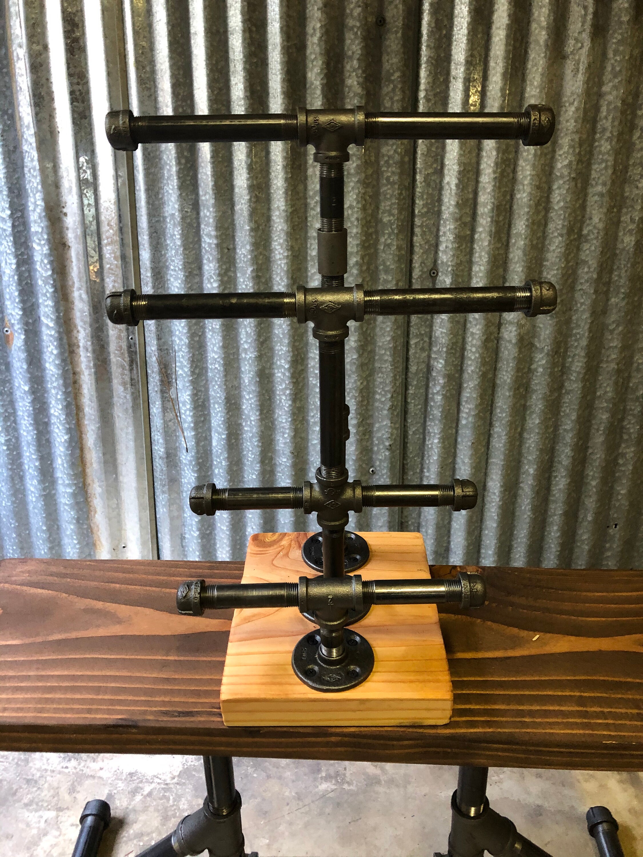 Jewelry Stand/Tree, Industrial Pipe Design with Reclaimed Wood Base -