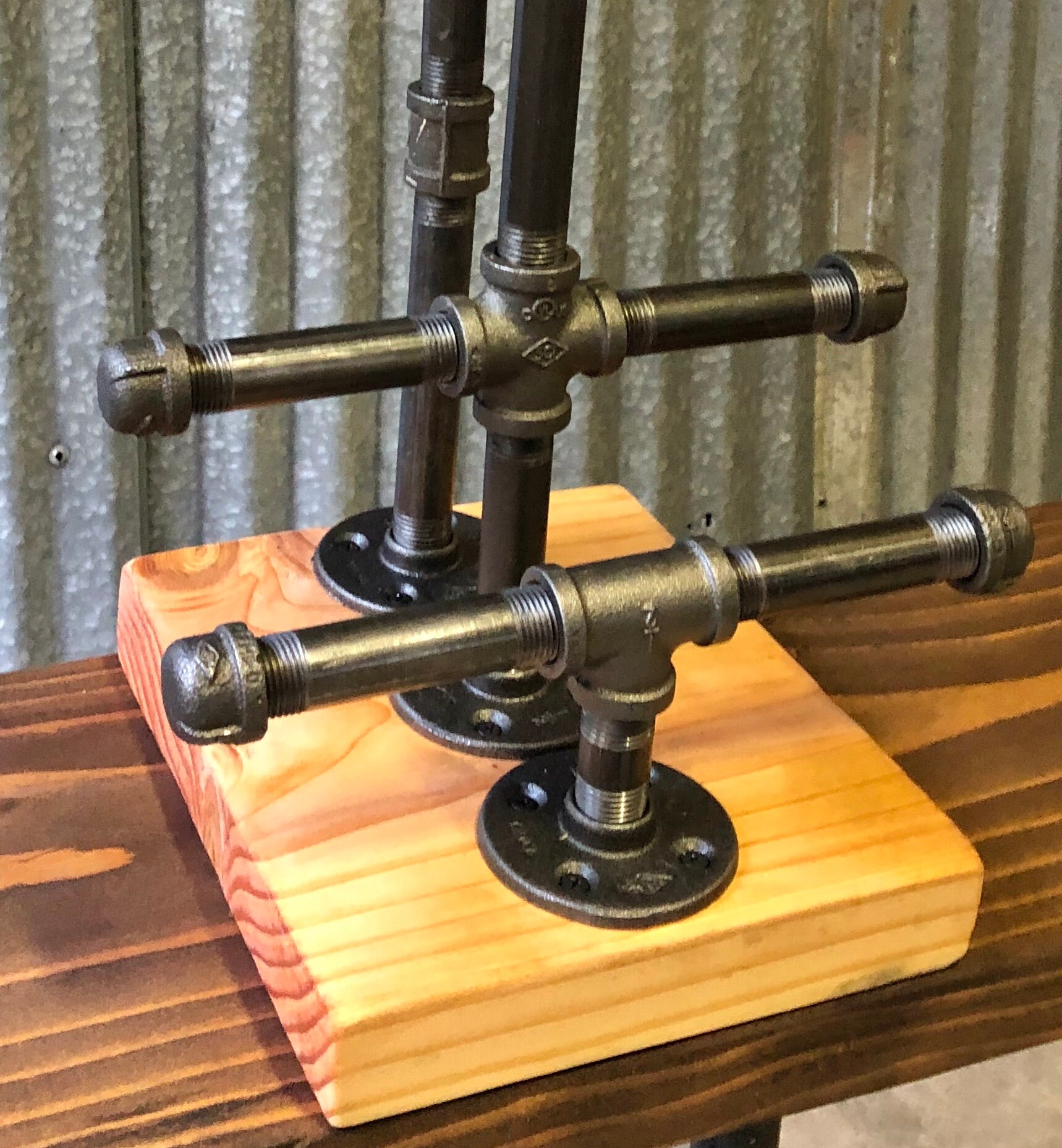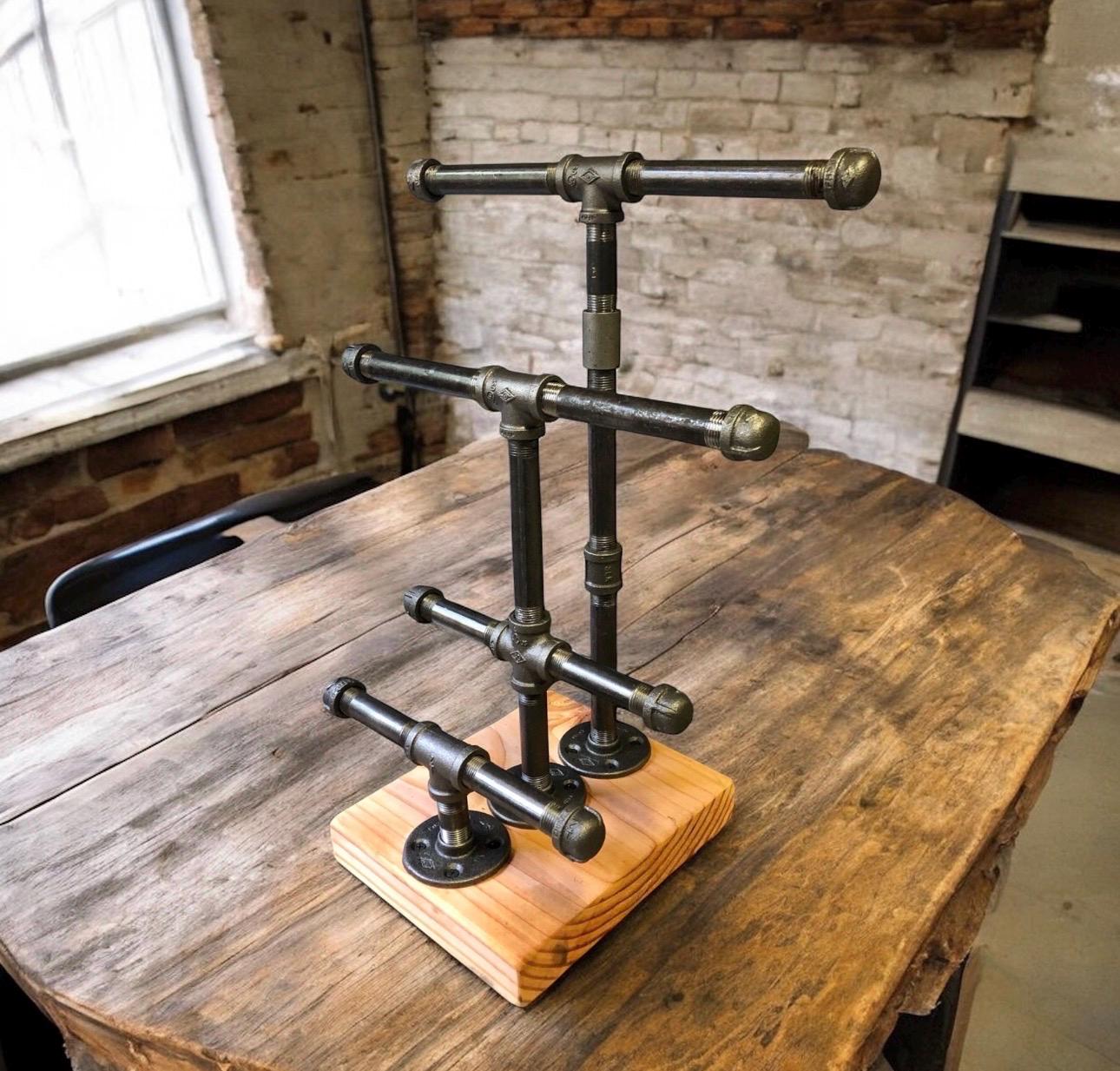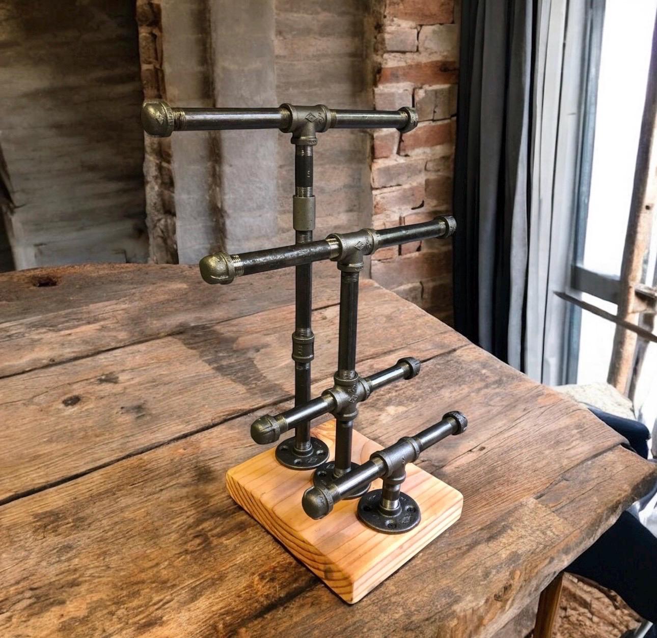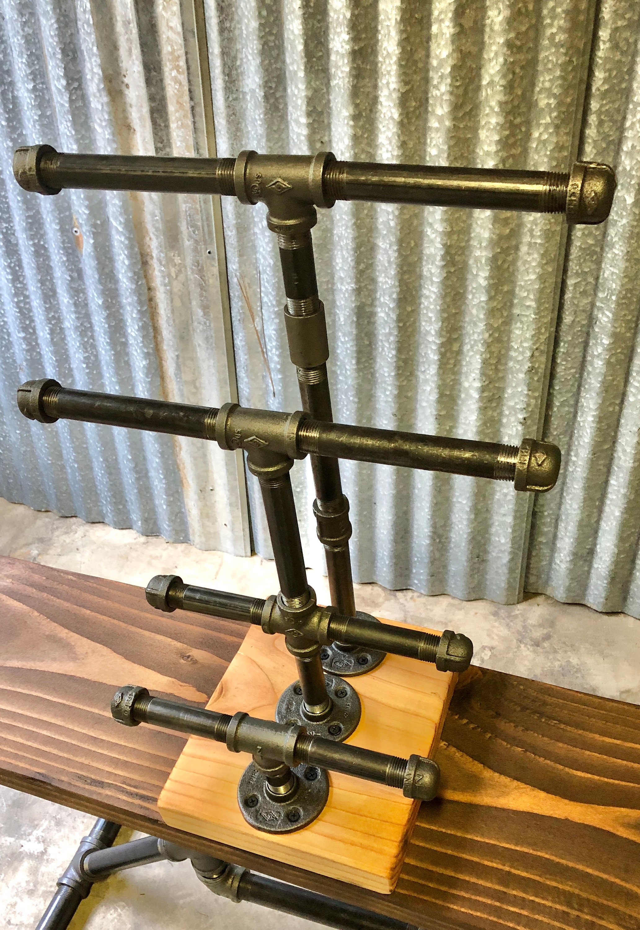 Jewelry Stand/Tree, Industrial Pipe Design with Reclaimed Wood Base -