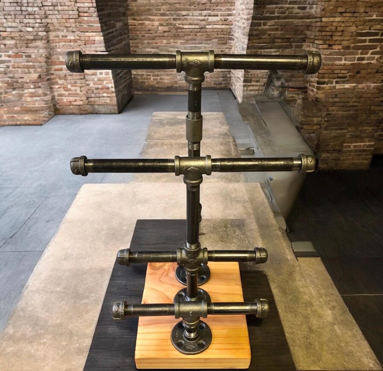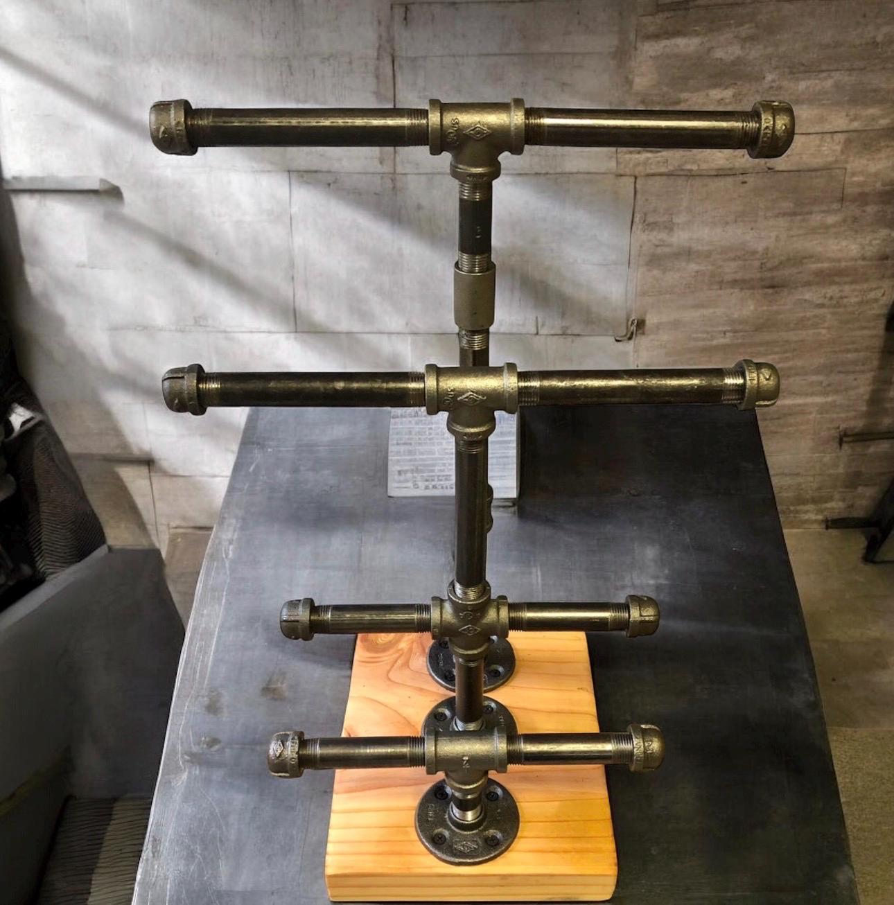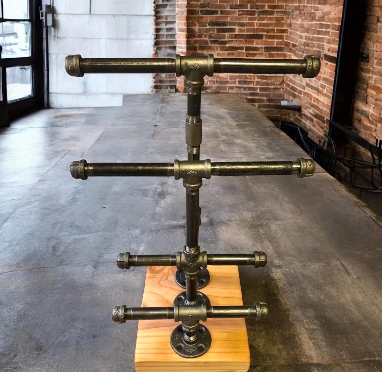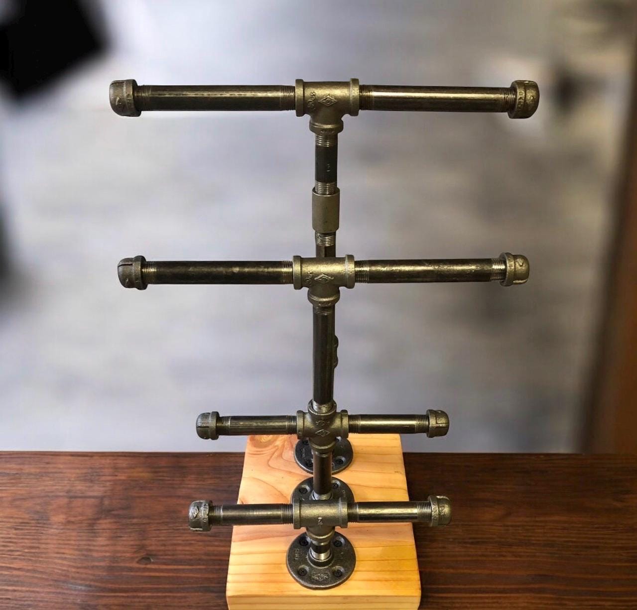 Jewelry Stand/Tree, Industrial Pipe Design with Reclaimed Wood Base -