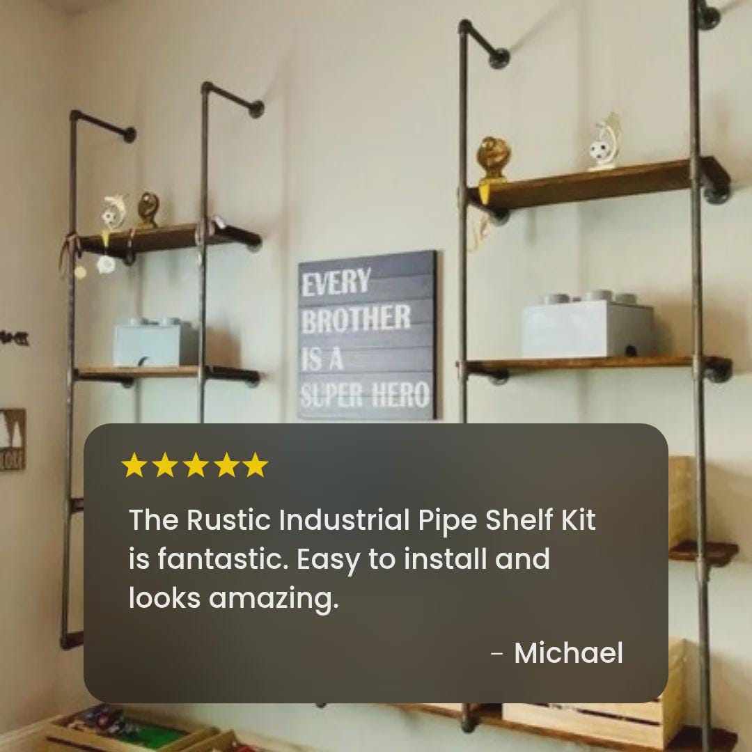 Vintage Industrial Pipe Shelf Kit - Your Style, Your Size - Organization Made Easy!