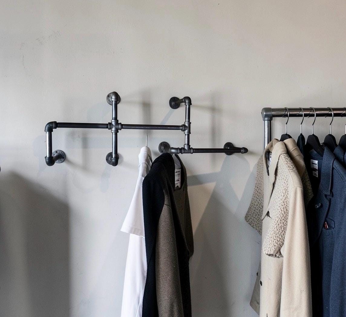 Industrial Pipe Shelf Bracket/Clothes Hanger, “DIY” Parts Kit