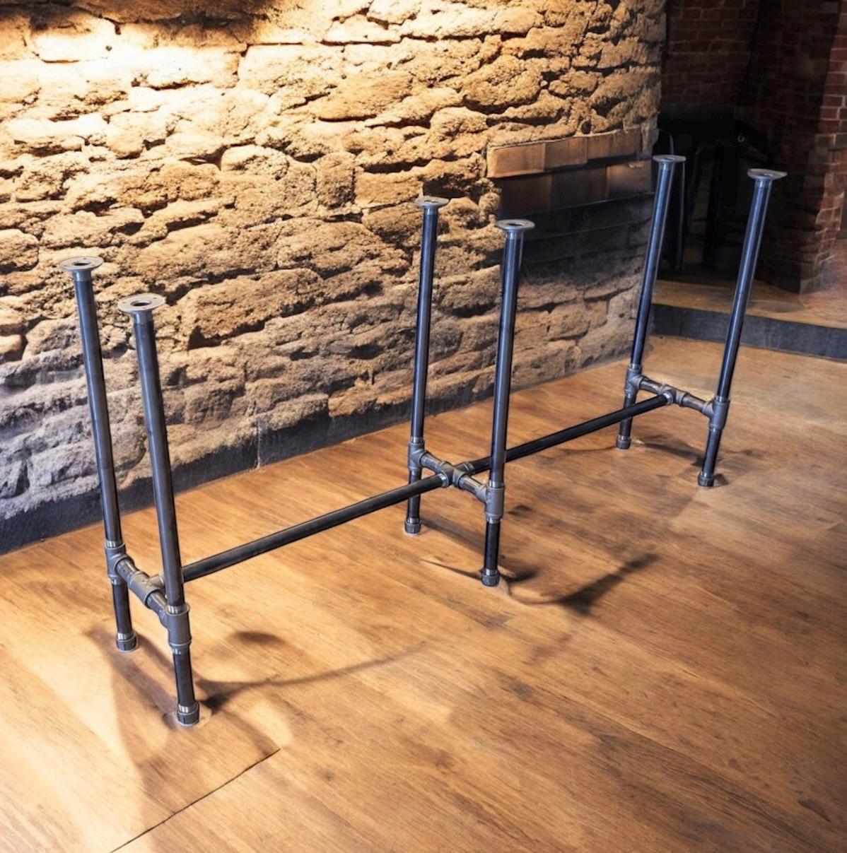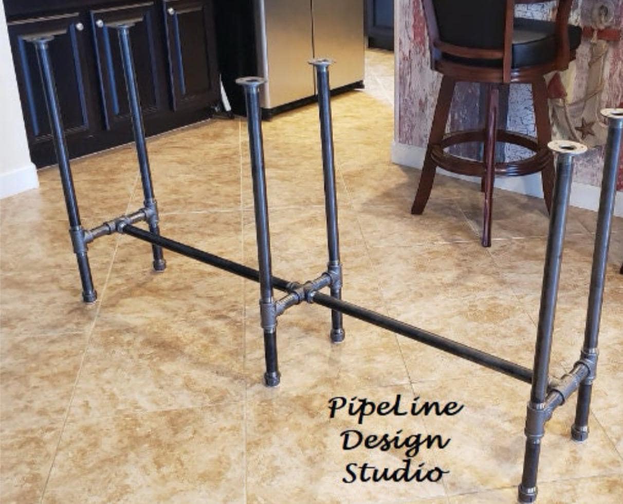 The table legs in the Pipe Design in raw iron gives a raw and industrial look.***Please note: all table base measurements (width and length) that are stated in this listing are measured from the outside edges of the round flanges on top of the base. Please reference the Q & A section in my Etsy shop for instructions on cleaning and more details regarding the black pipe products sold in my store.Assembly instructions for the "DIY" kits will be emailed to your Etsy account email once you have placed your order.