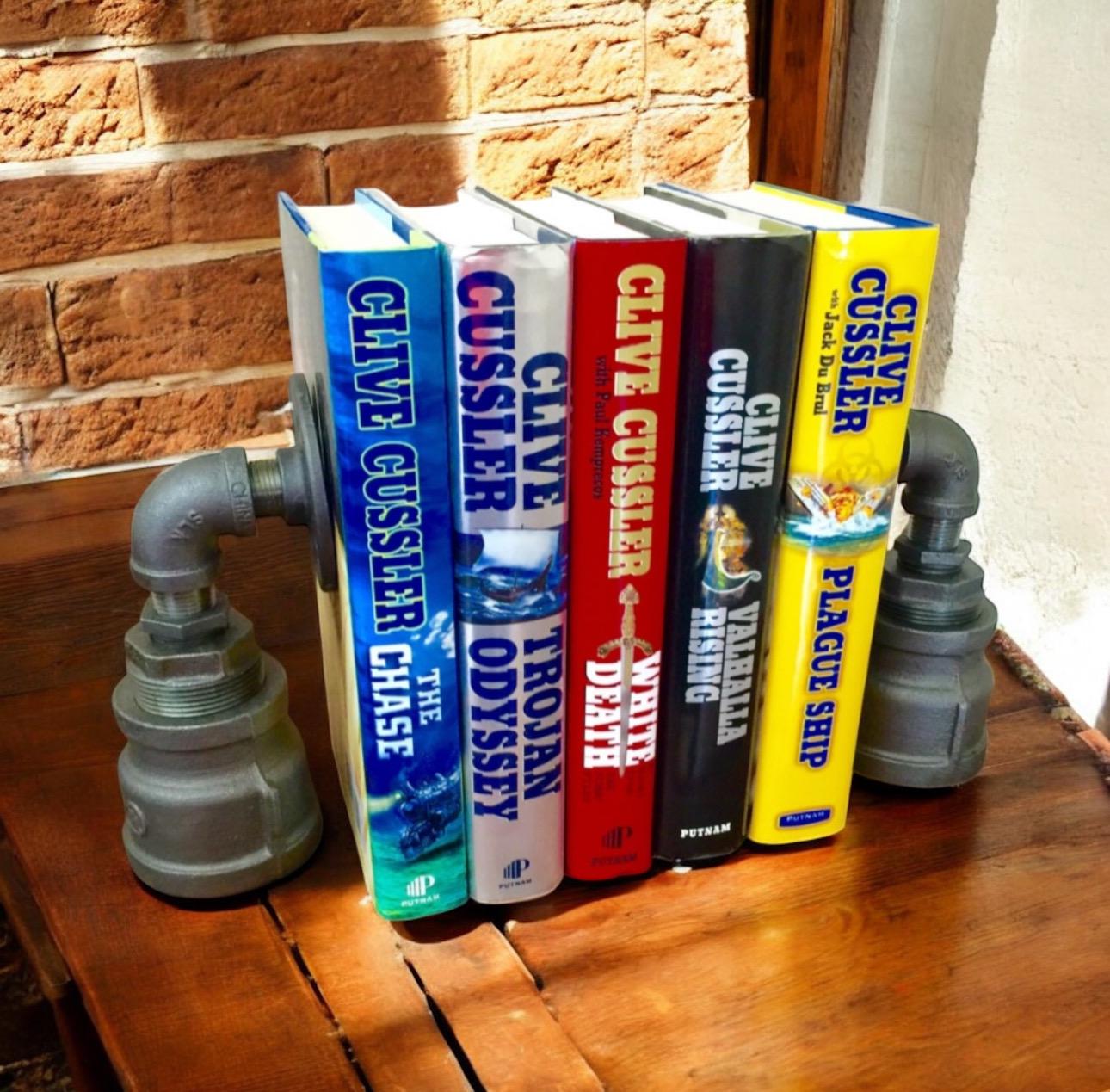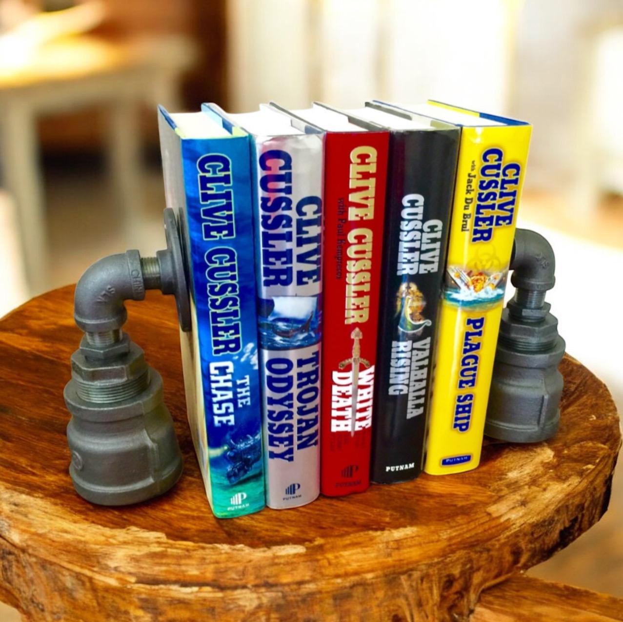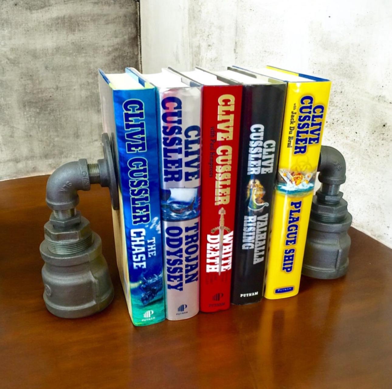 One of a kind handmade and original design bookends. Includes 1 pair of Industrial Iron Pipe Bookends, Urban, Loft, Steampunk Style