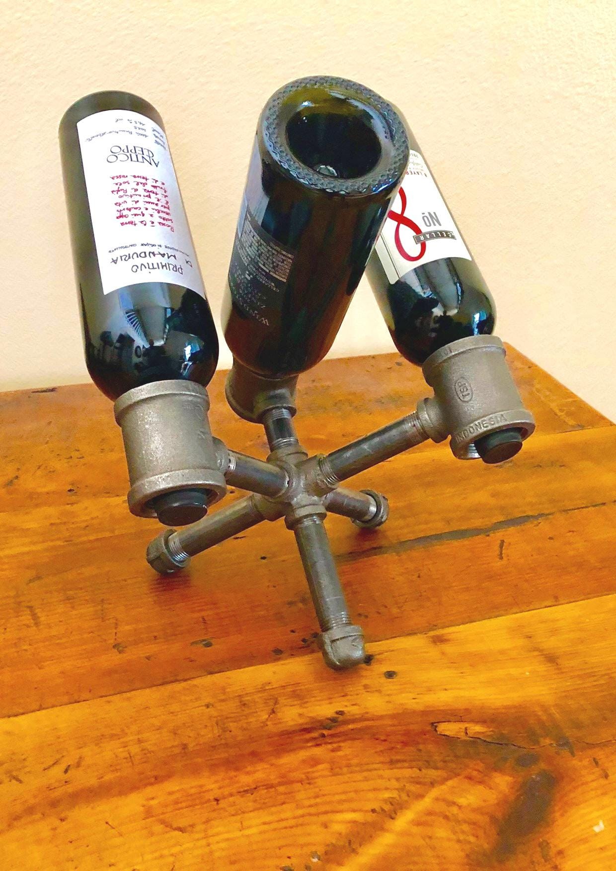 Ready to bring your custom furniture vision to life? Choose your preferred height today and enjoy fast, reliable shipping along with our commitment to customer satisfaction. Should you have any questions or require assistance with your order, our responsive support team is here to help. Upgrade your furniture foundation with legs that offer strength, style, and versatility—order now to start your next project!Iron Pipe Wine or Liquor Bottle Rack/Bottle Holder. Holds 3 bottles. Sturdy construction and hand made using construction grade pipe. All components are new.