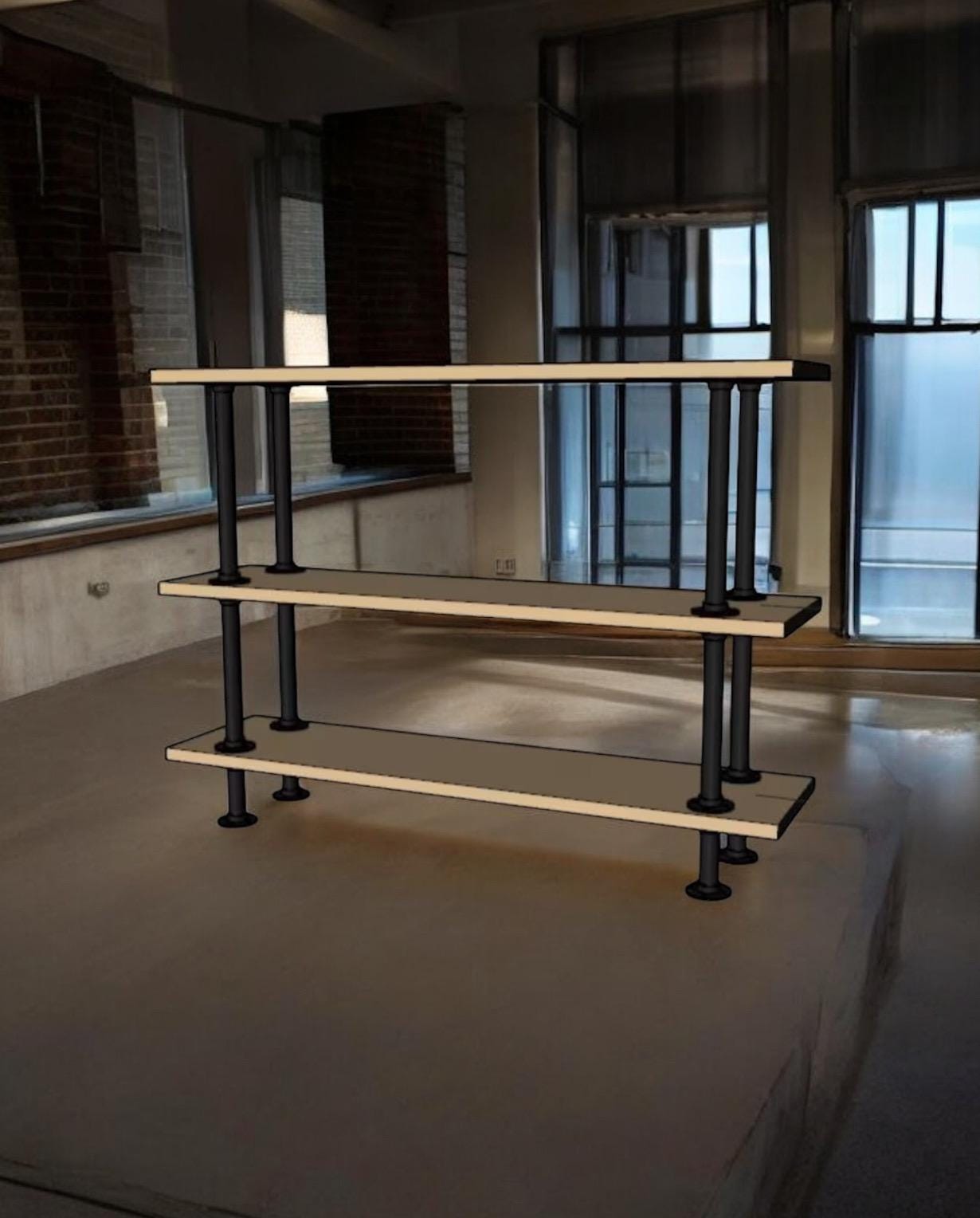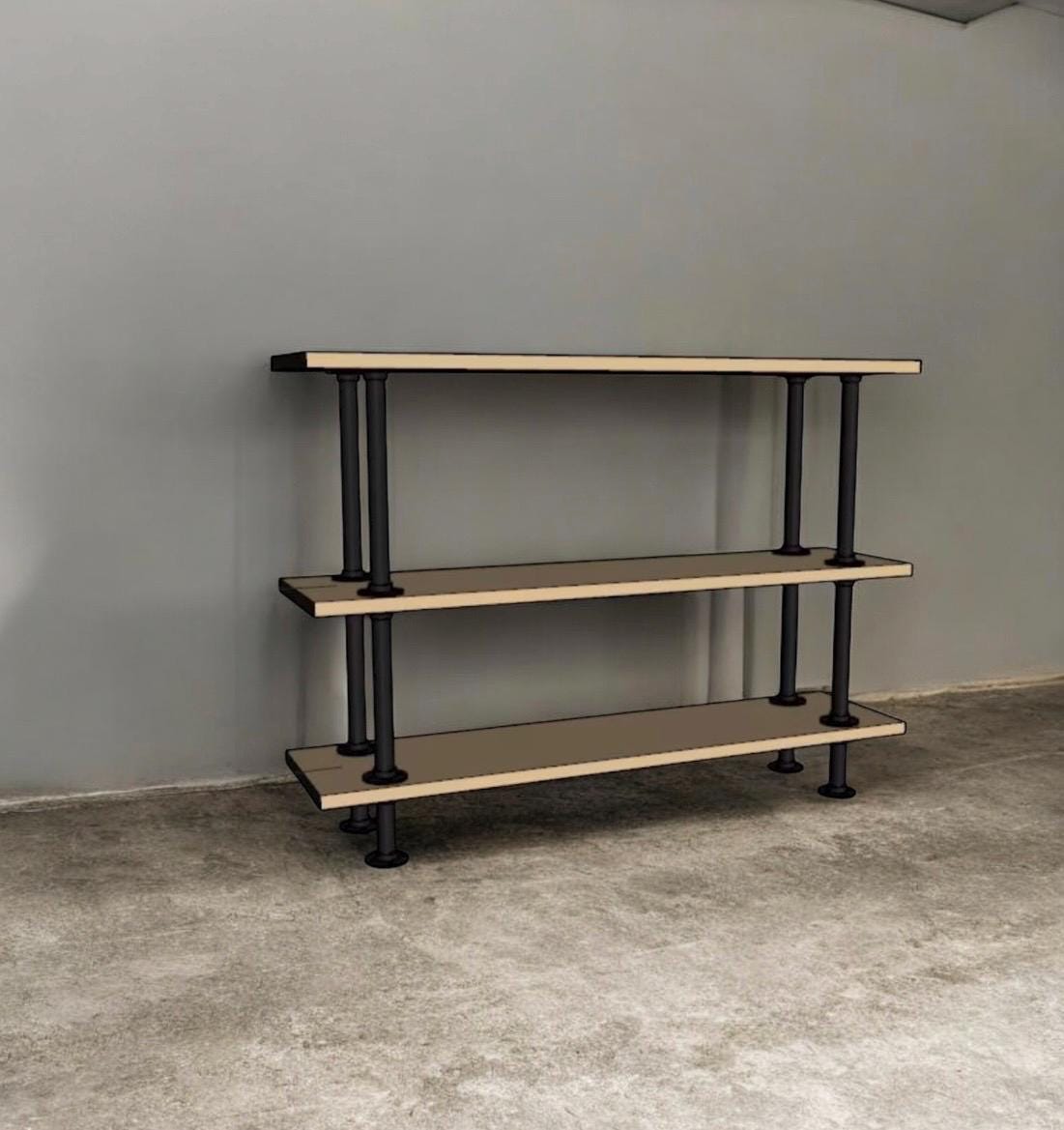 Industrial Pipe Shelving "DIY" Kit - 48" wide x 12" deep x 36" tall