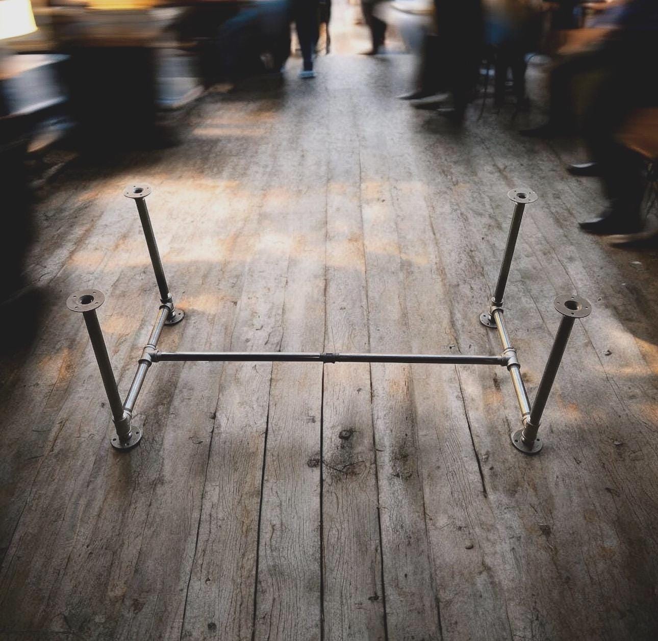 The table legs in the Pipe Design in raw iron gives a raw and industrial look.***Please note: all table base measurements (width and length) that are stated in this listing are measured from the outside edges of the round flanges on top of the base. Please reference the Q & A section in my Etsy shop for instructions on cleaning and more details regarding the black pipe products sold in my store.