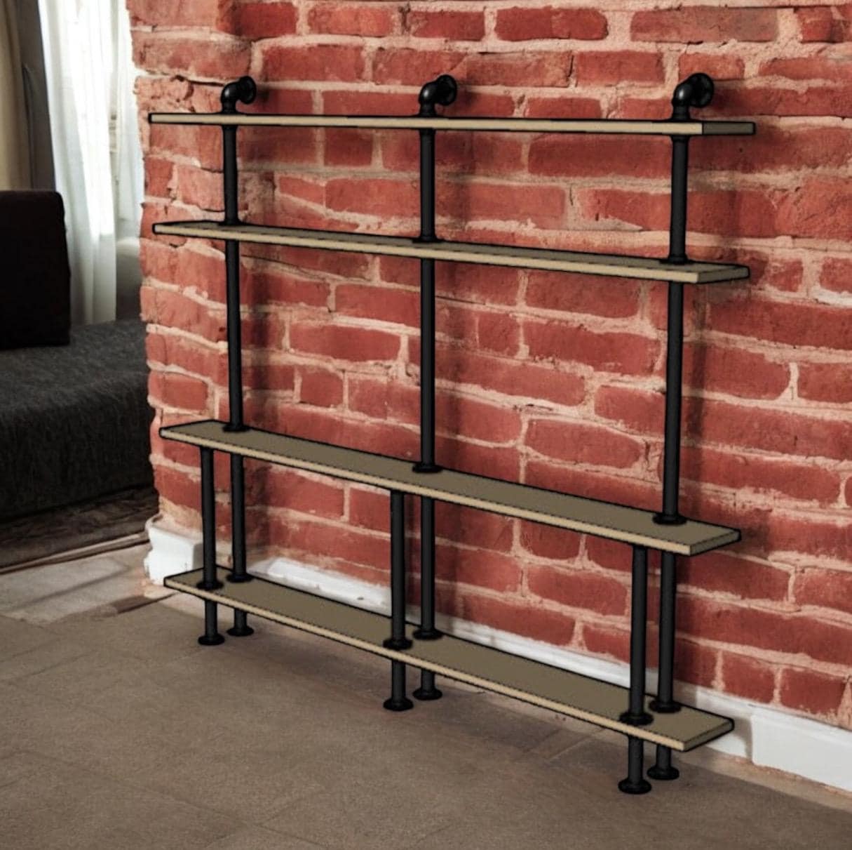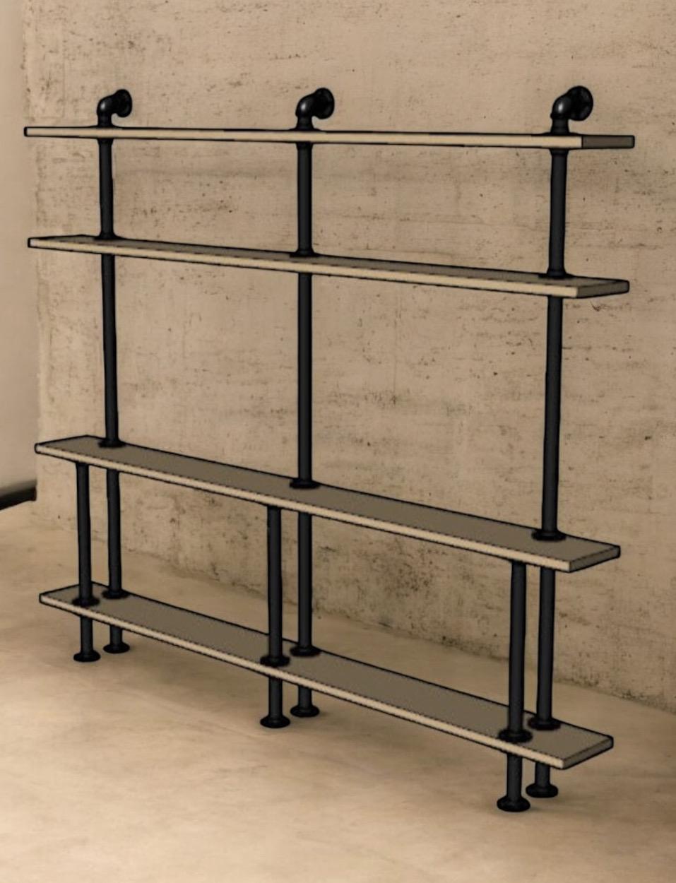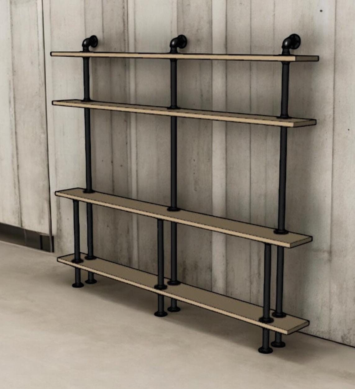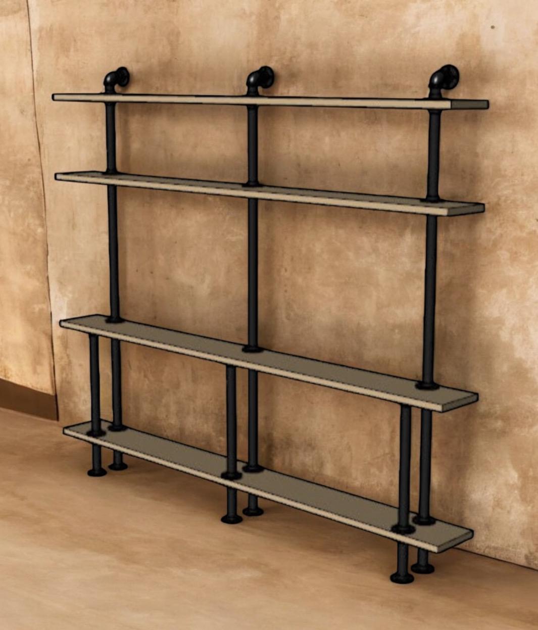 Iron Pipe Shelving "DIY" Kit - 72" tall x 72" wide. Can be used for up to 16” deep shelf boards.