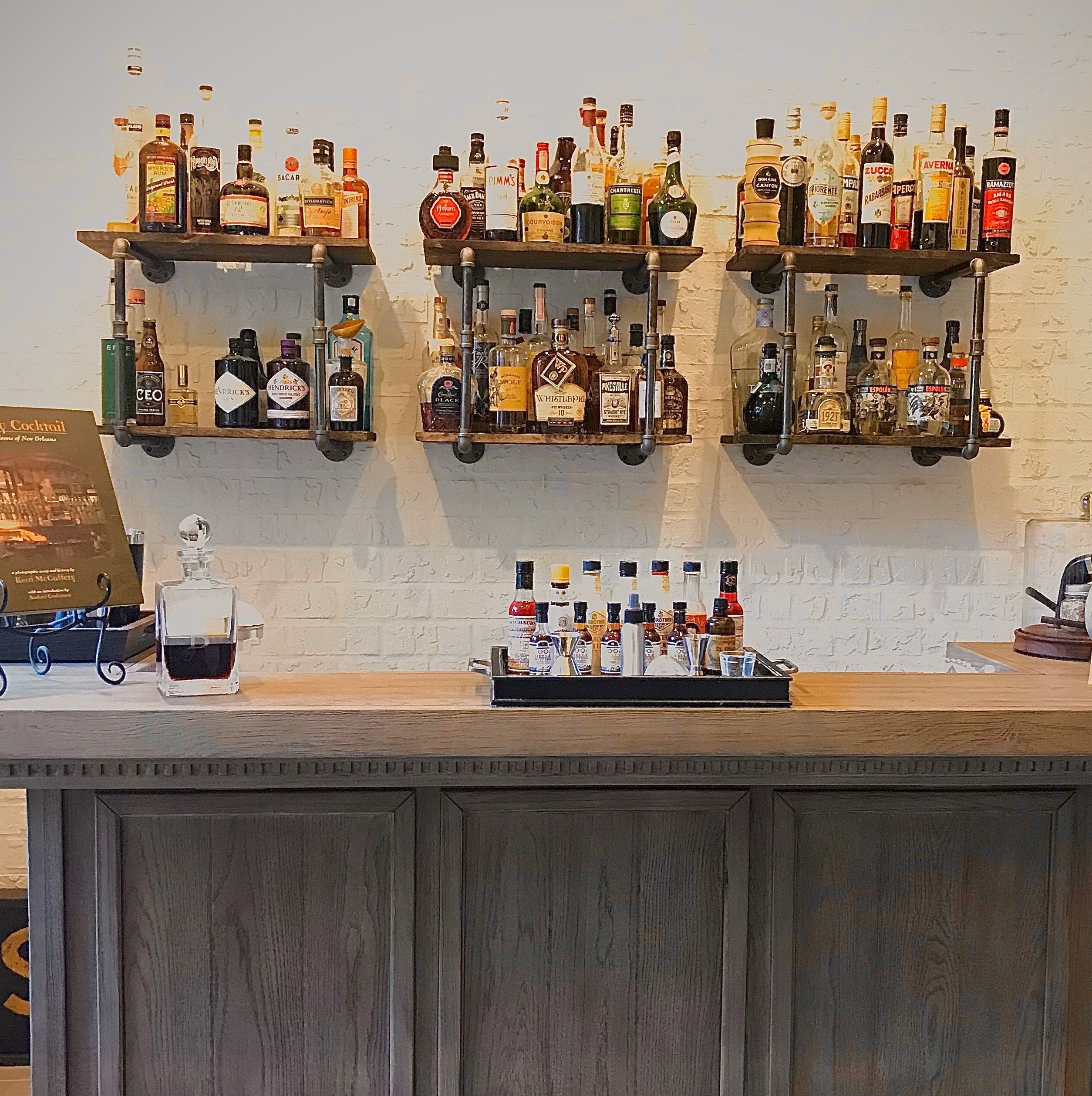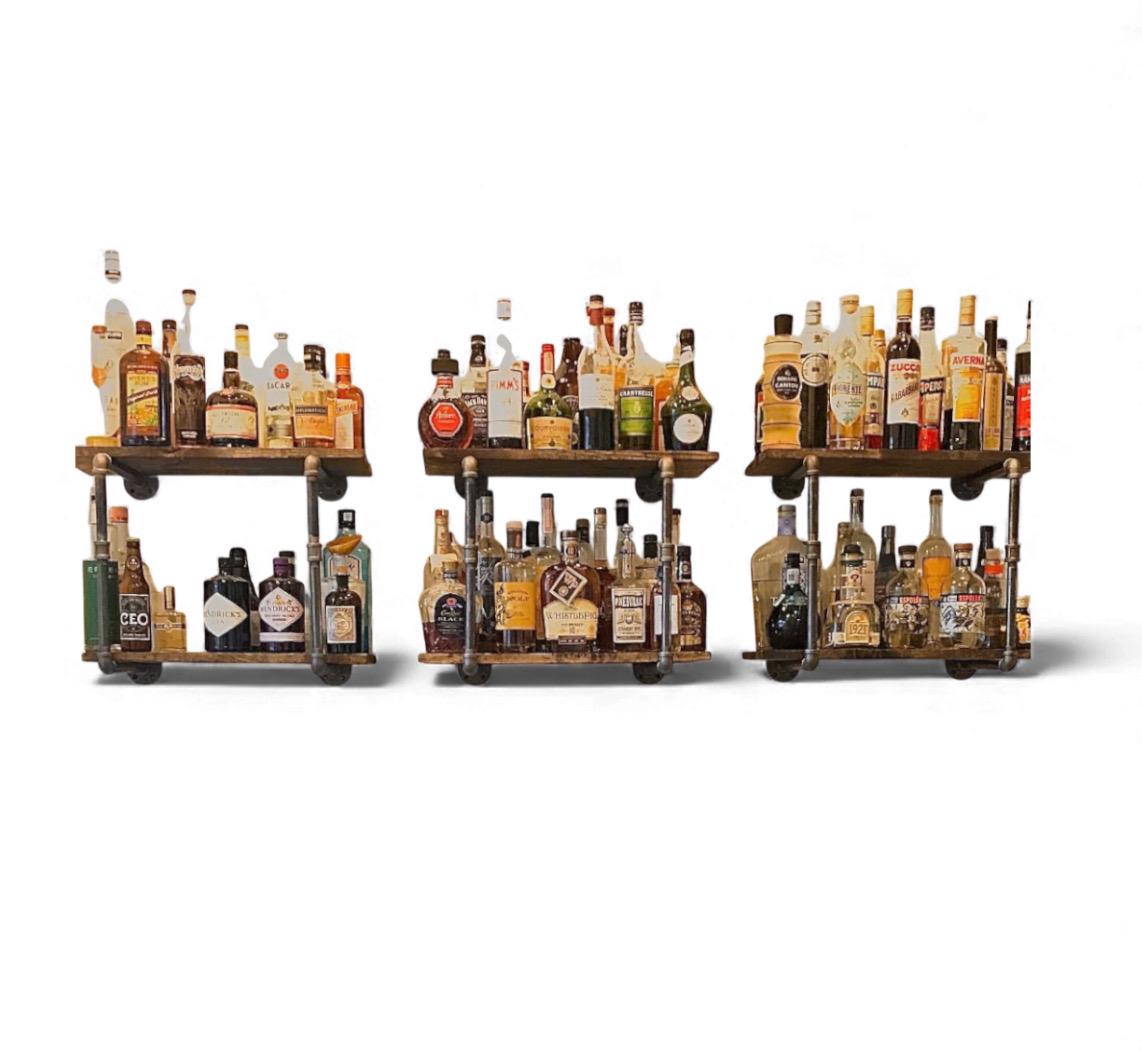 Iron Pipe Shelving - "DIY" Parts Kit, One set of shelf brackets Included with each purchase to create the shelving in the first picture - 20" tall x 12" deep