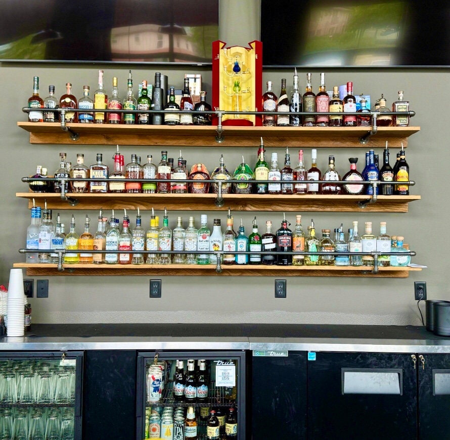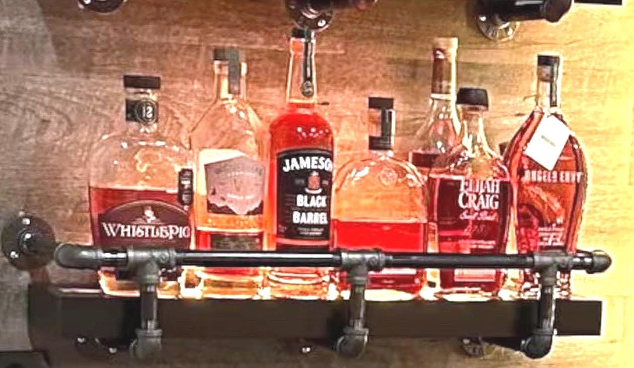 Wood shelf and mounting screws not included. Liquor bottles not included.