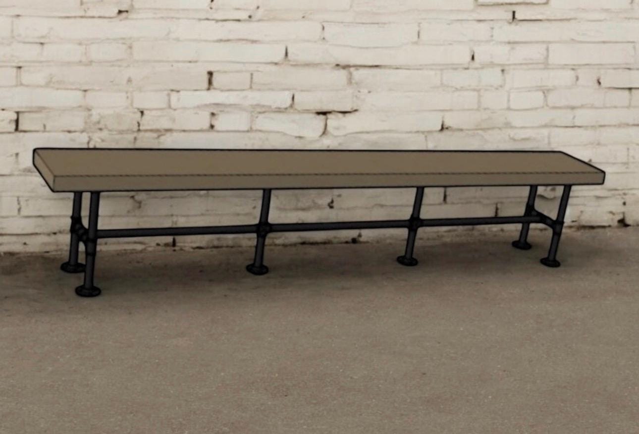 Black Pipe Bench Base "DIY" Parts Kit- 3/4” pipe x 12" wide x 18" tall - Lengths Available - 58", 64", 82", and 100"