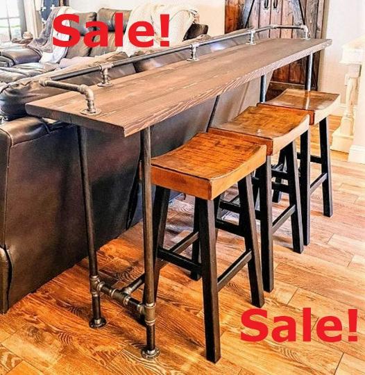 Industrial Pipe Table Legs and Sturdy Drink Rail Kit - Rustic Vintage Style, Custom Depth, Height Options for Bar & Counter Tables