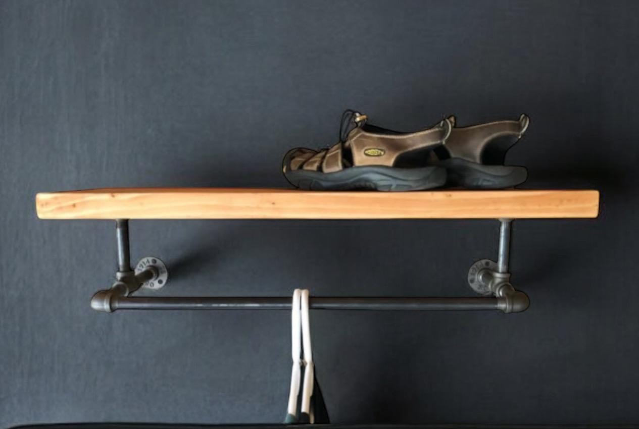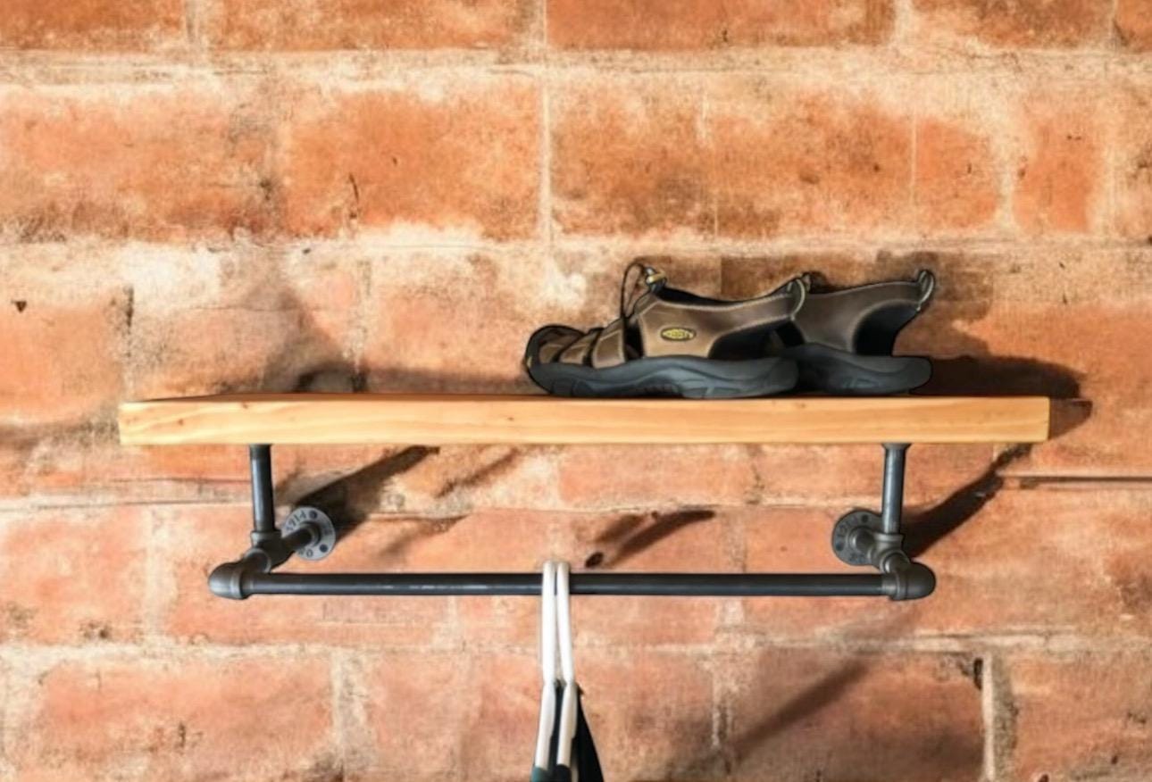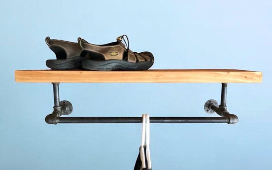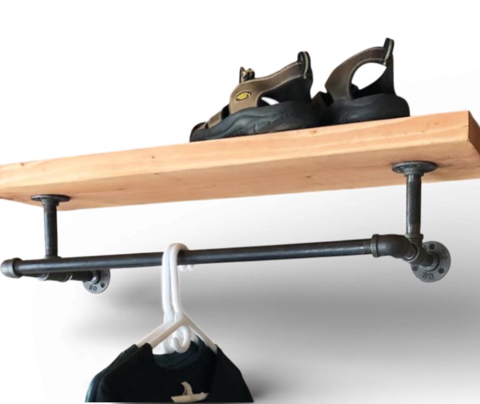 Industrial Black Pipe Shelf Bracket/Clothes Hanger, “DIY” Parts Kit