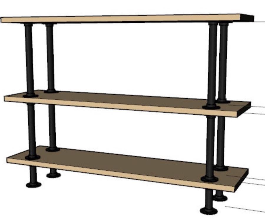 Includes all 1/2" pipe hardware to inbuild a shelving unit. You will need three shelf boards.